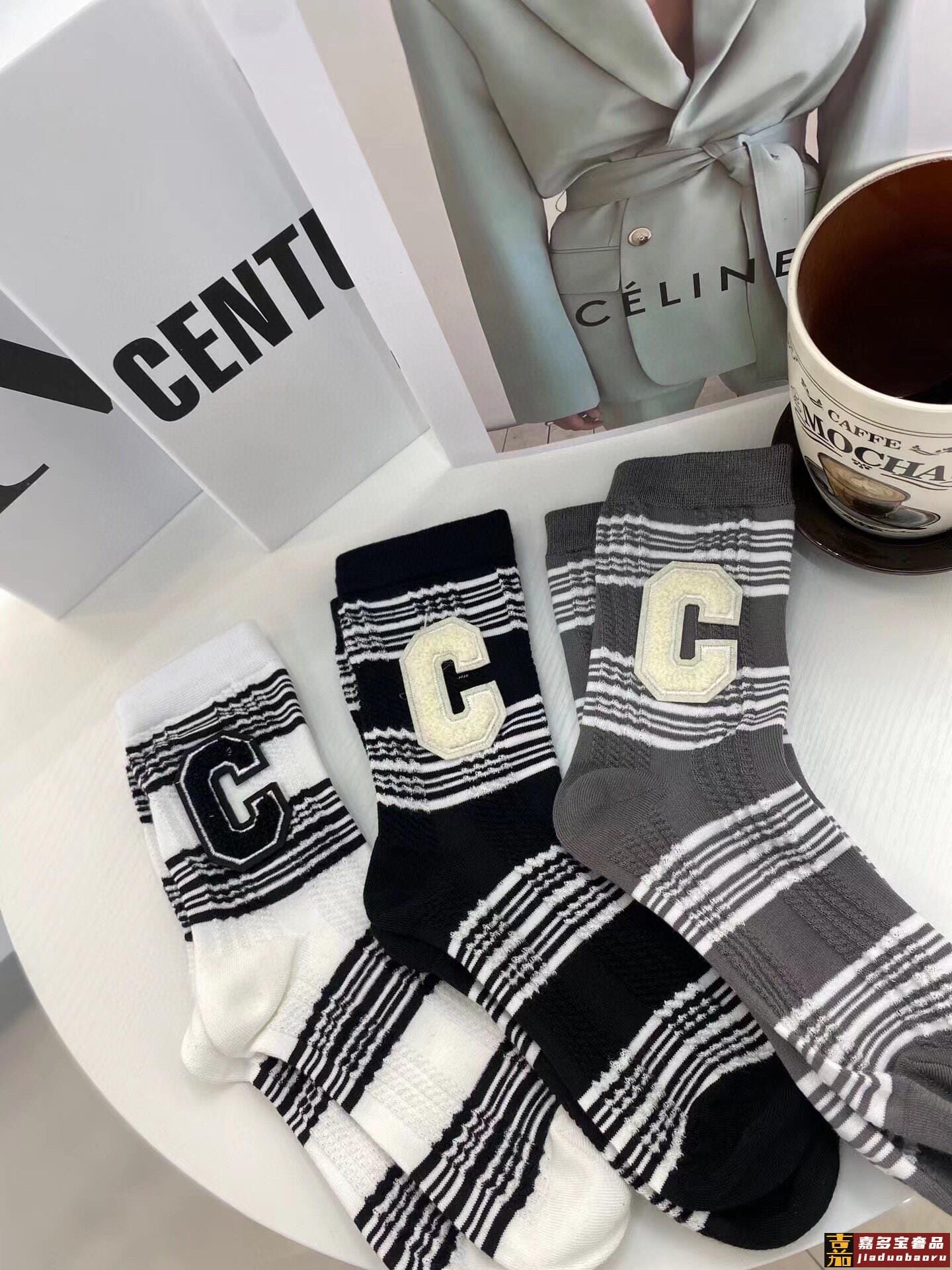 配包装一盒三双赛琳爆款中筒袜高版本好看到爆炸欧美大牌中筒袜潮
