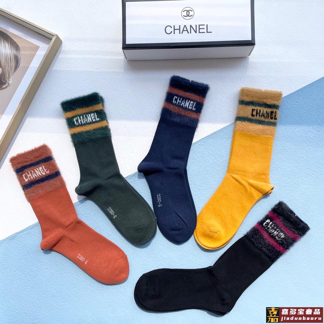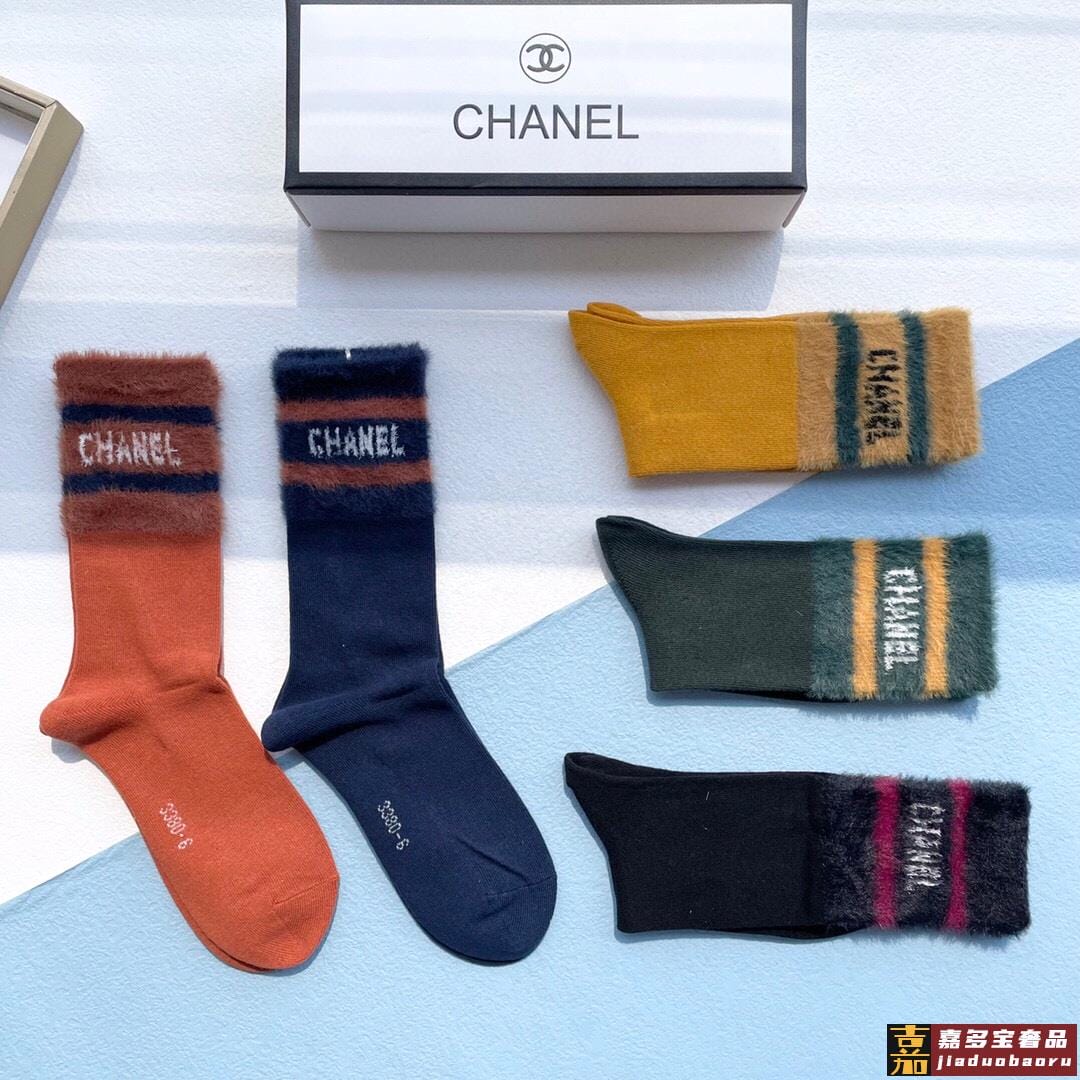 配包装一盒五双香奈儿专柜新款水貂毛高筒袜子专柜同步上新超柔软