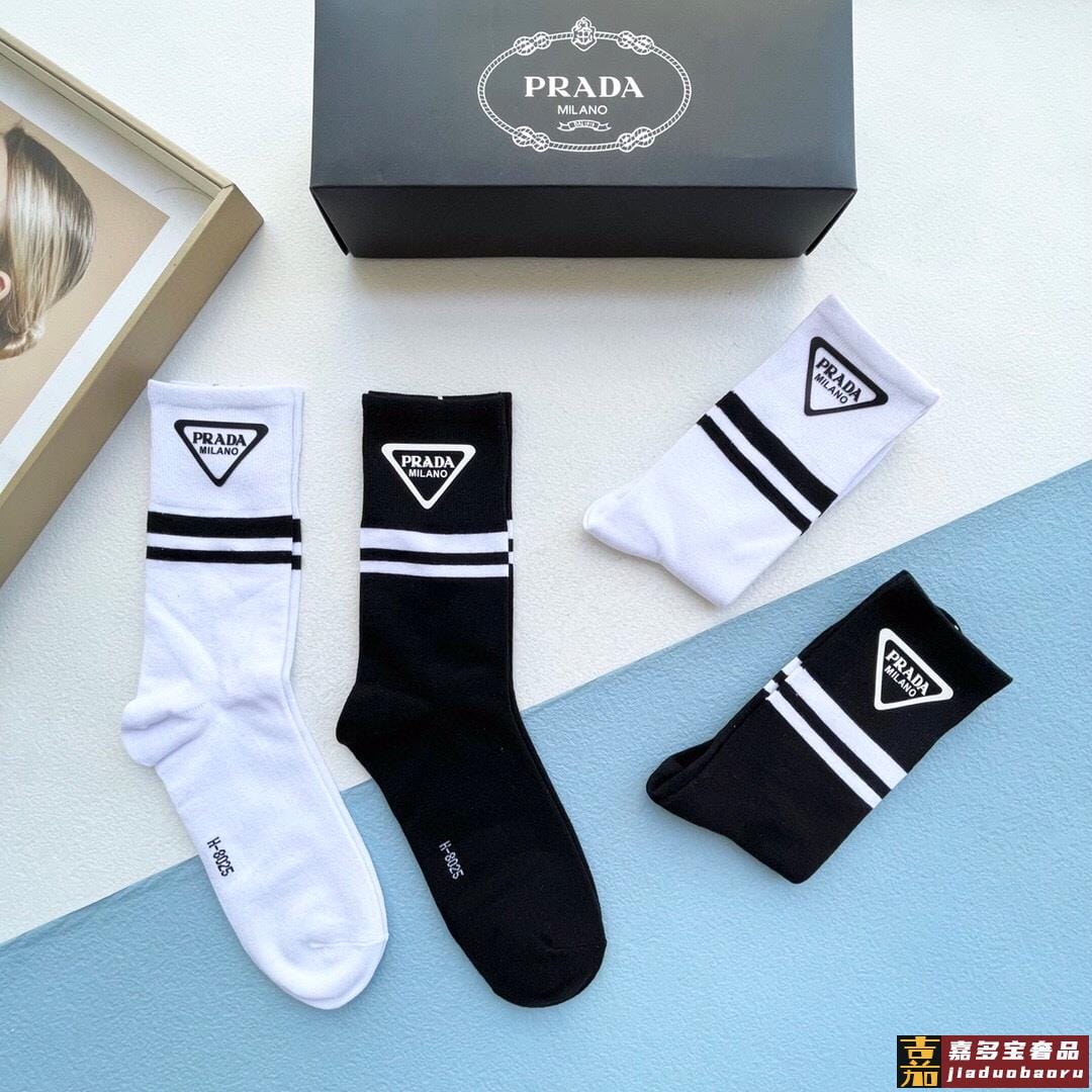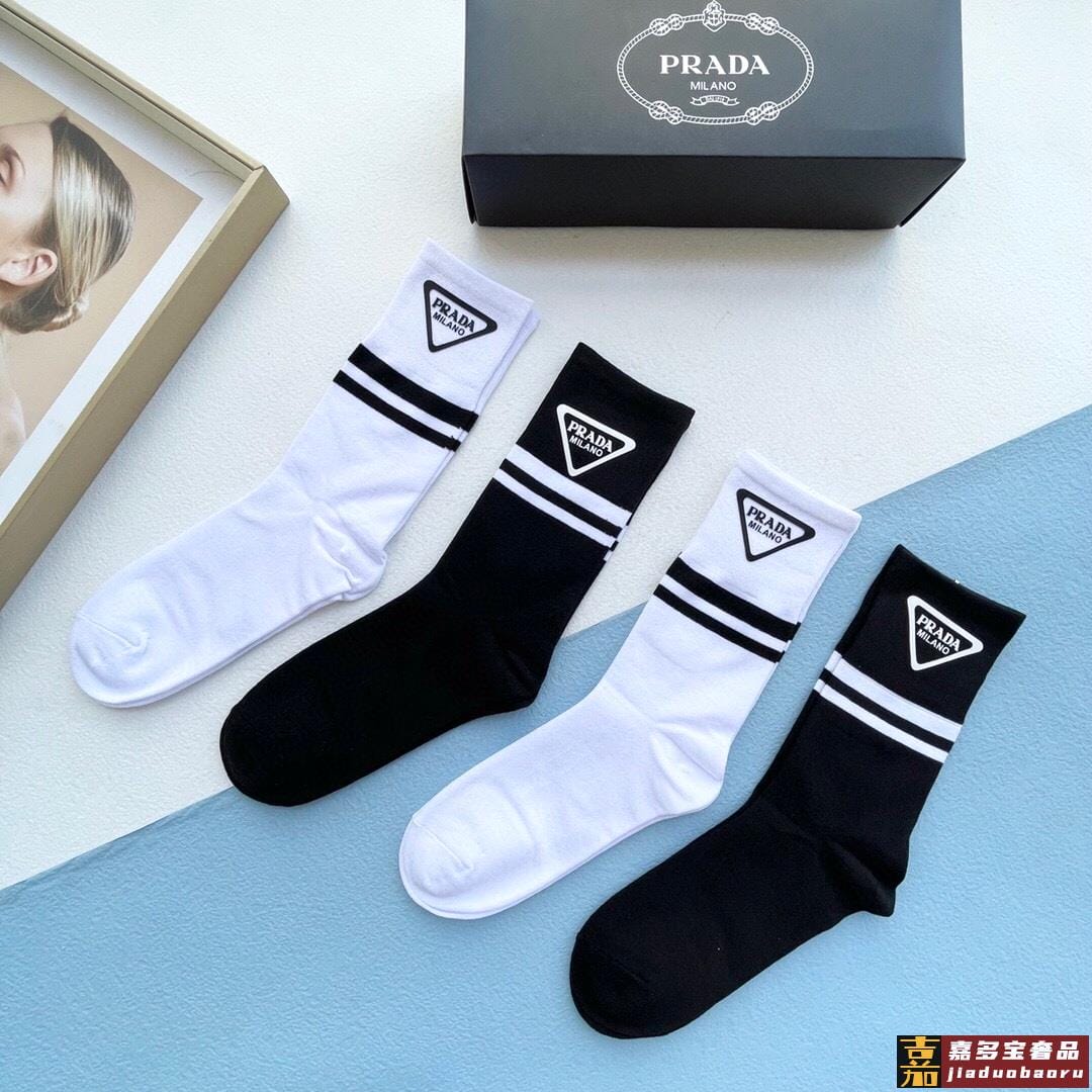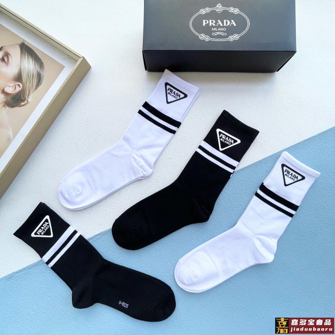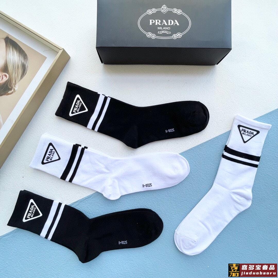 配包装一盒二双普拉达爆款中筒袜高版本好看到爆炸欧美大牌中筒袜