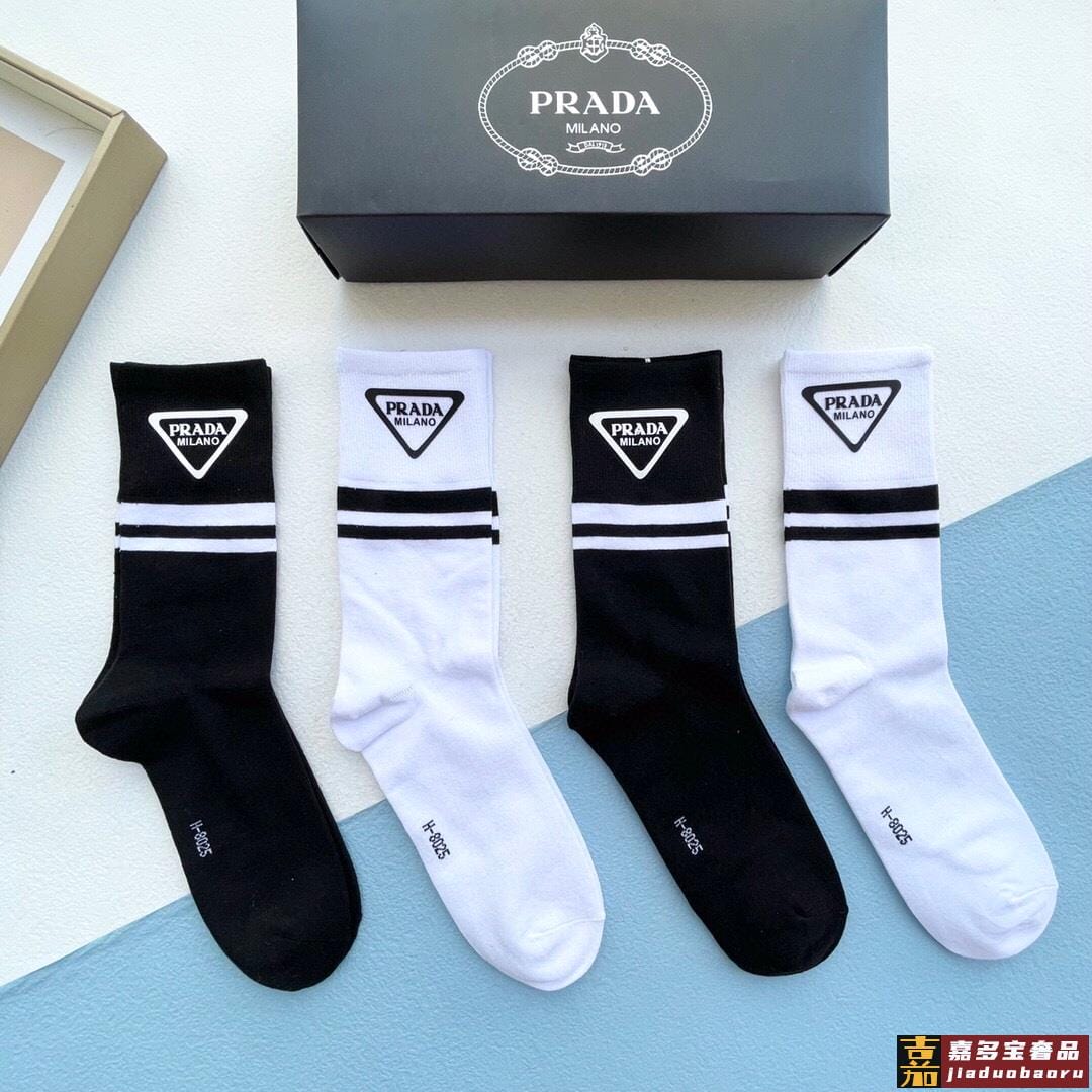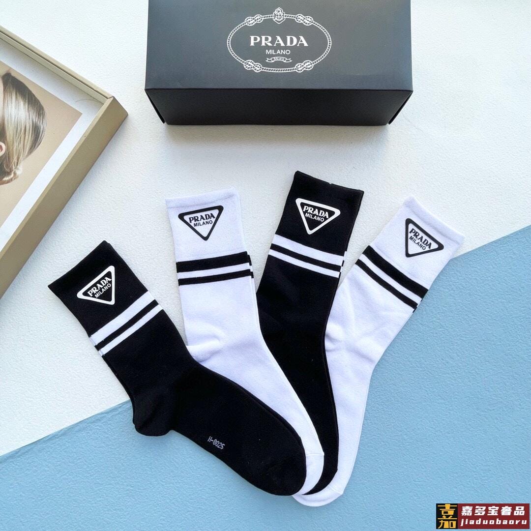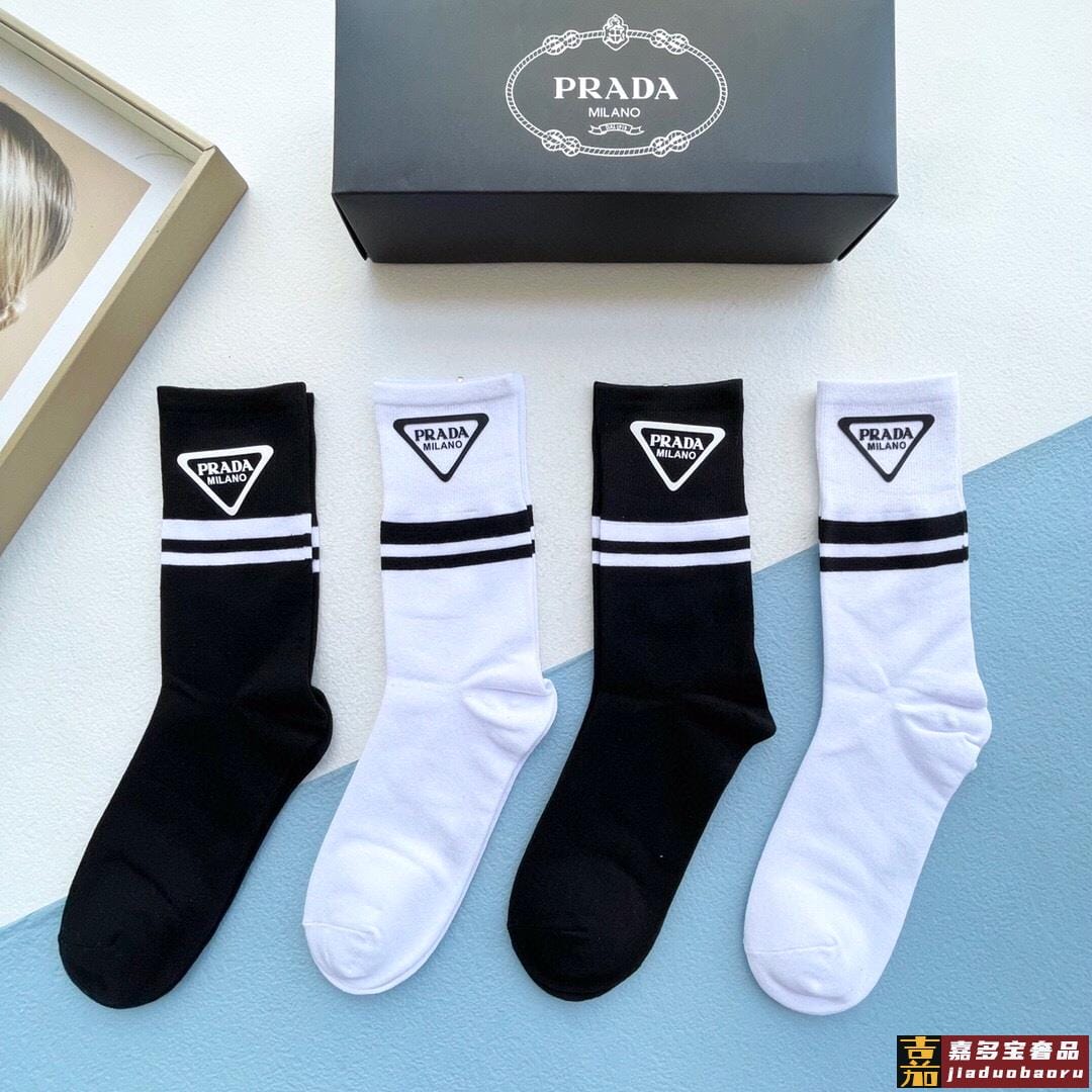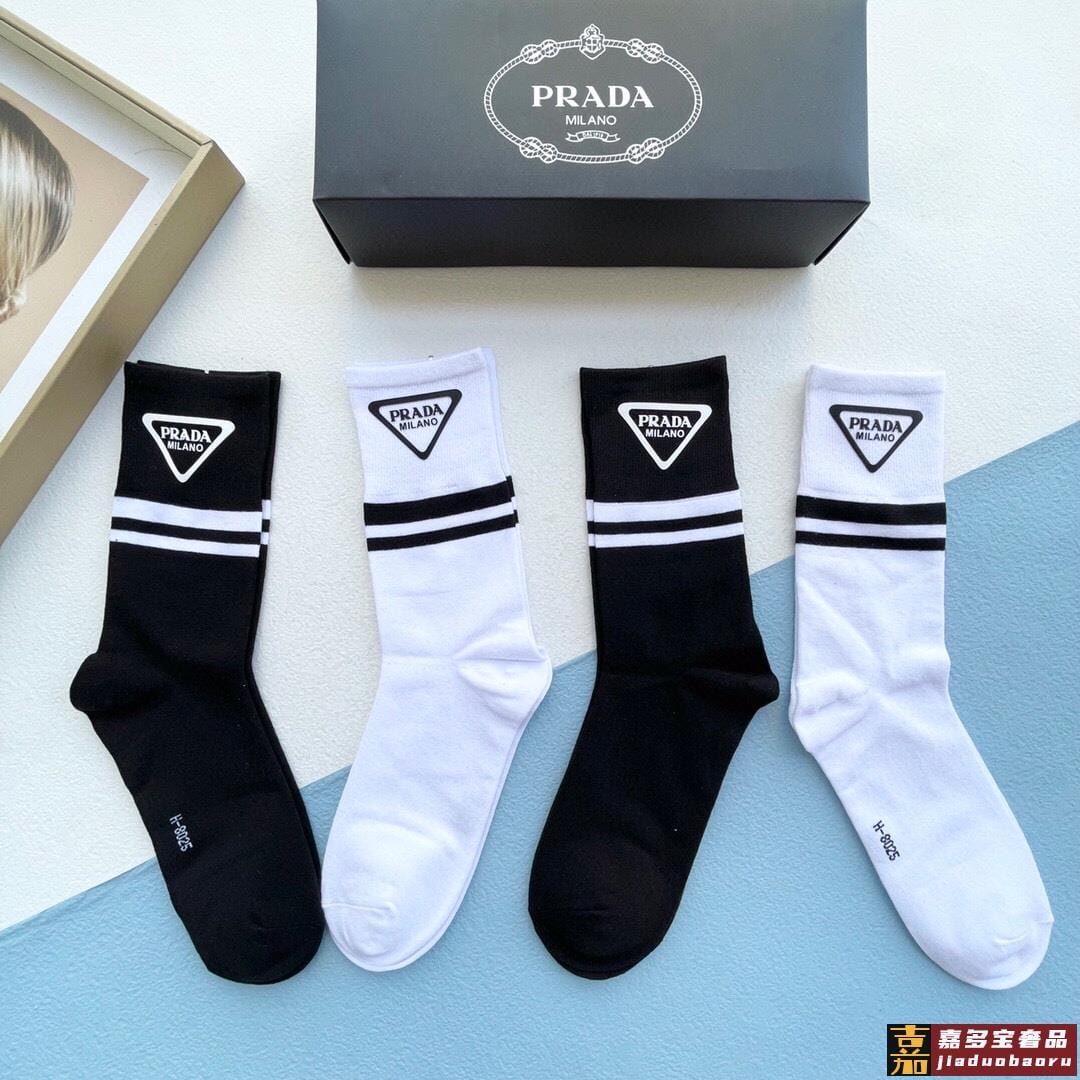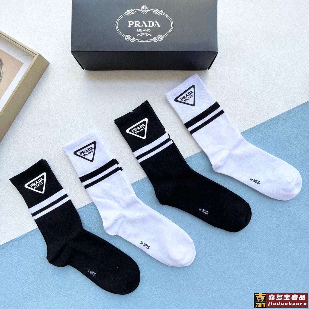 配包装一盒二双普拉达爆款中筒袜高版本好看到爆炸欧美大牌中筒袜