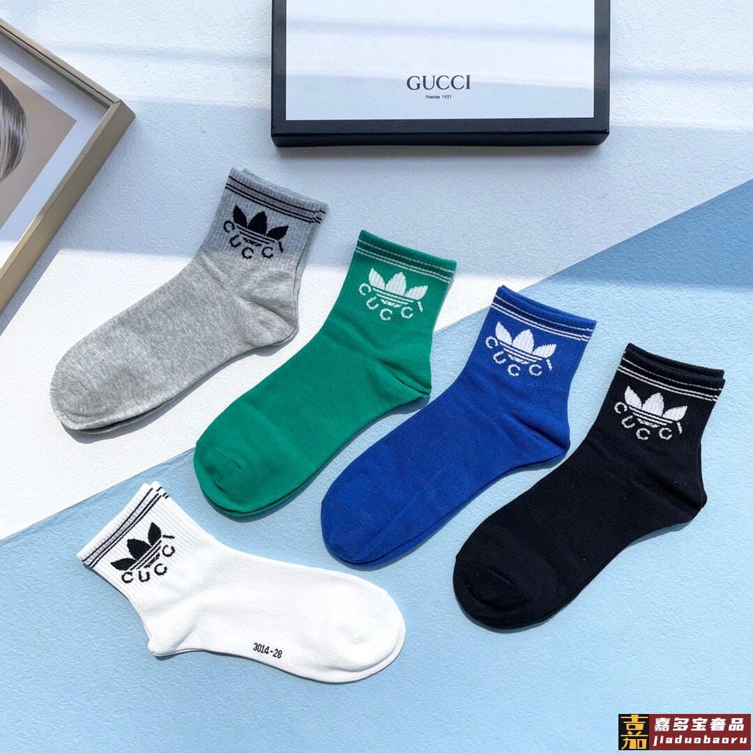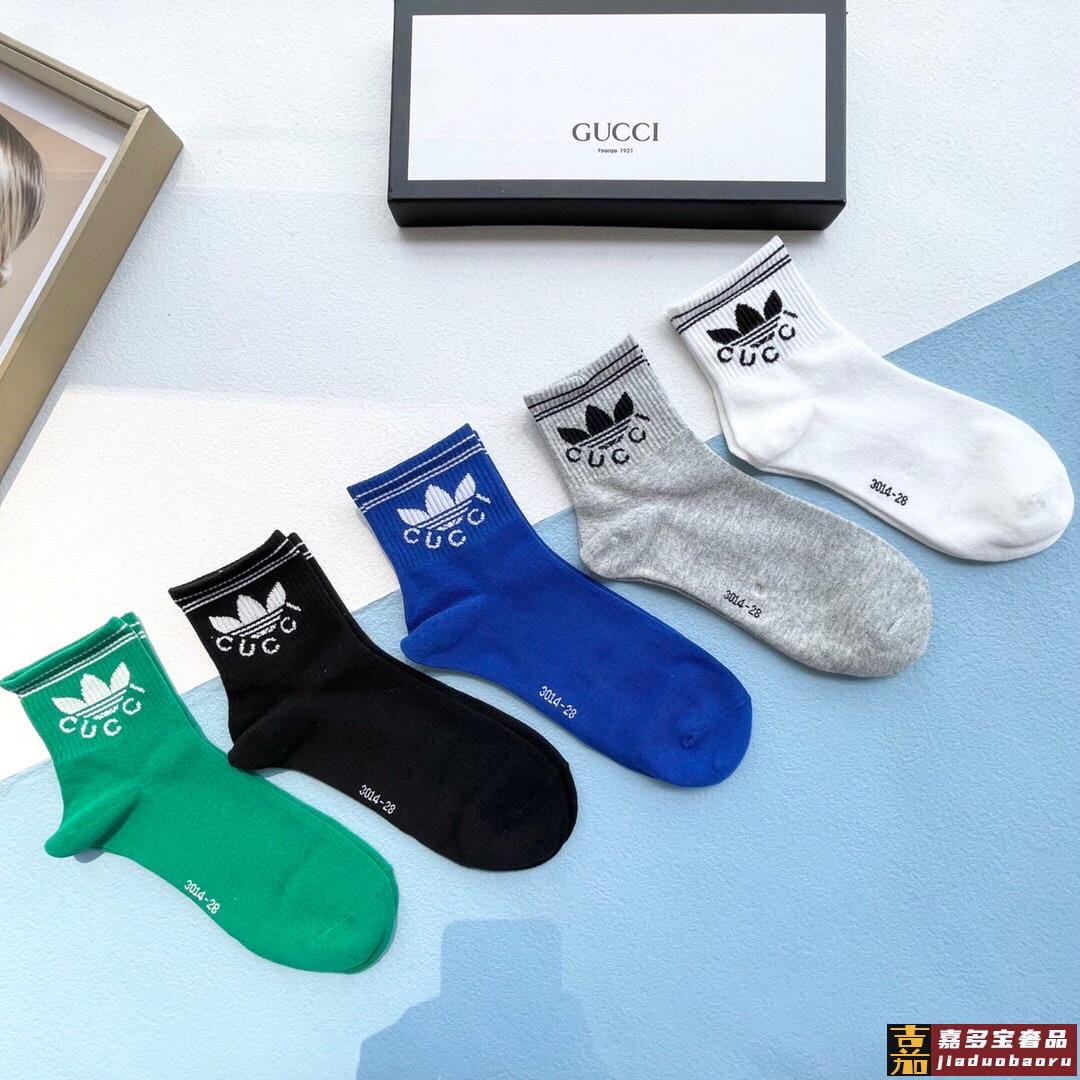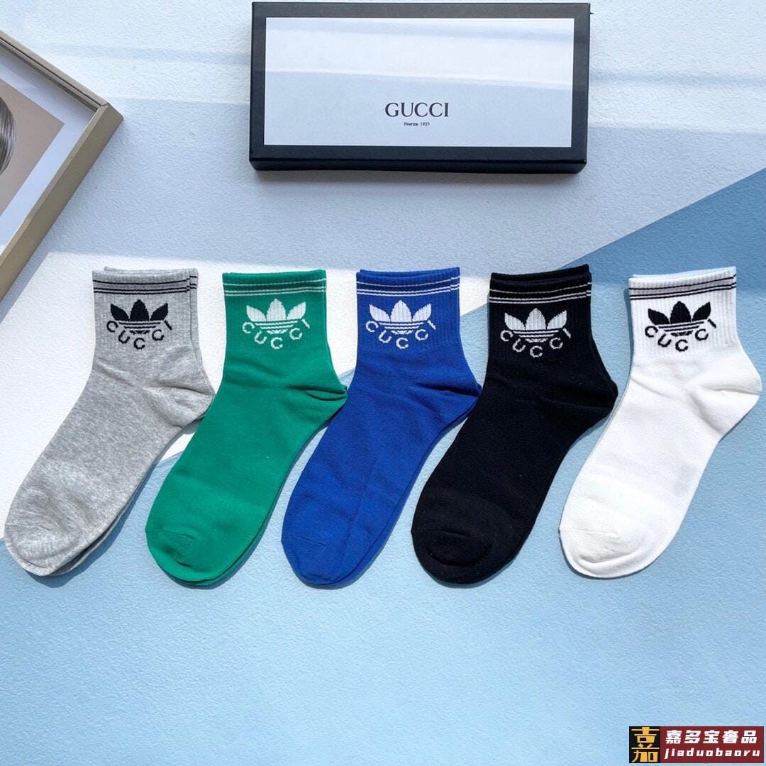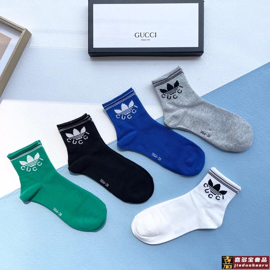 配包装一盒五双古奇超级爆款网红袜子大家官网同步双提花字母小腿