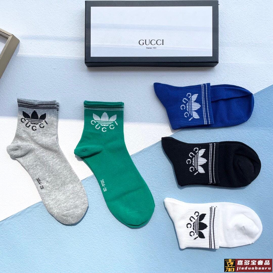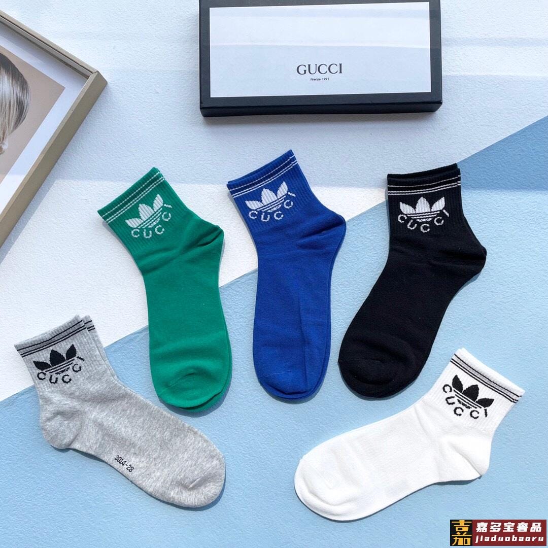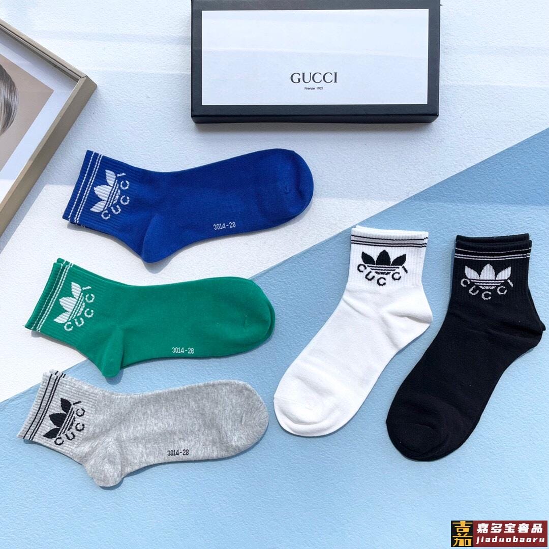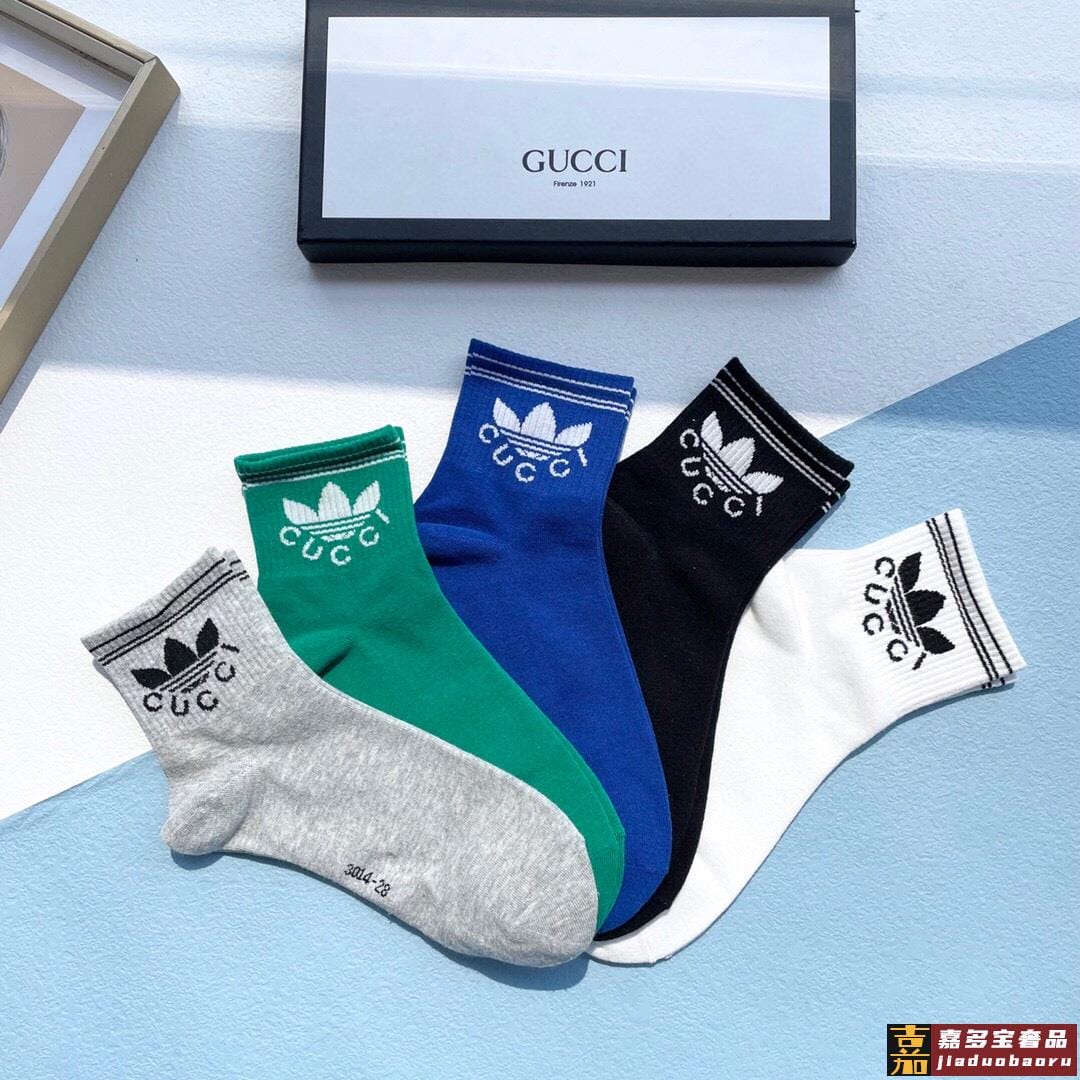 配包装一盒五双古奇超级爆款网红袜子大家官网同步双提花字母小腿