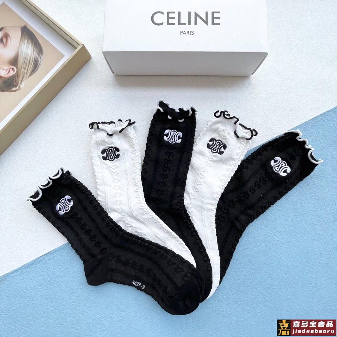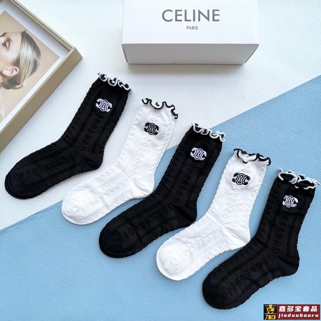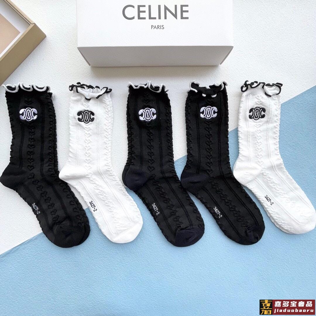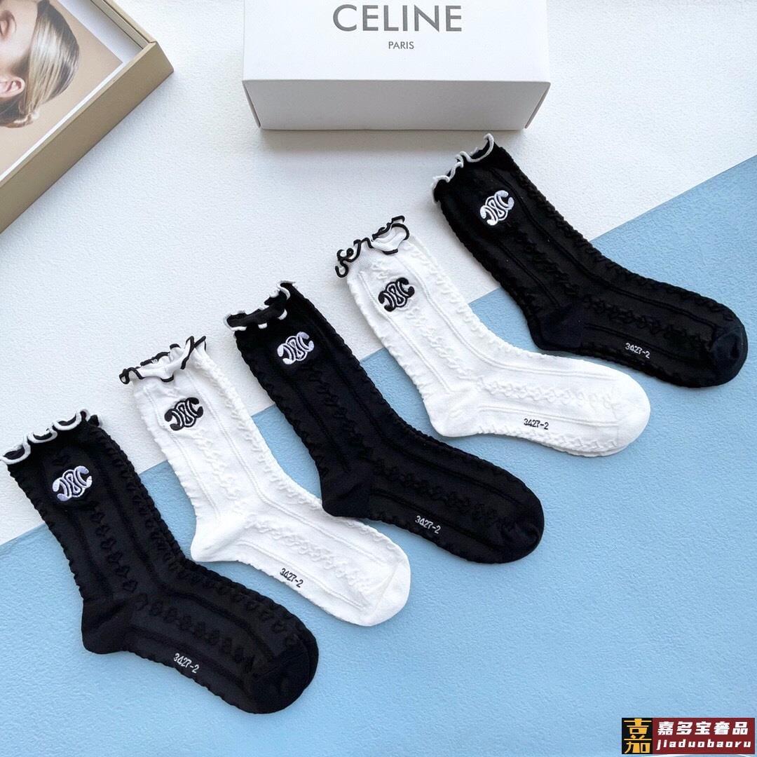 配包装一盒五双赛琳爆款木耳刺绣中筒袜高版本好看到爆炸欧美大牌