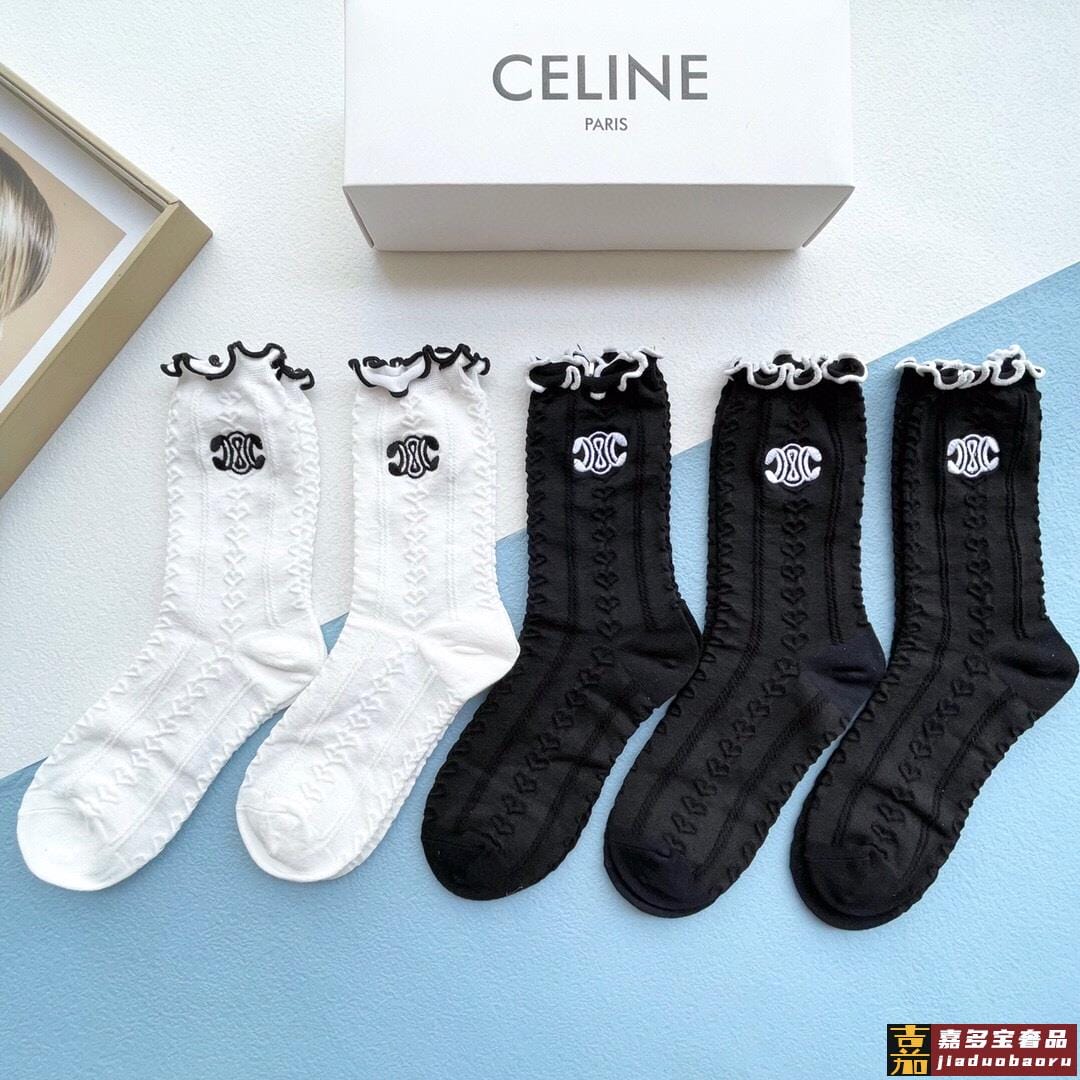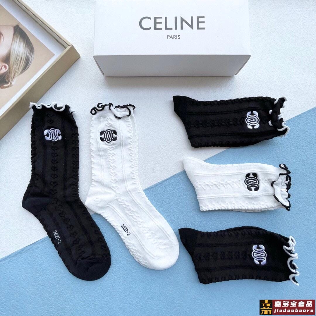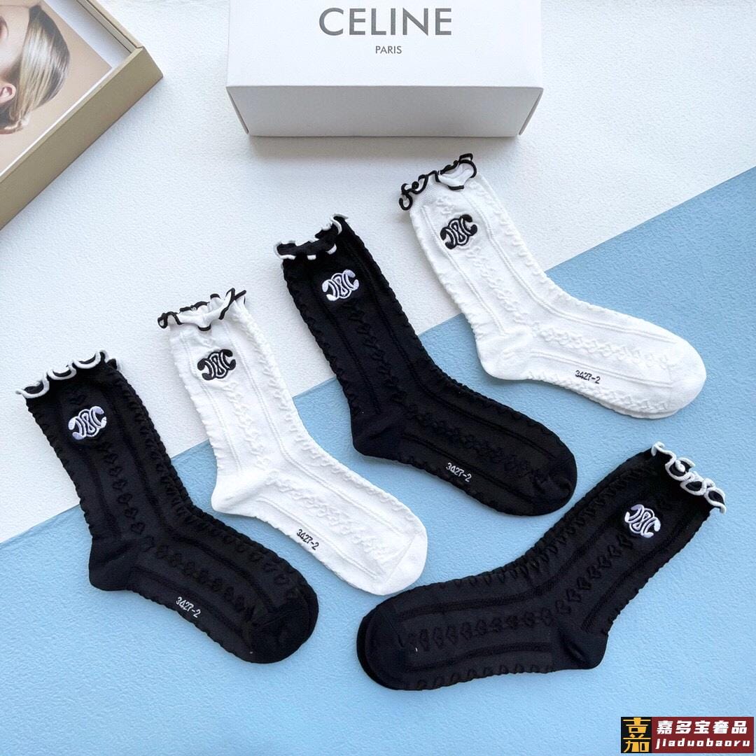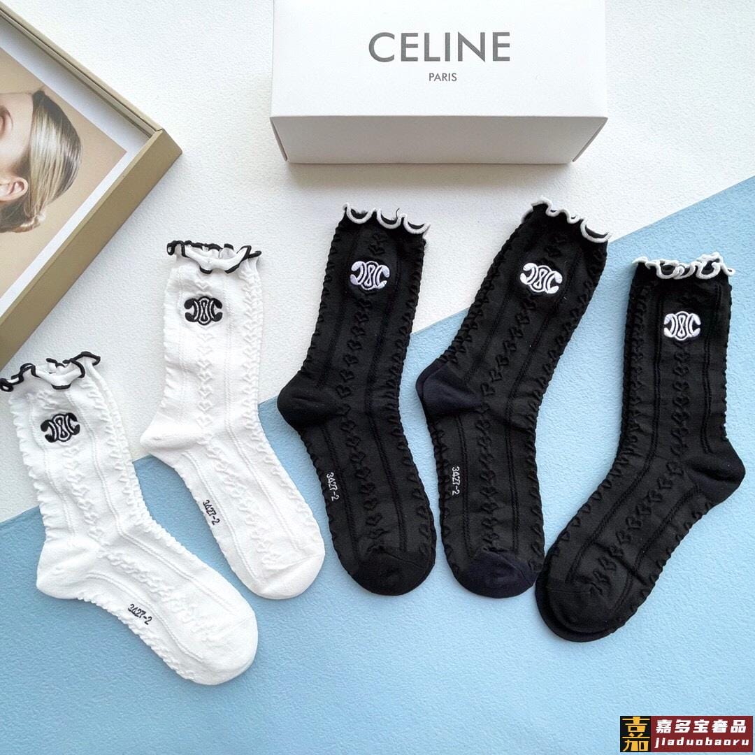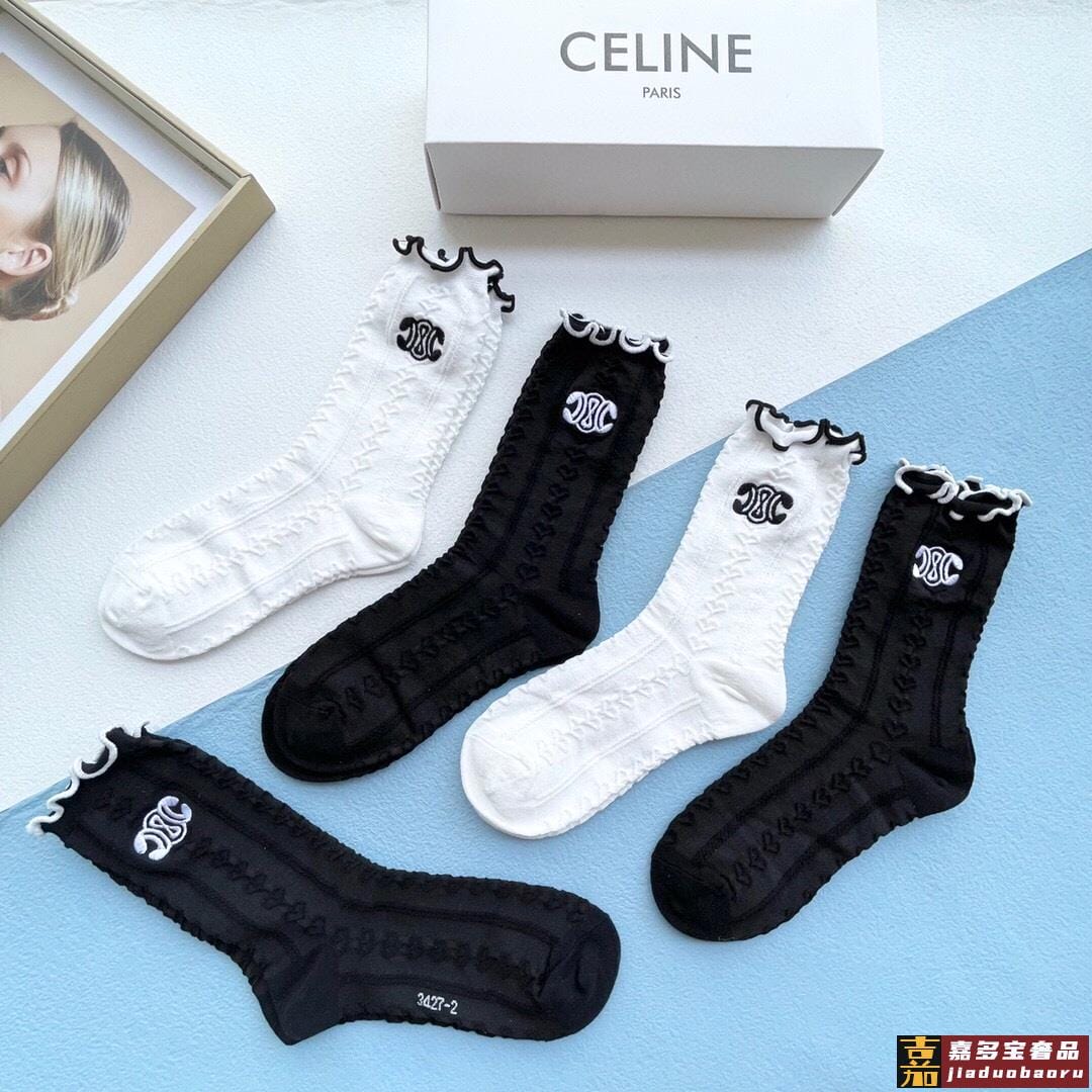 配包装一盒五双赛琳爆款木耳刺绣中筒袜高版本好看到爆炸欧美大牌