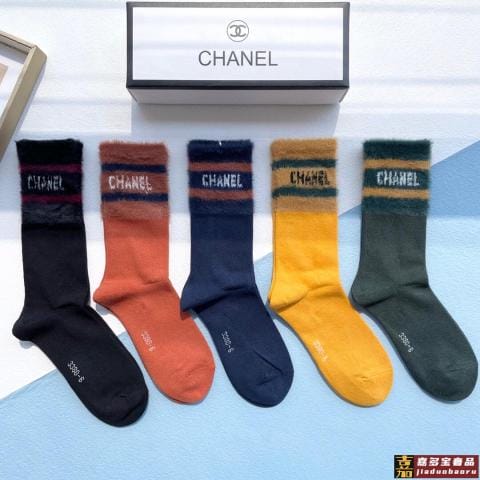 香奈儿新款经典金丝中筒堆堆袜袜子一盒五双专柜同步筒款袜子大牌