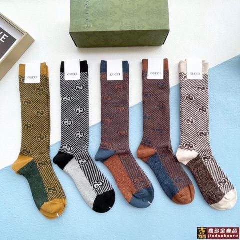 配包装一盒五双古奇超级爆款网红袜子大家官网同步双提花字母小腿