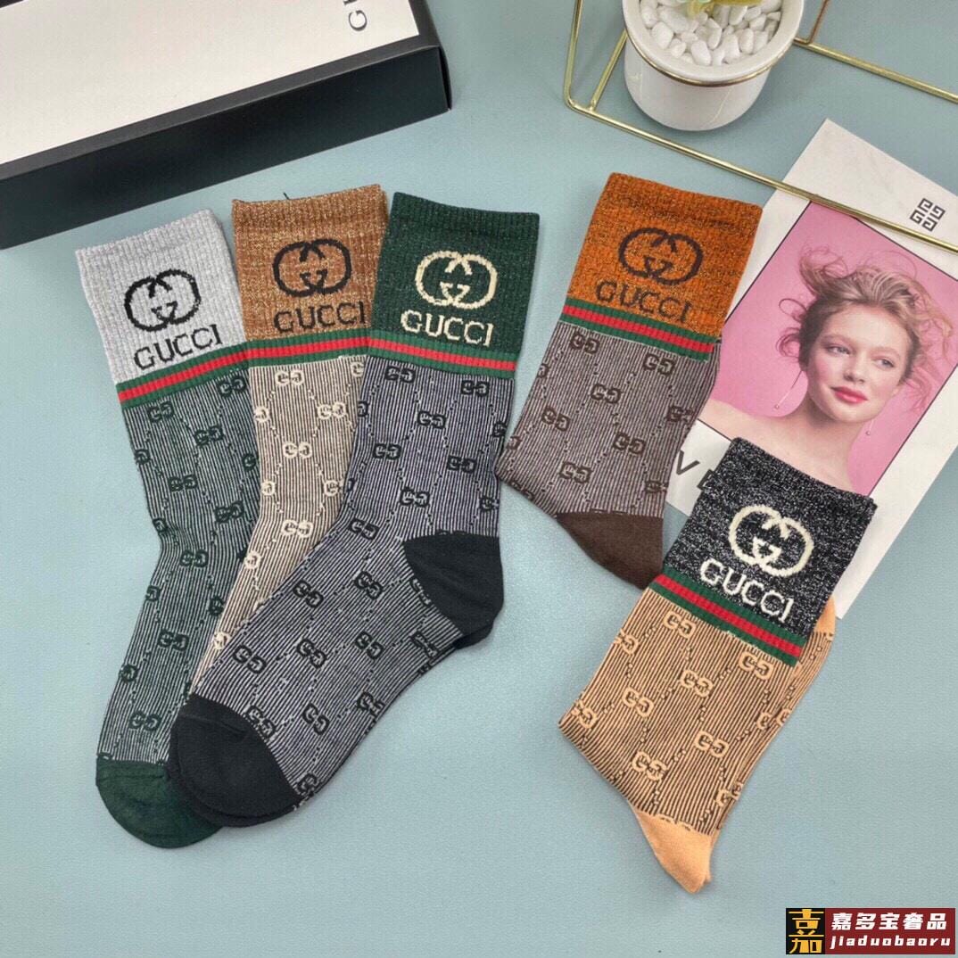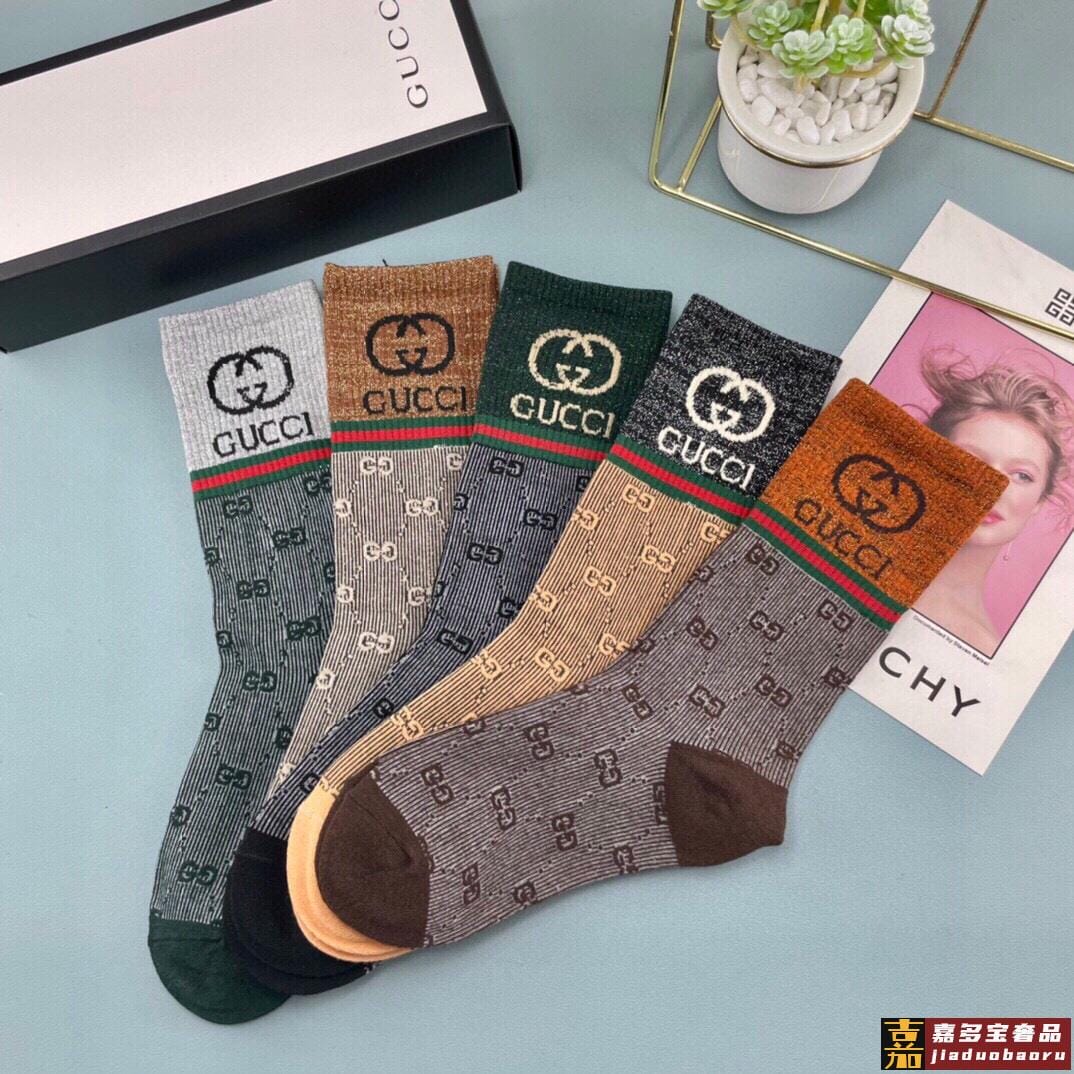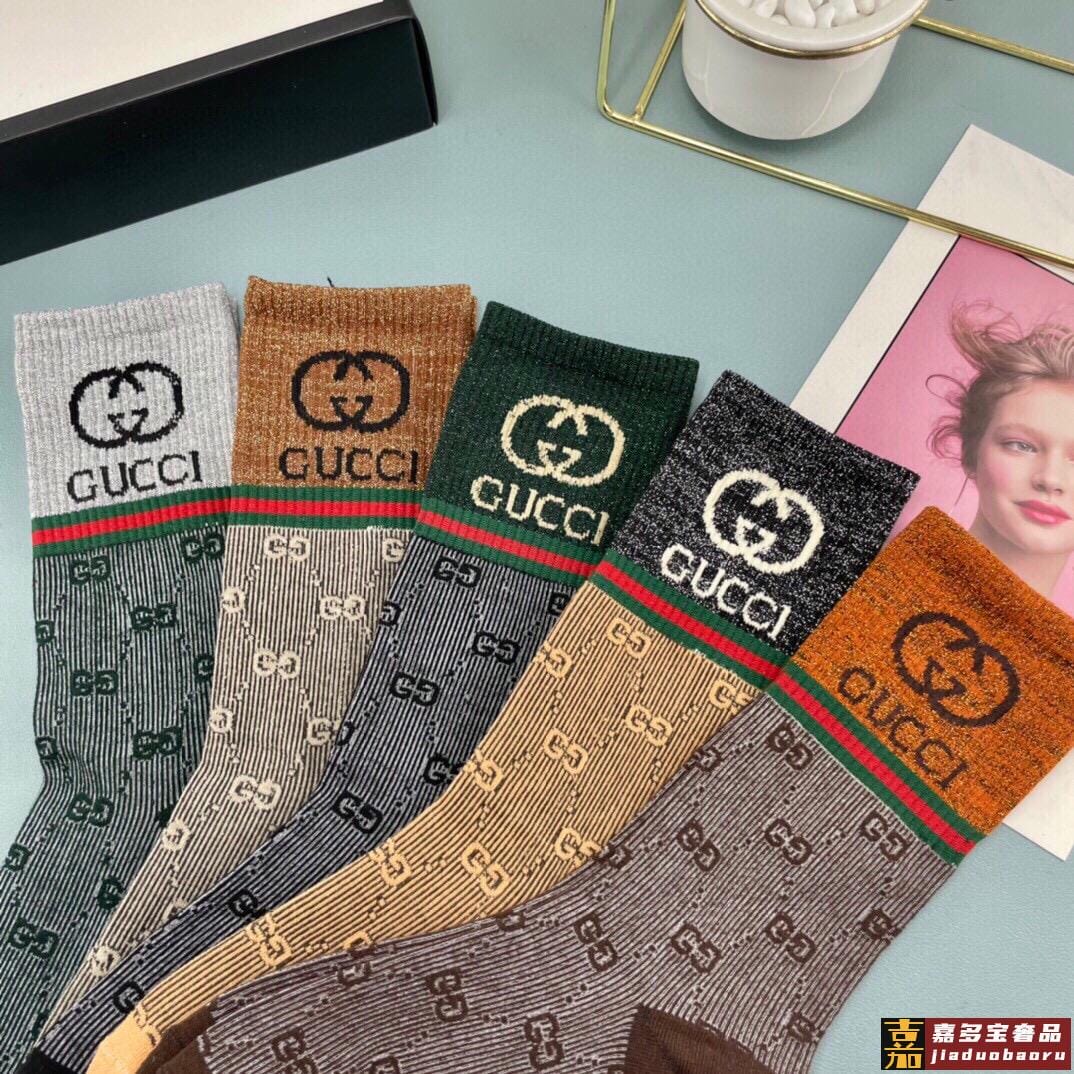香奈儿新款经典金丝中筒堆堆袜袜子一盒五双专柜同步筒款袜子大牌