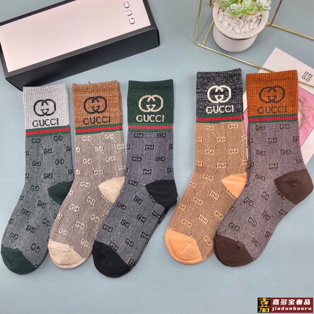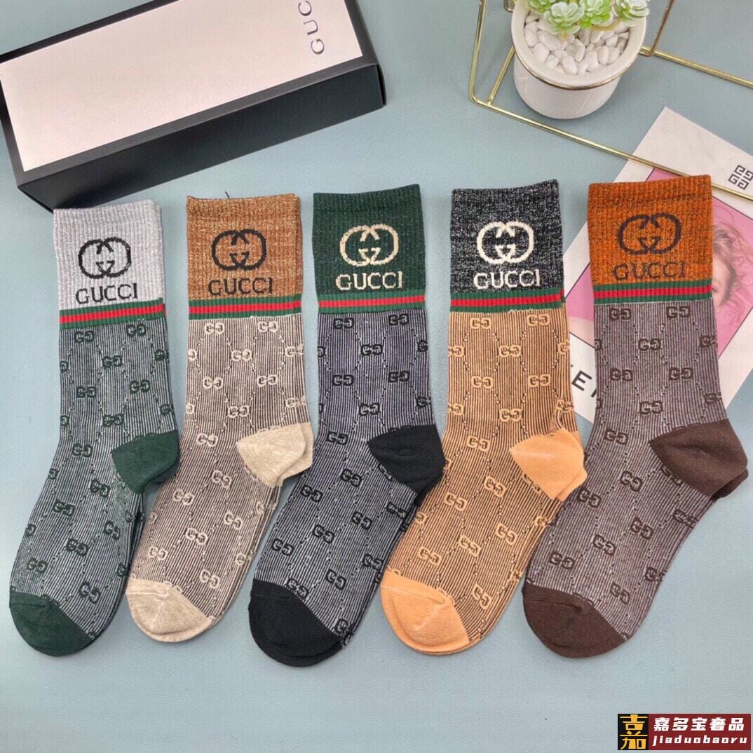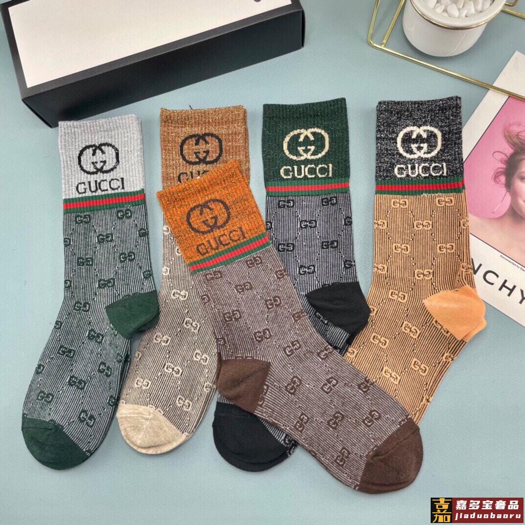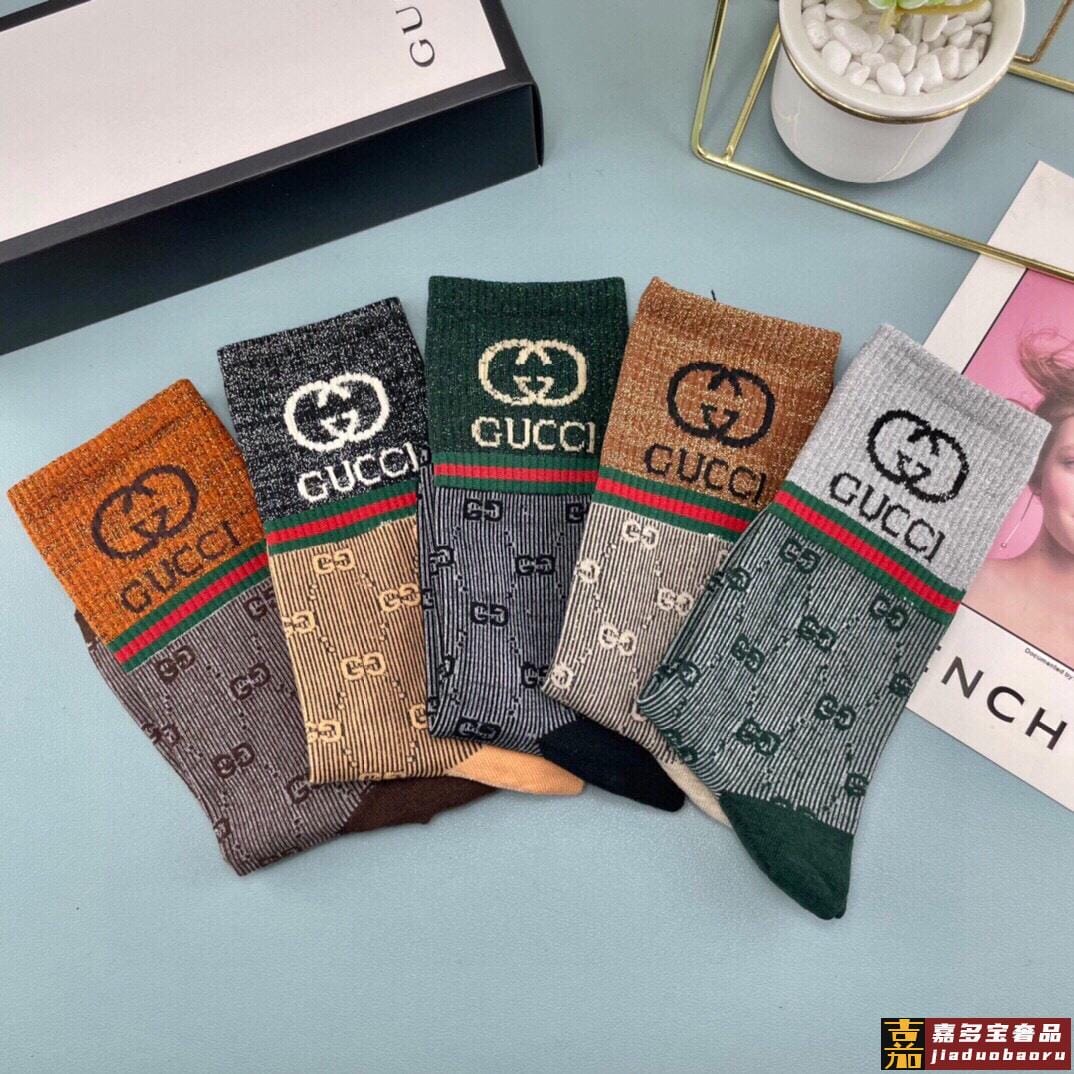 香奈儿新款经典金丝中筒堆堆袜袜子一盒五双专柜同步筒款袜子大牌