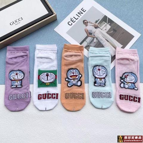配包装一盒五双古奇新款直筒短款冰丝袜子冰丝加棉双镂空经典标志