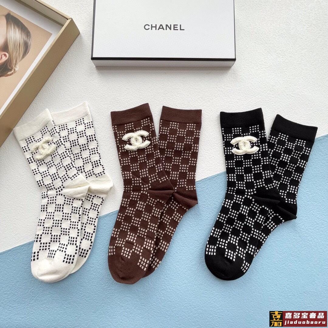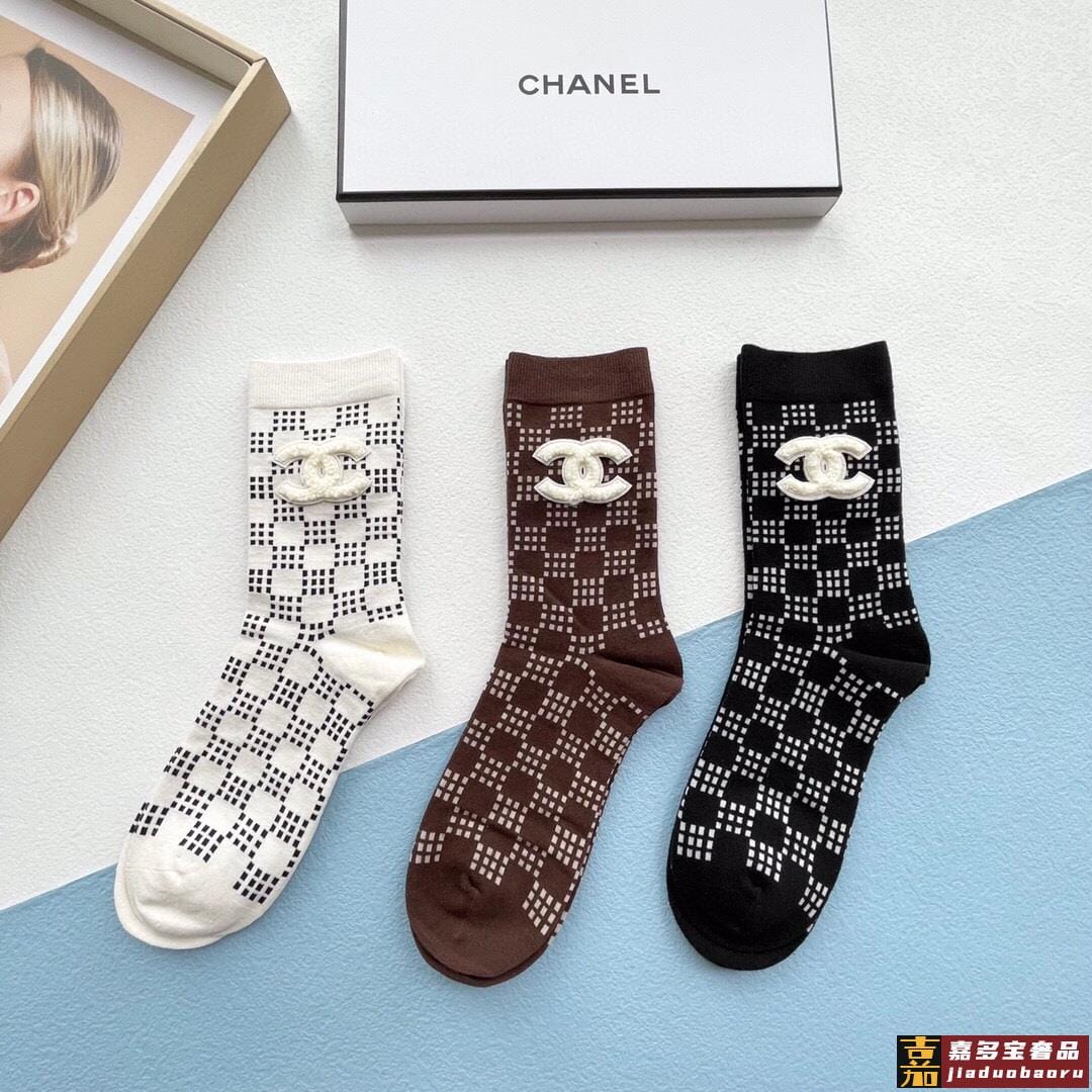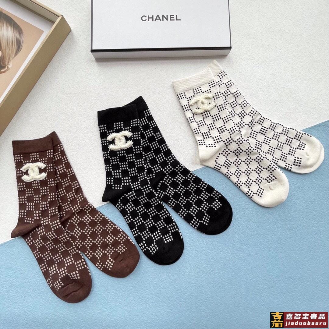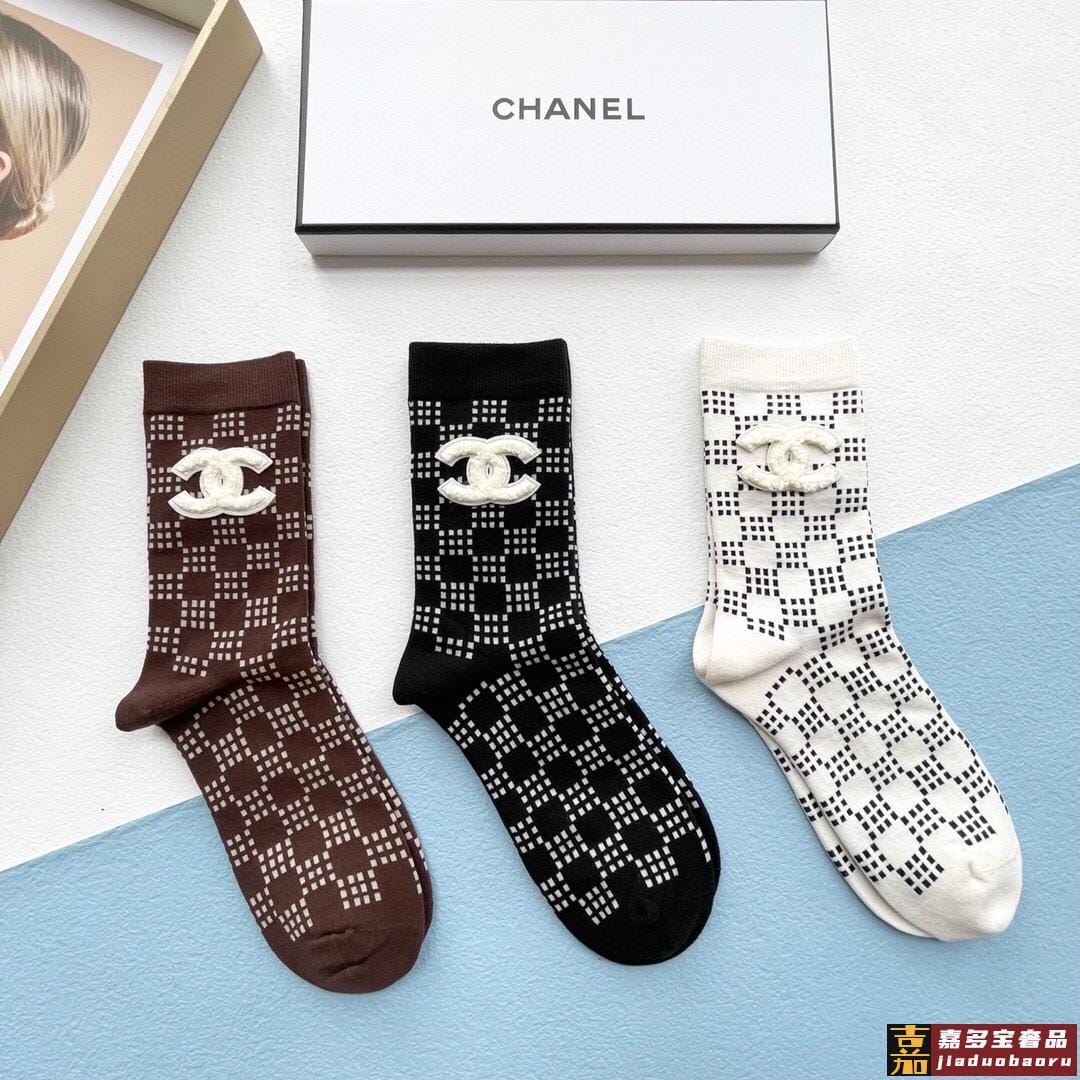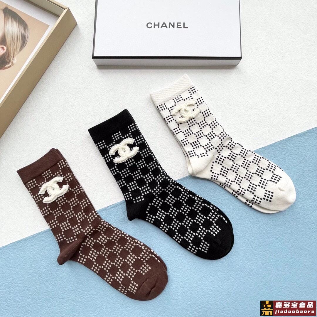 配包装一盒三双香奈儿爆款中筒袜高版本好看到爆炸欧美大牌中筒袜