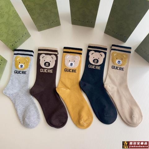 特配专柜包装古驰网红爆款新款羽毛纱小熊中长款堆堆袜袜子一盒五
