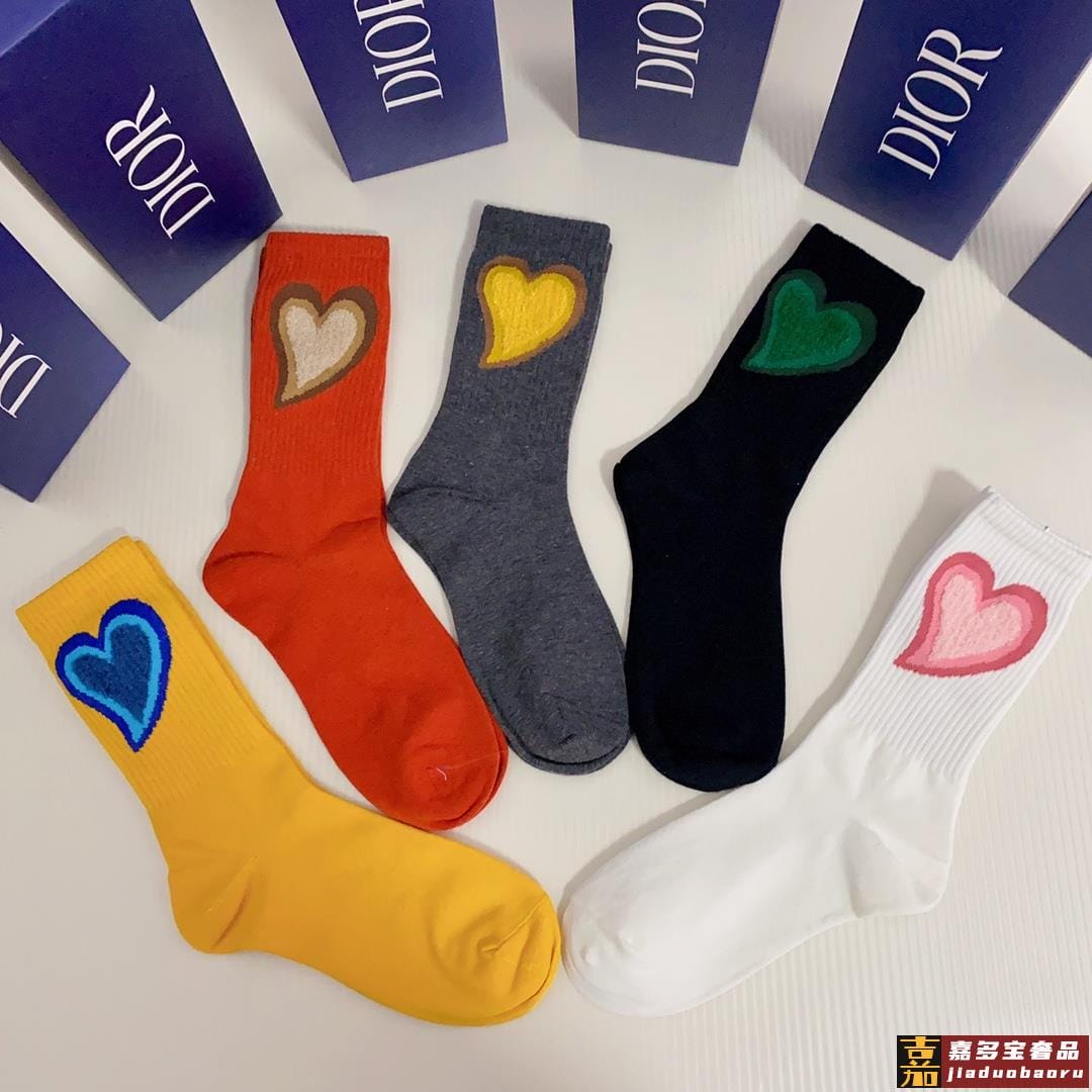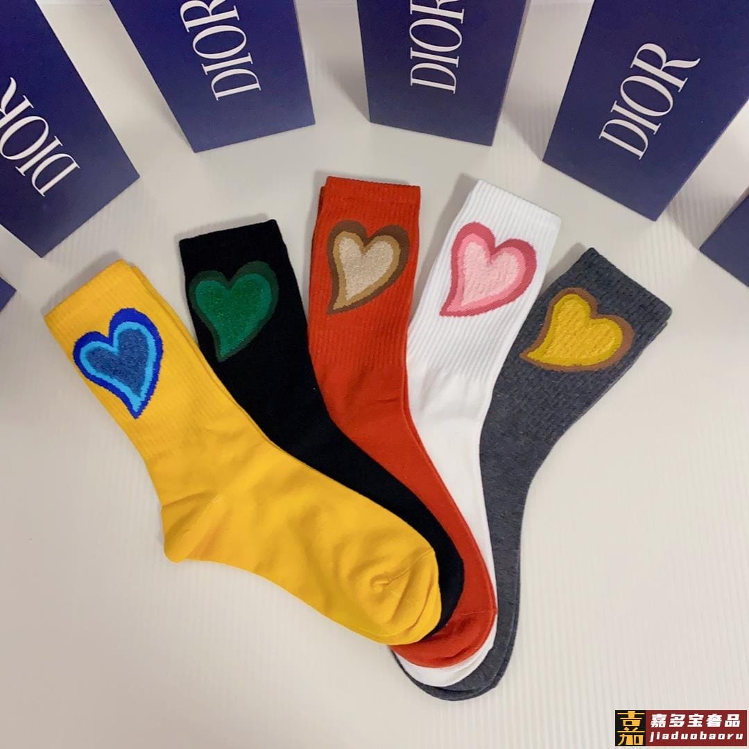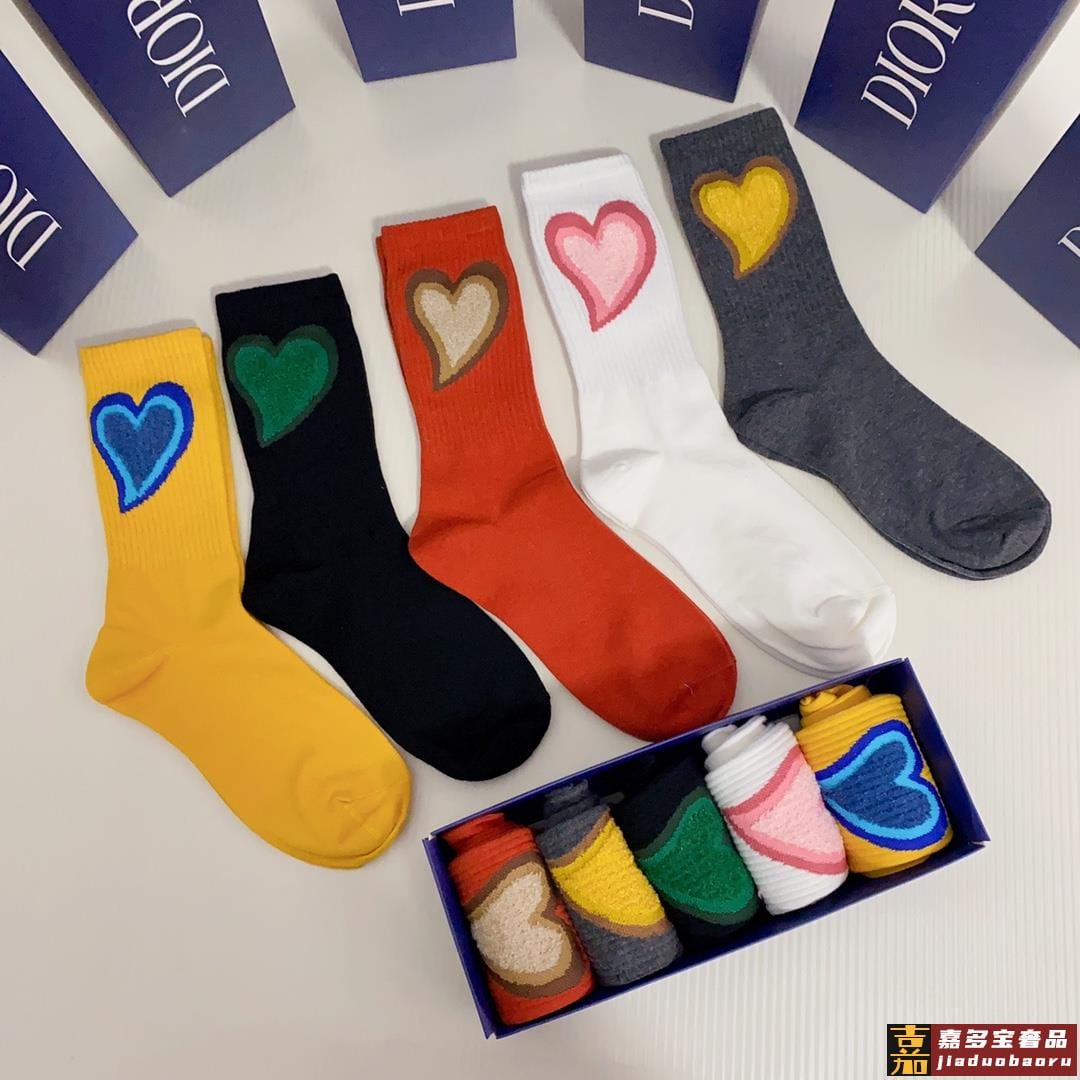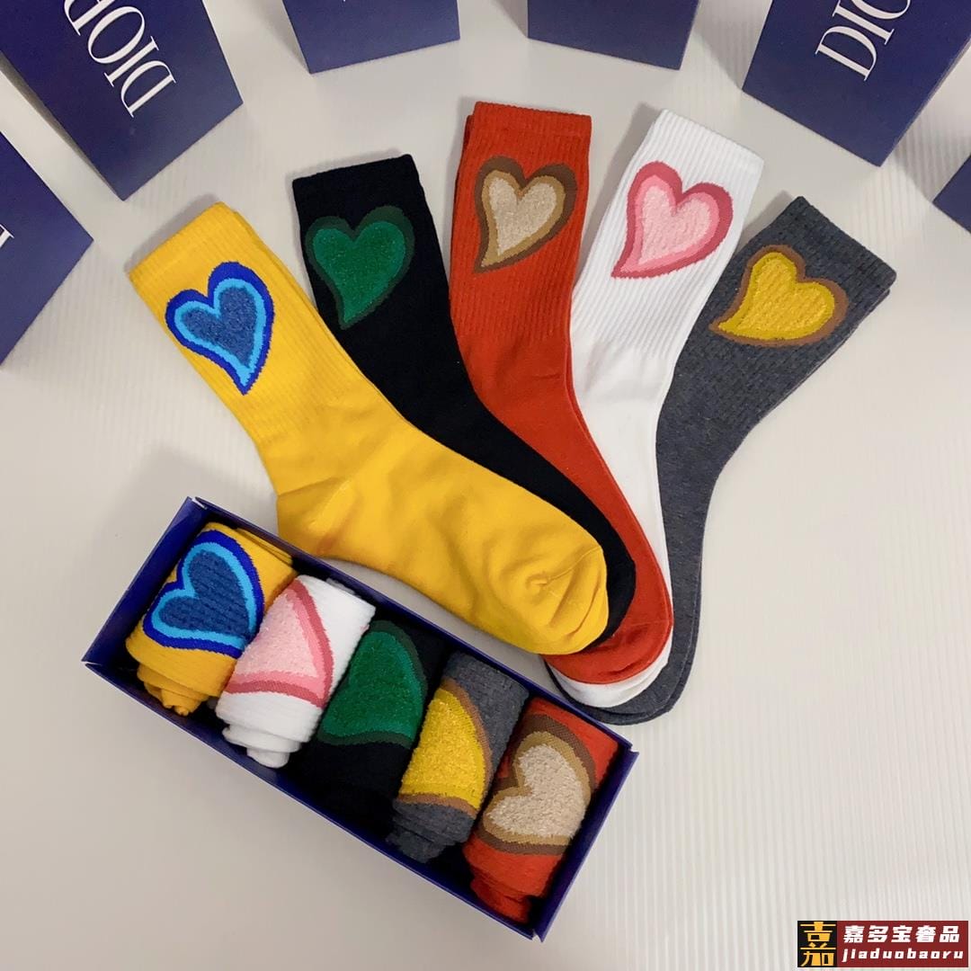 特配包装迪奥新款桃心经典中长款堆堆袜袜子一盒五双专柜同步筒袜