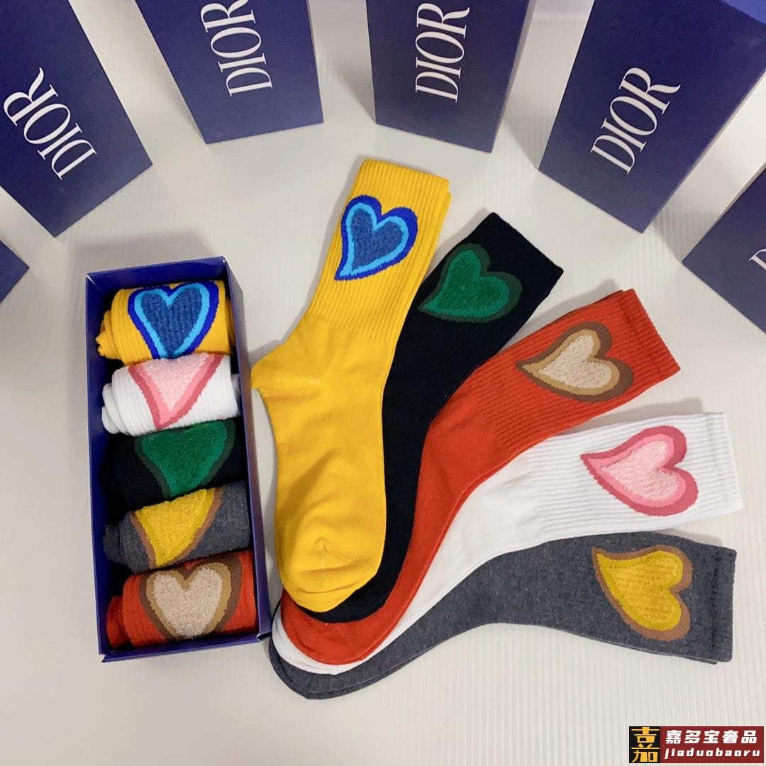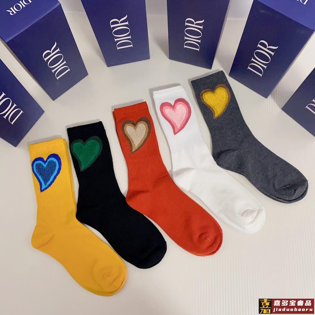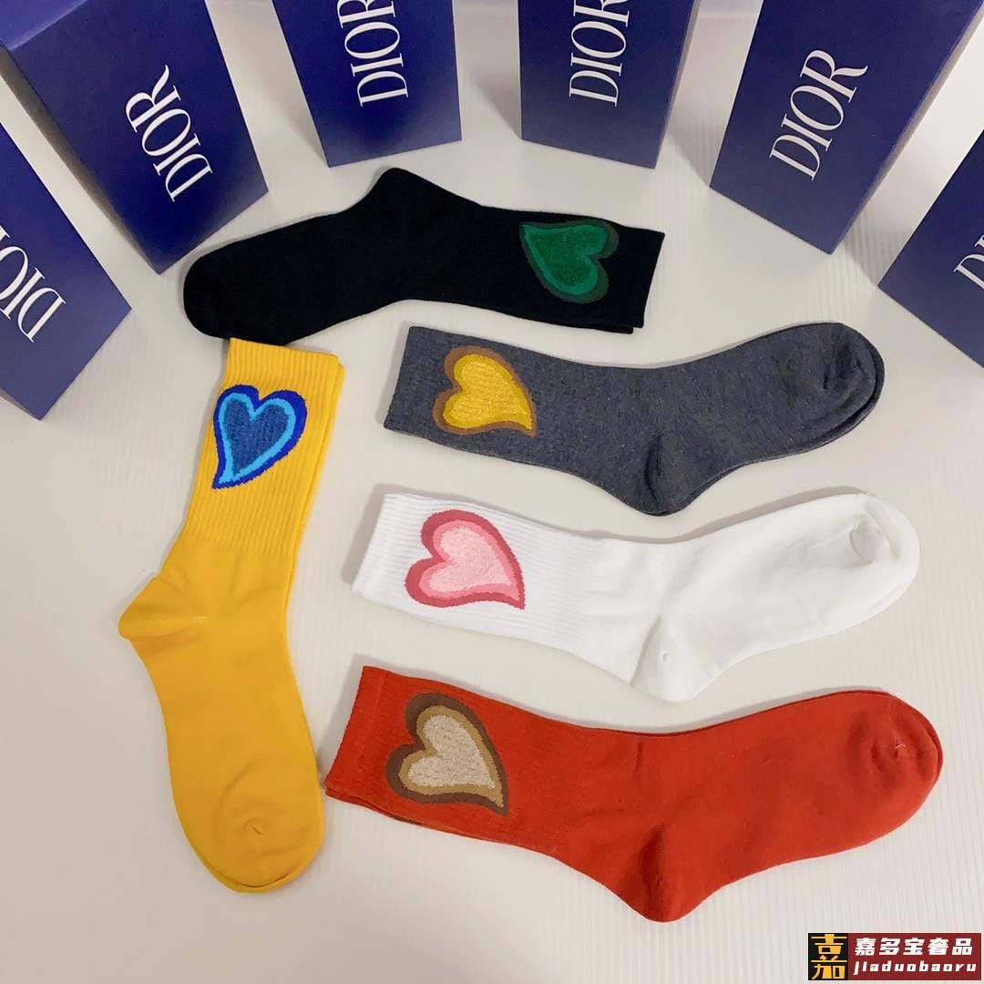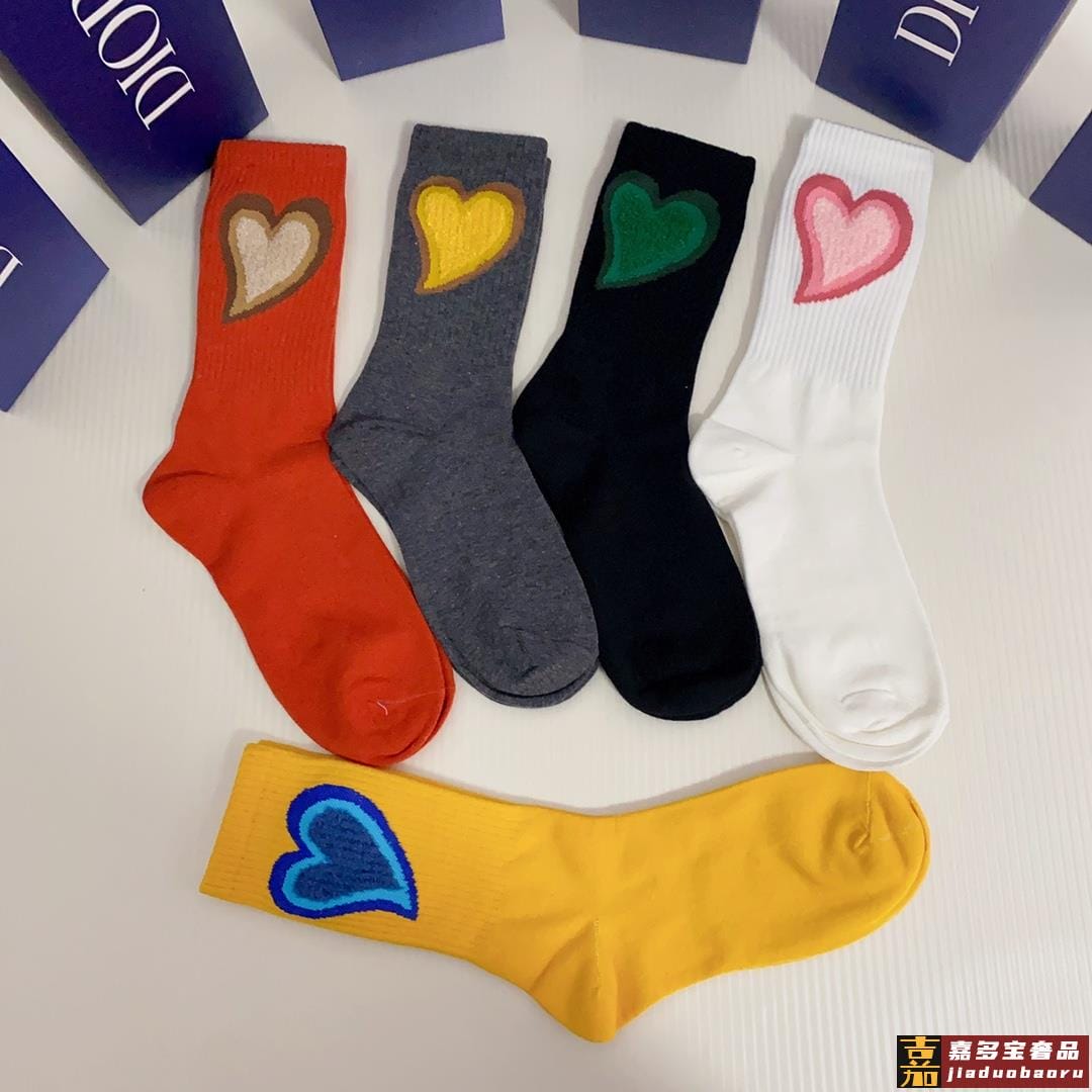 特配包装迪奥新款桃心经典中长款堆堆袜袜子一盒五双专柜同步筒袜