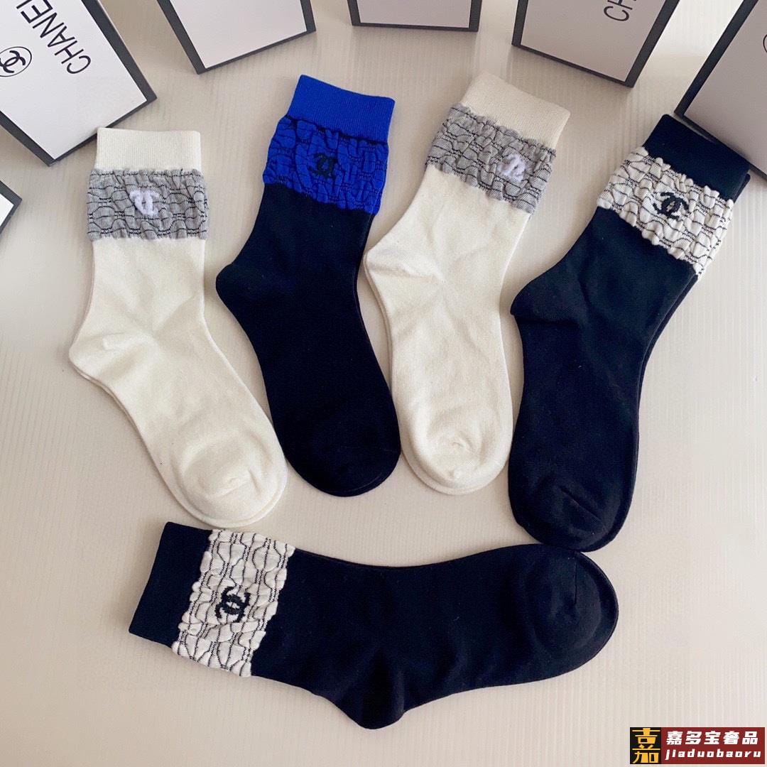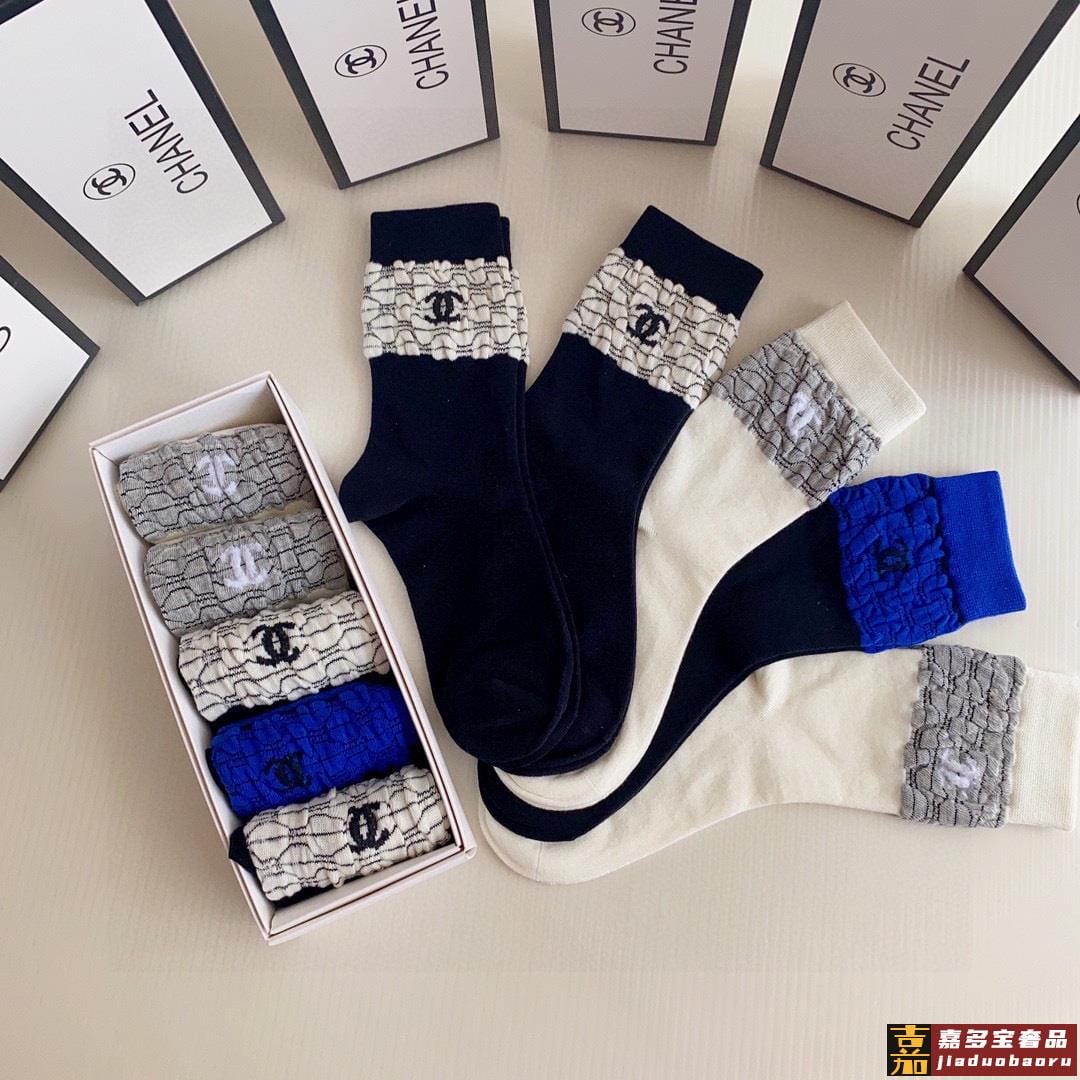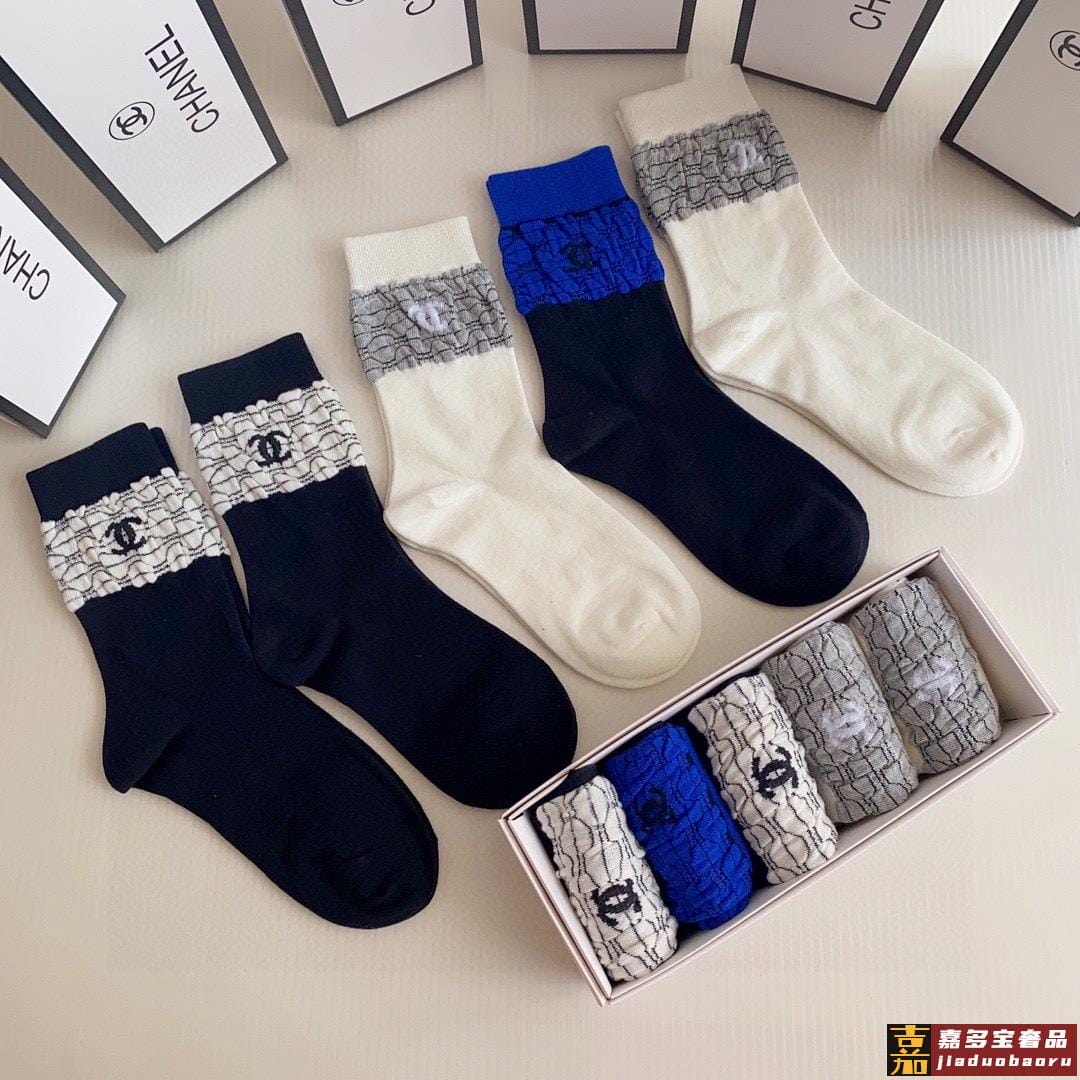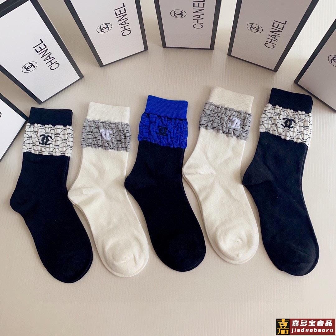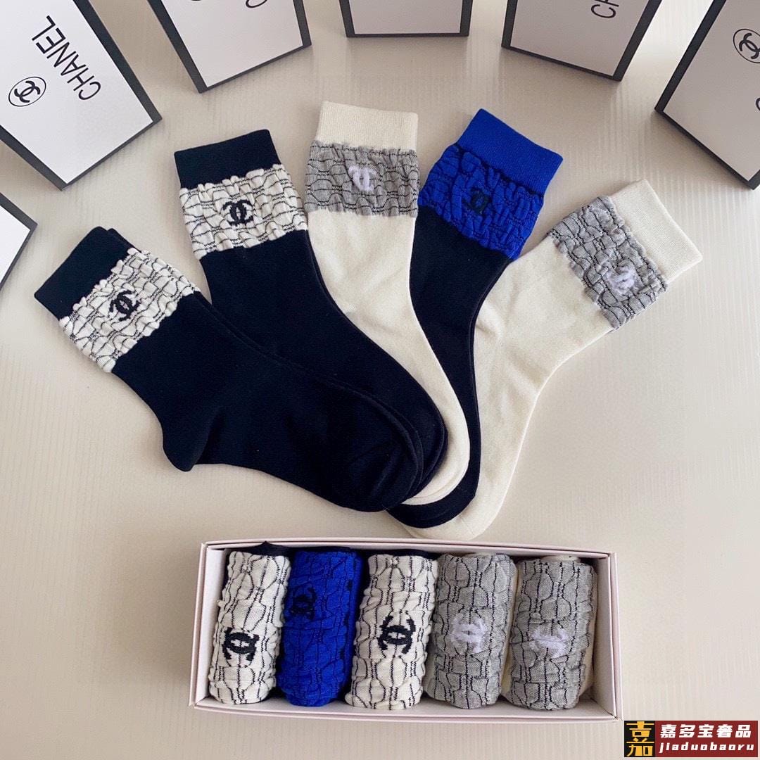 特配包装香奈儿新款经典中长款堆堆袜袜子一盒五双专柜同步筒款袜
