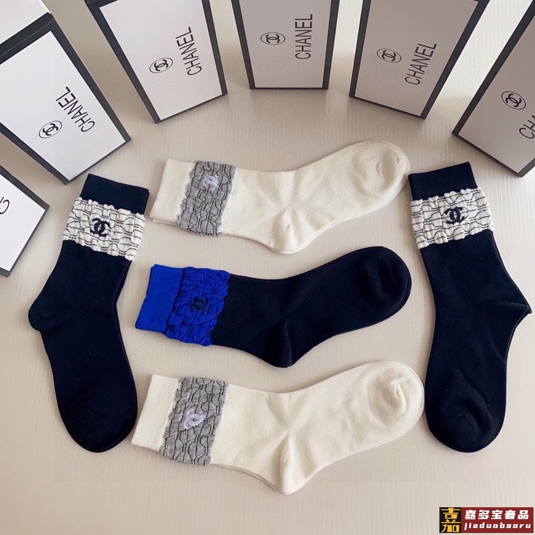 配包装一盒三双香奈儿爆款中筒袜高版本好看到爆炸欧美大牌中筒袜