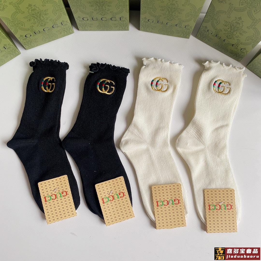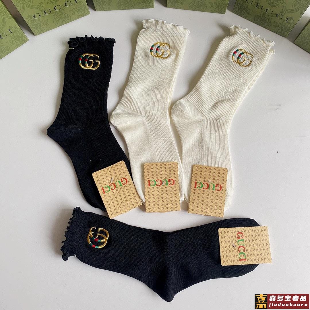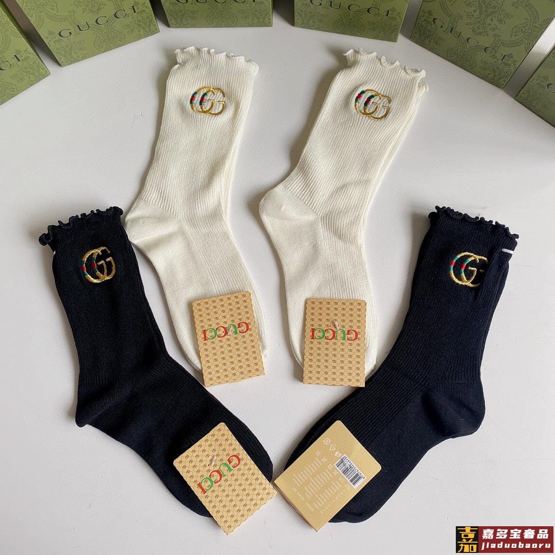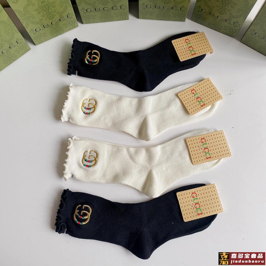 特配专柜包装古驰新款中长款刺绣毛边堆堆袜袜子一盒四双专柜同步