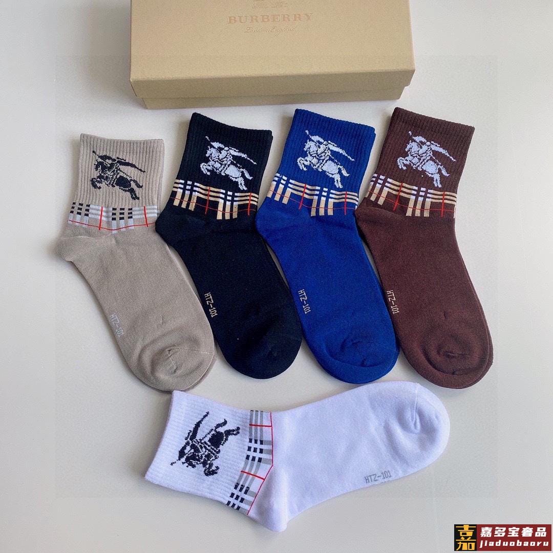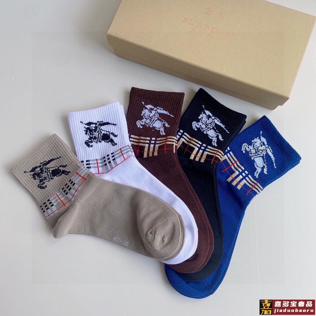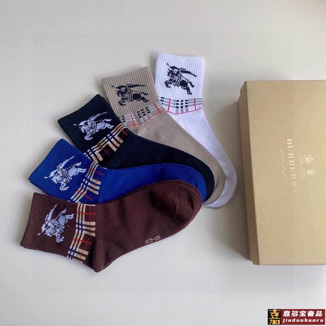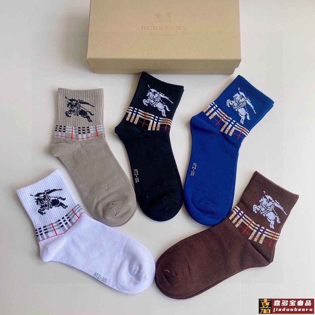 特配专柜包装巴宝莉新款中长款堆堆袜袜子一盒五双专柜同步筒袜袜