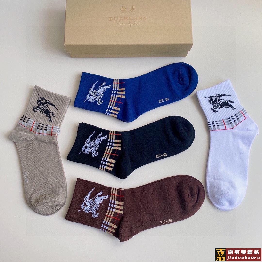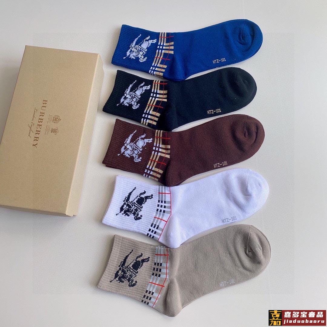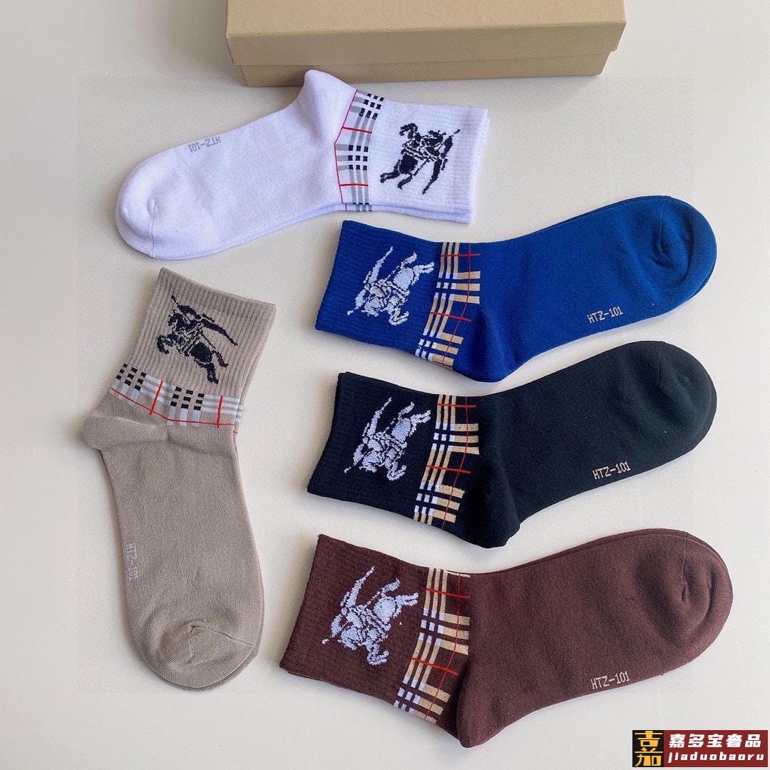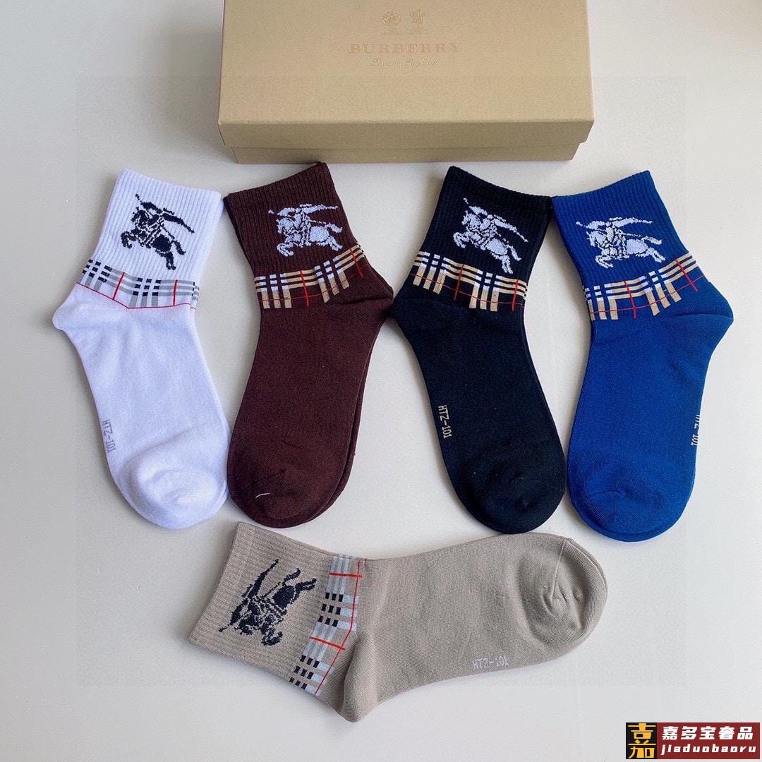特配专柜包装巴宝莉新款中长款堆堆袜袜子一盒五双专柜同步筒袜袜