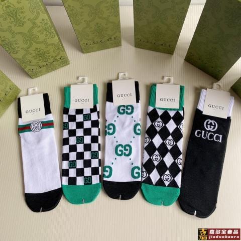 特配专柜包装古驰新款直板家中长款堆堆袜袜子一盒五双专柜同步筒