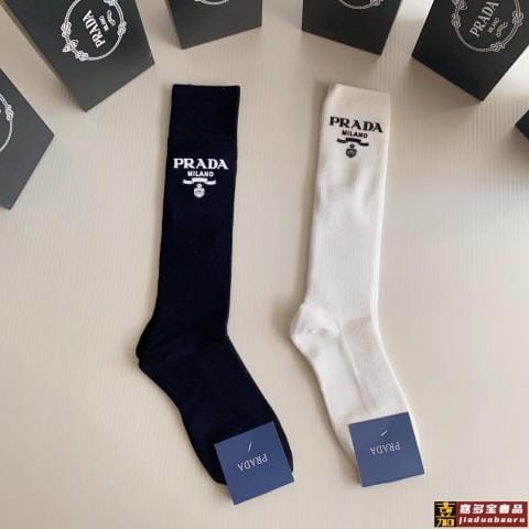 特配专柜包装普拉达新款中长款刺绣堆堆袜袜子一盒五双专柜同步筒