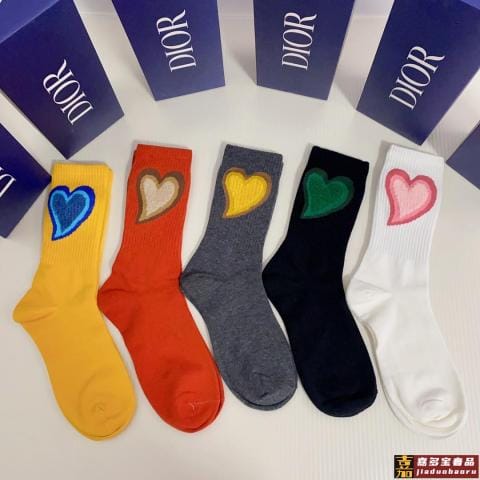 特配包装迪奥新款桃心经典中长款堆堆袜袜子一盒五双专柜同步筒袜