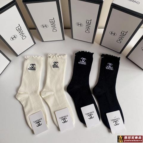 特配专柜包装香奈儿新款中长款刺绣毛边堆堆袜袜子一盒四双专柜同
