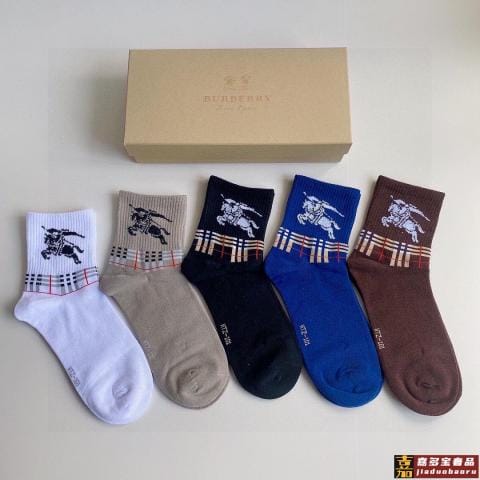 特配专柜包装巴宝莉新款中长款堆堆袜袜子一盒五双专柜同步筒袜袜