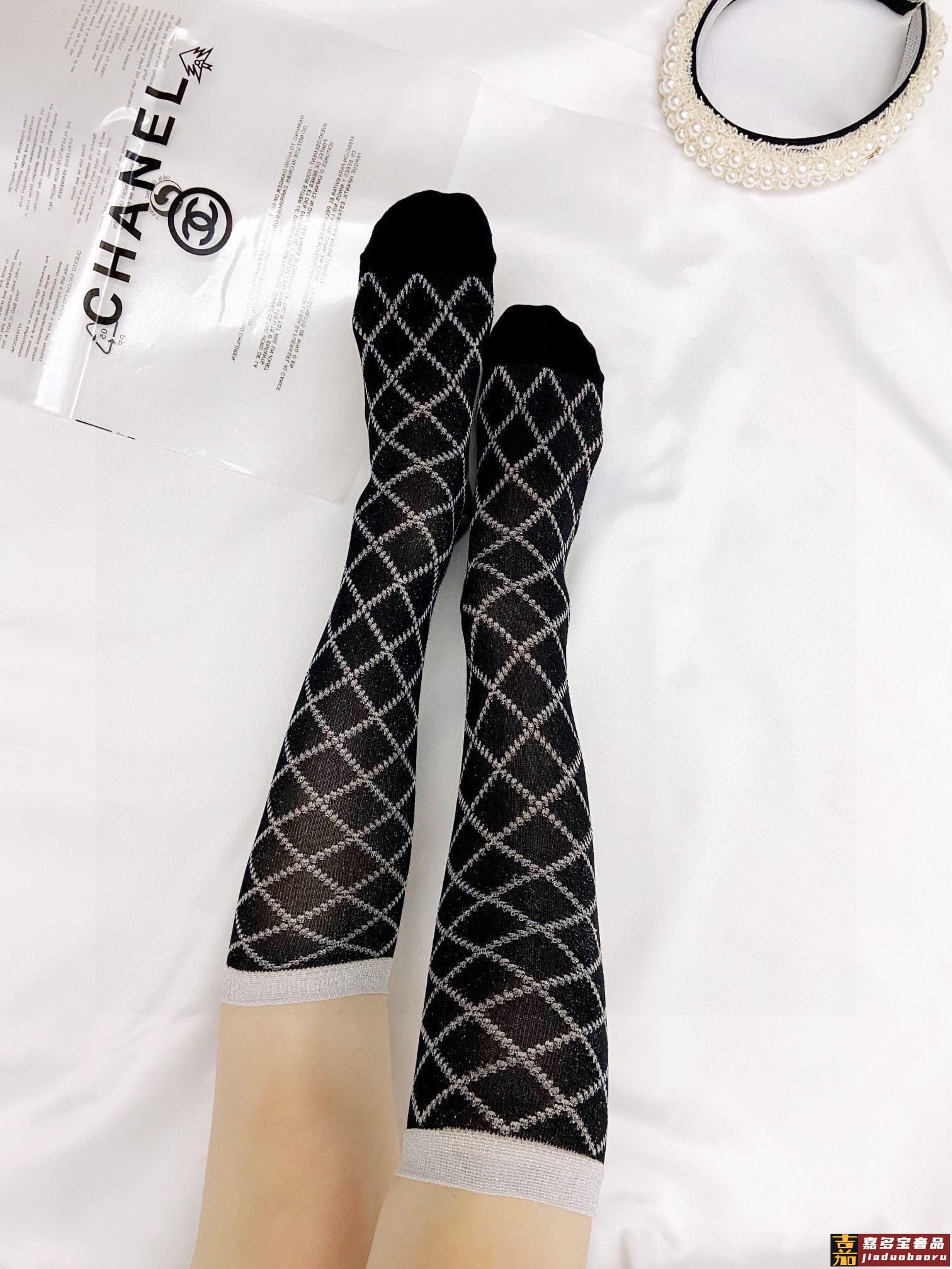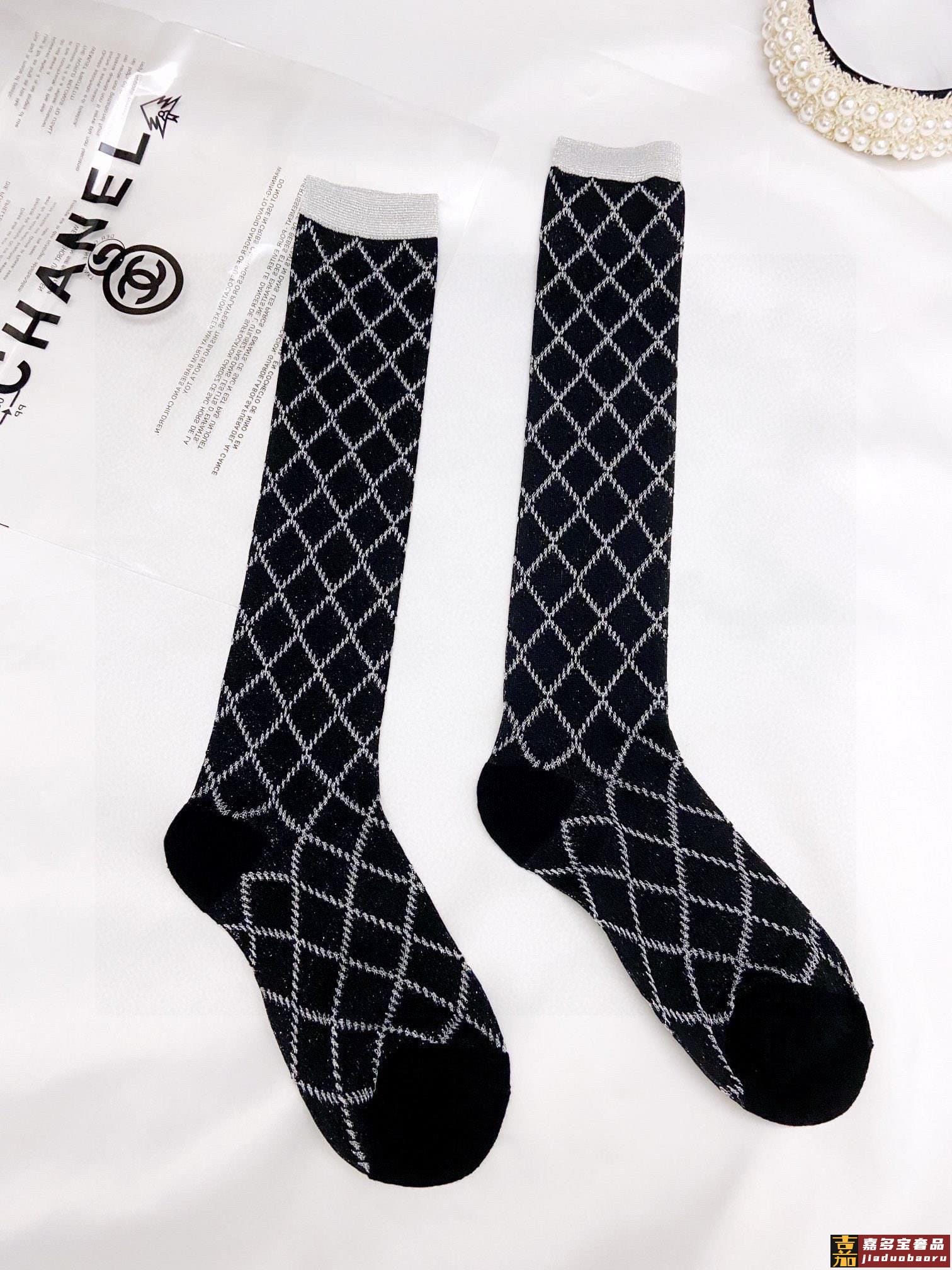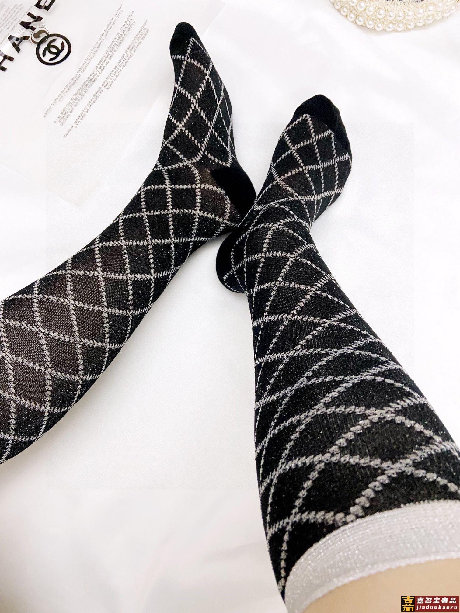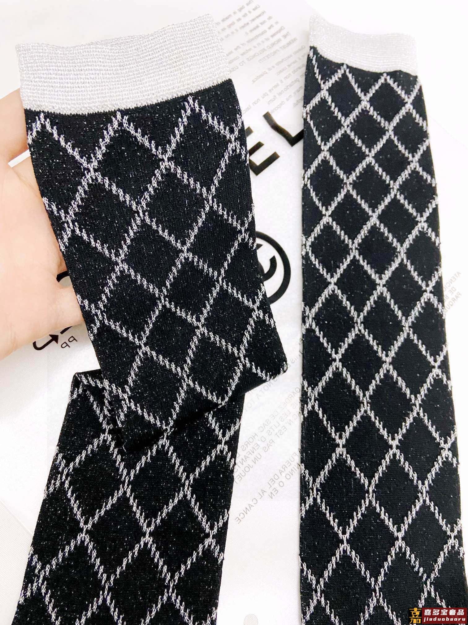 配包装一盒双香奈儿爆款菱格长筒袜小腿袜金银丝混纺材质超完美配