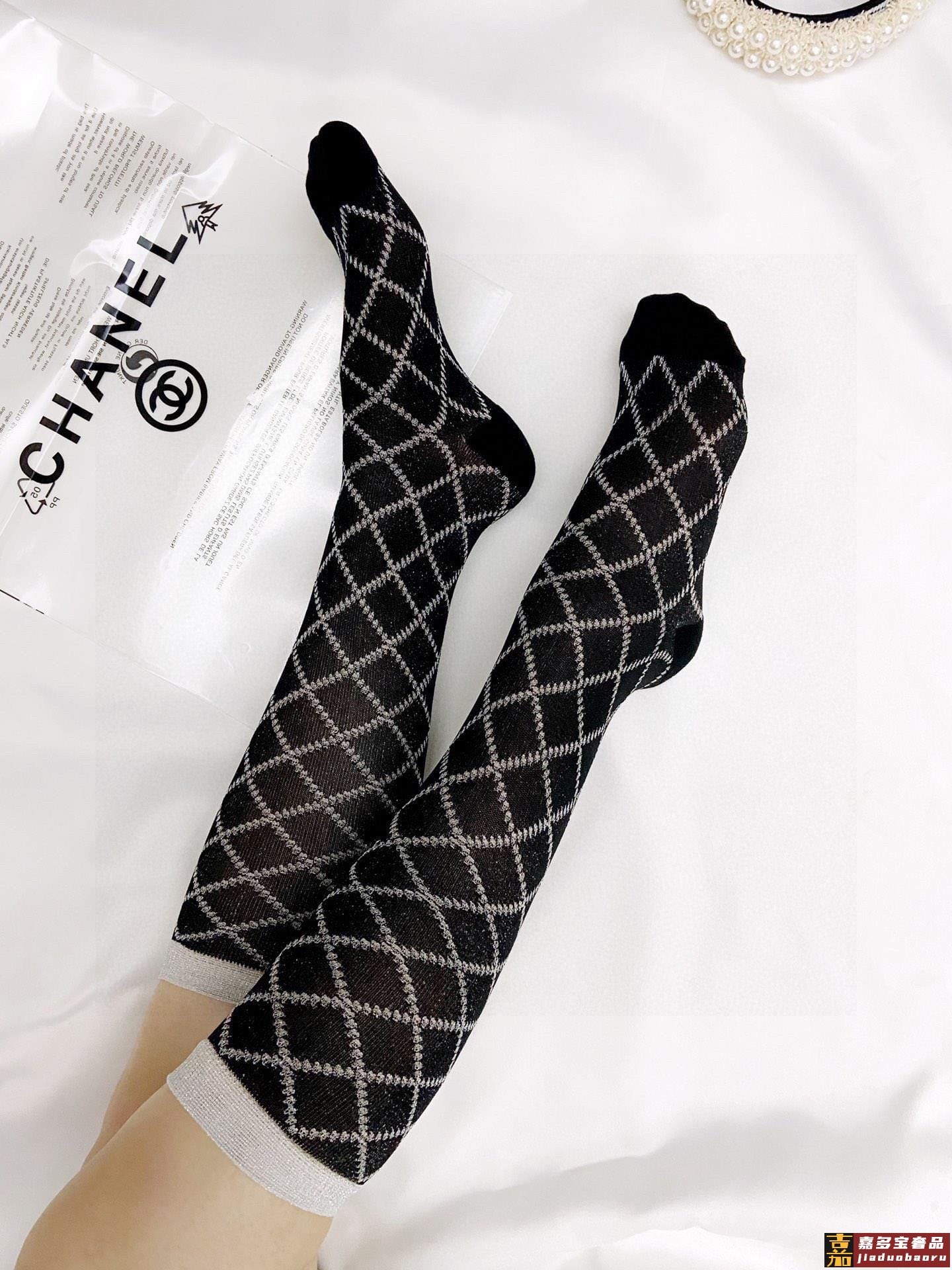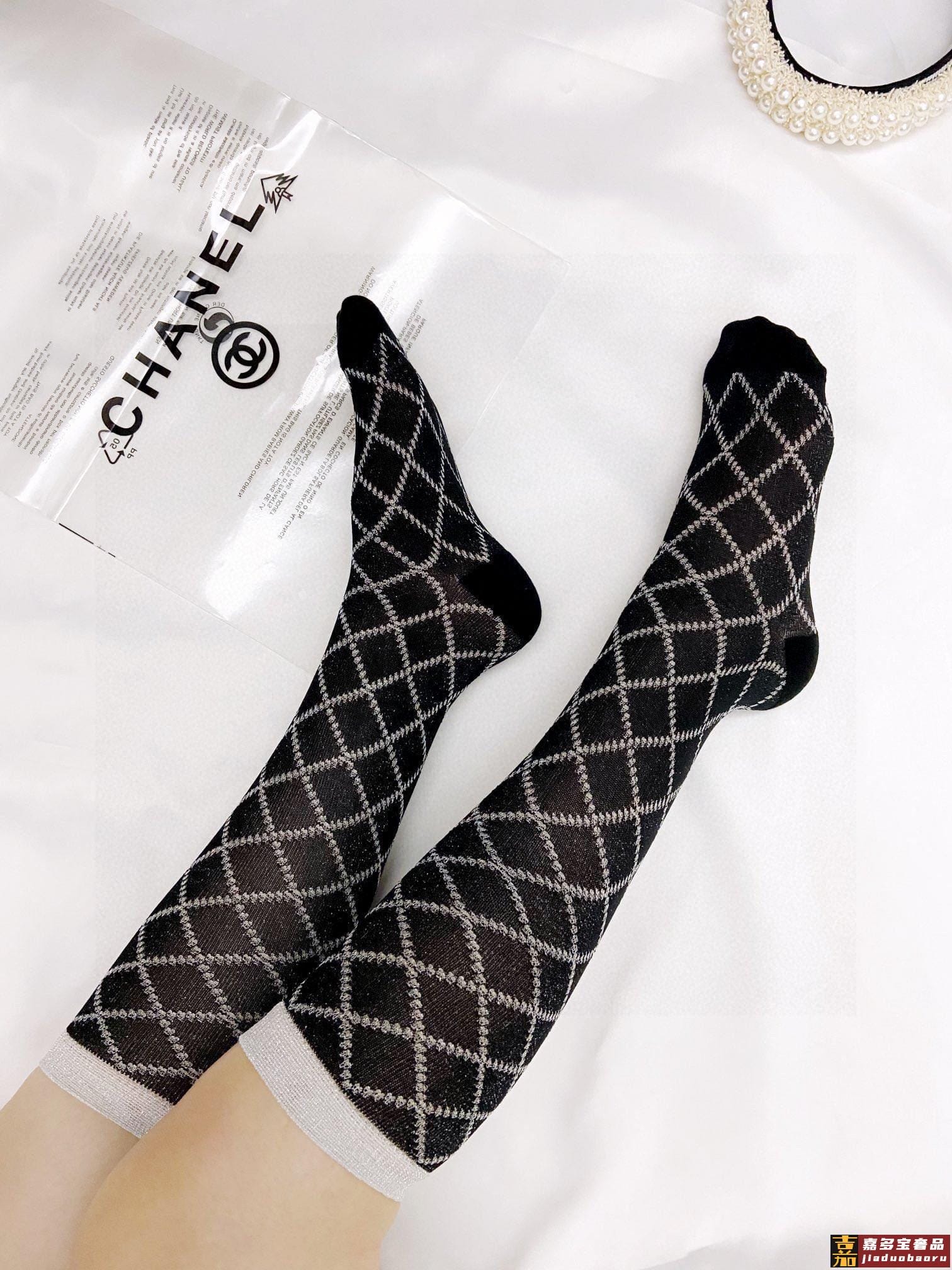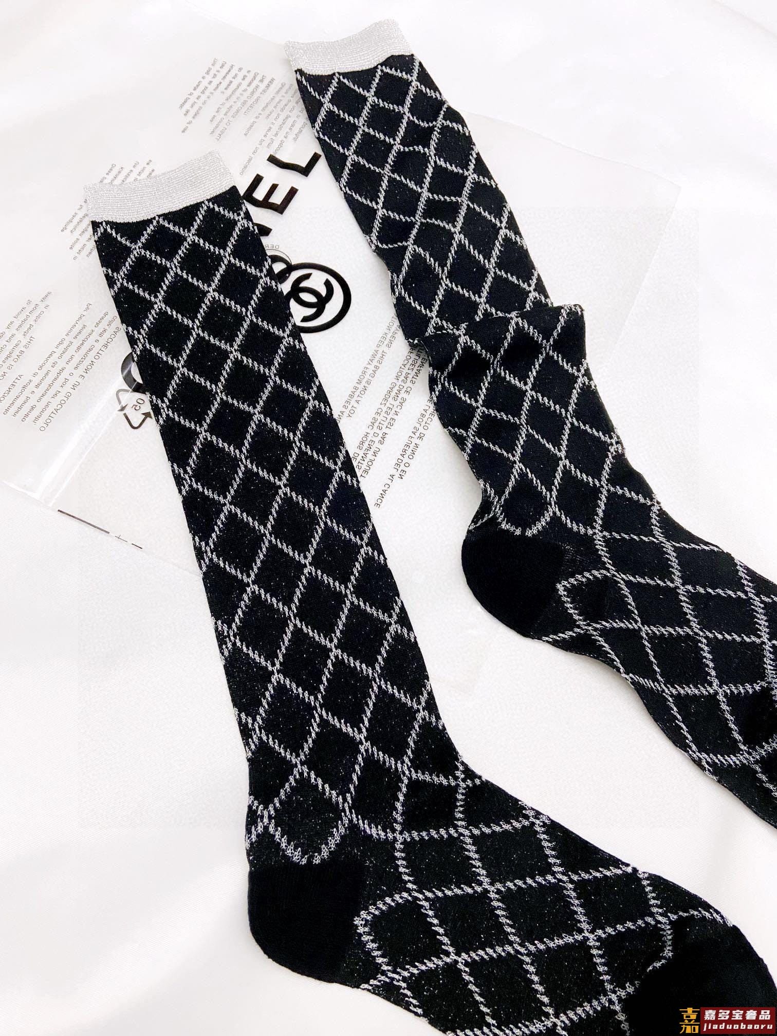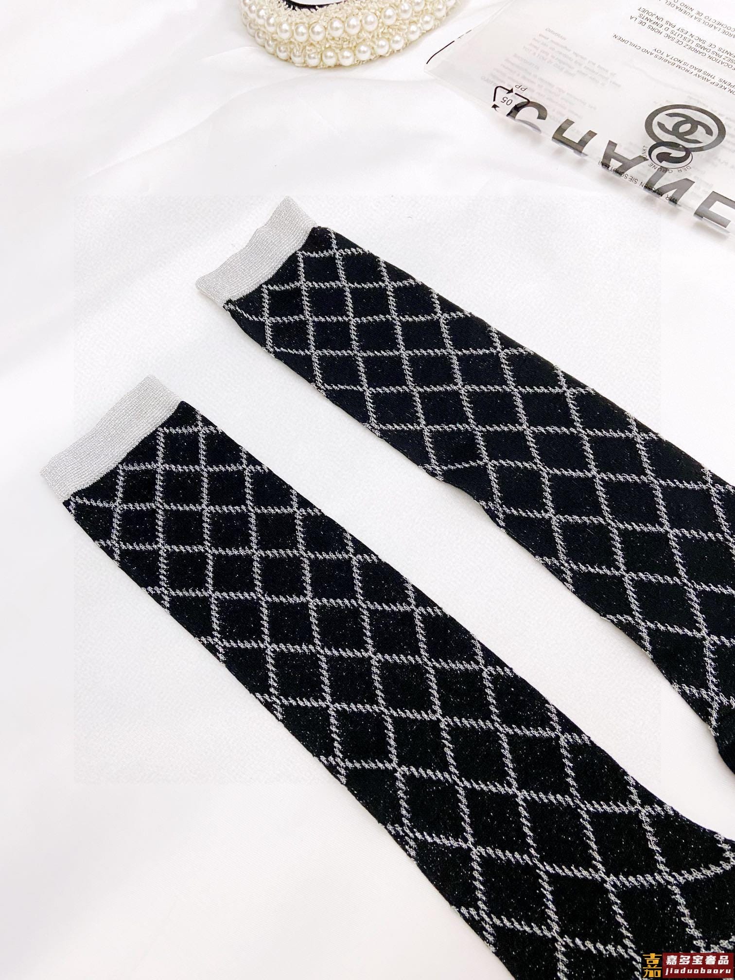 配包装一盒双香奈儿爆款菱格长筒袜小腿袜金银丝混纺材质超完美配