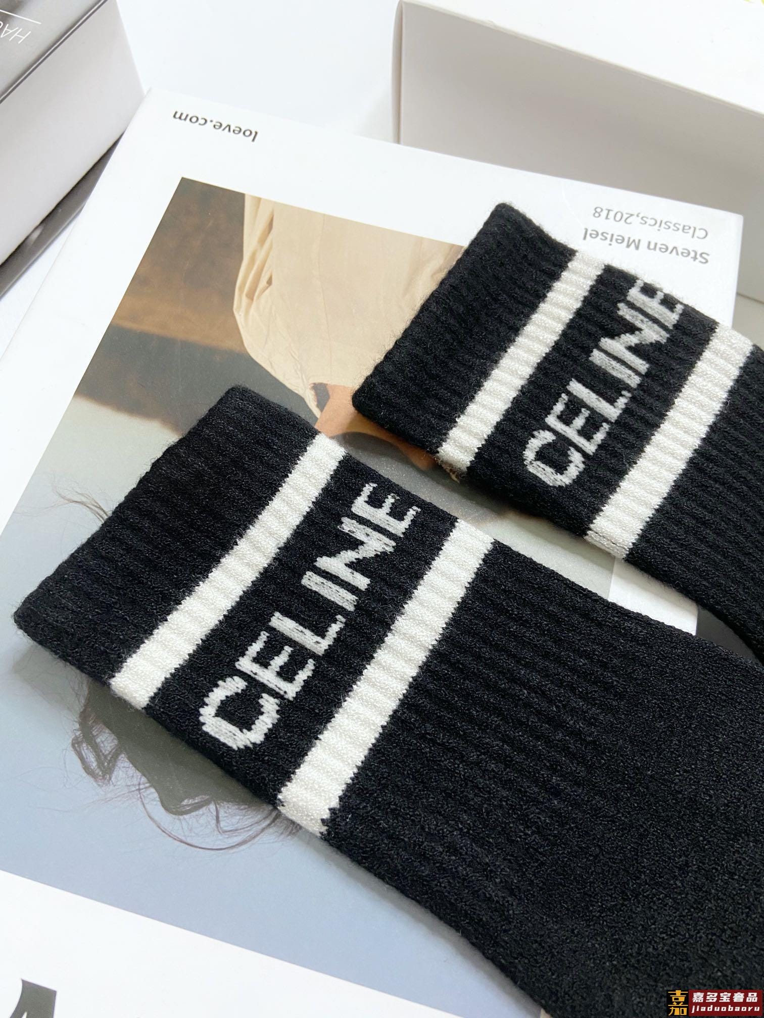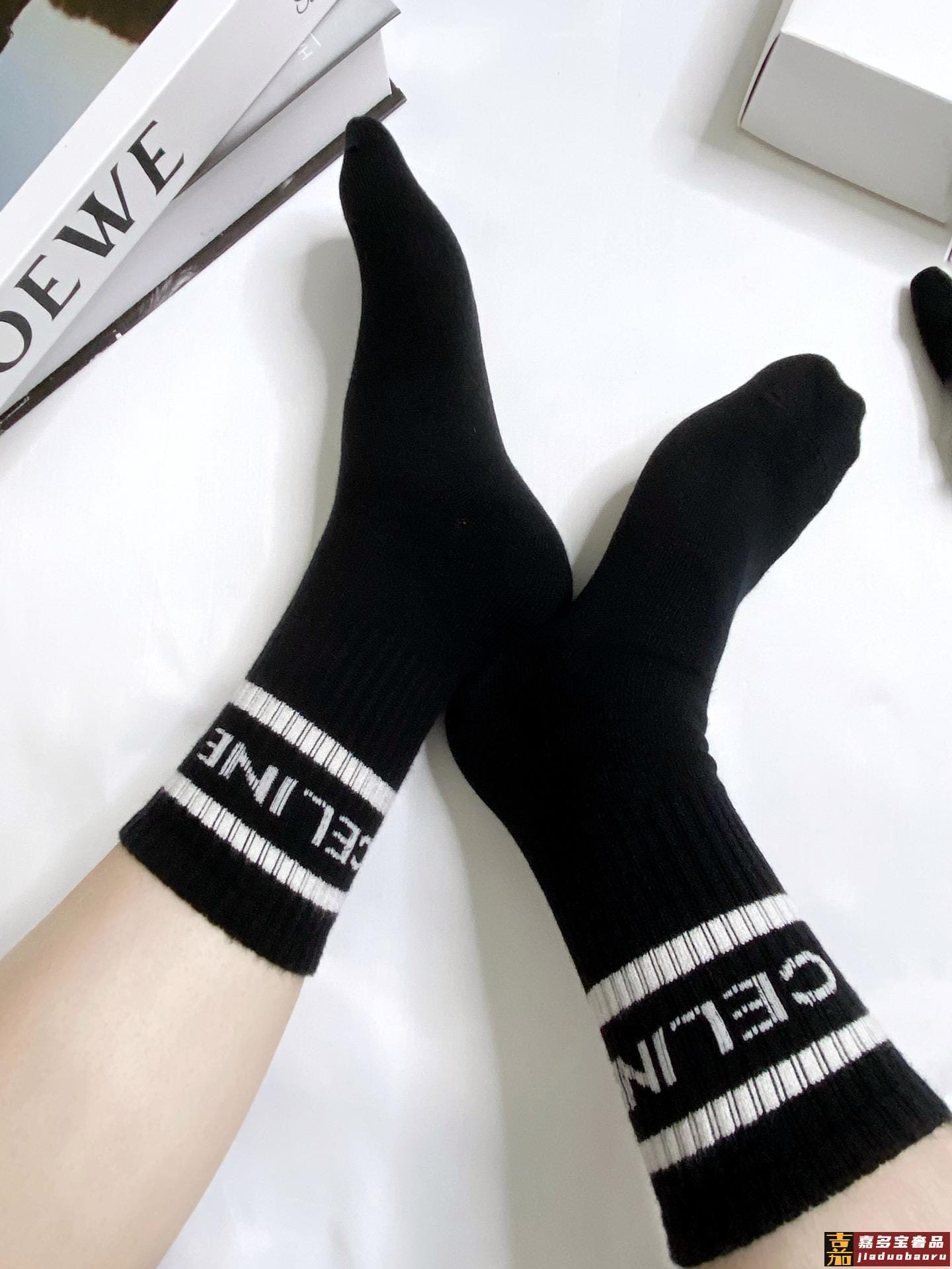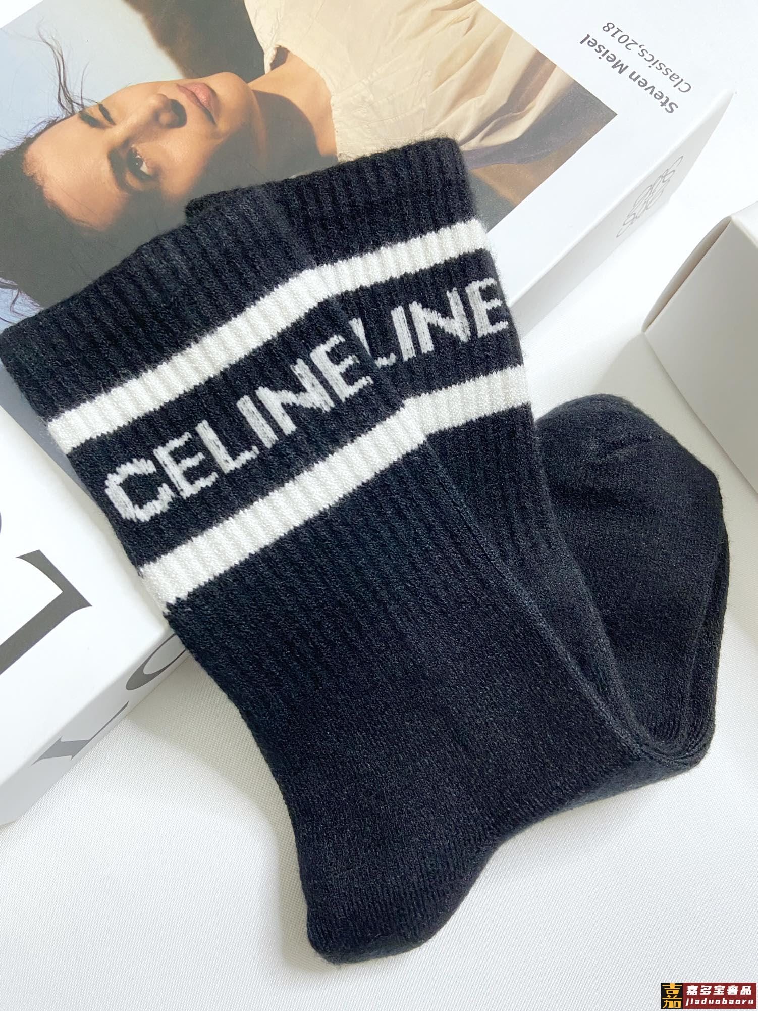 配包装一盒双瑟琳经典字母罗纹羊绒中筒袜爆款专柜在售好看到爆炸