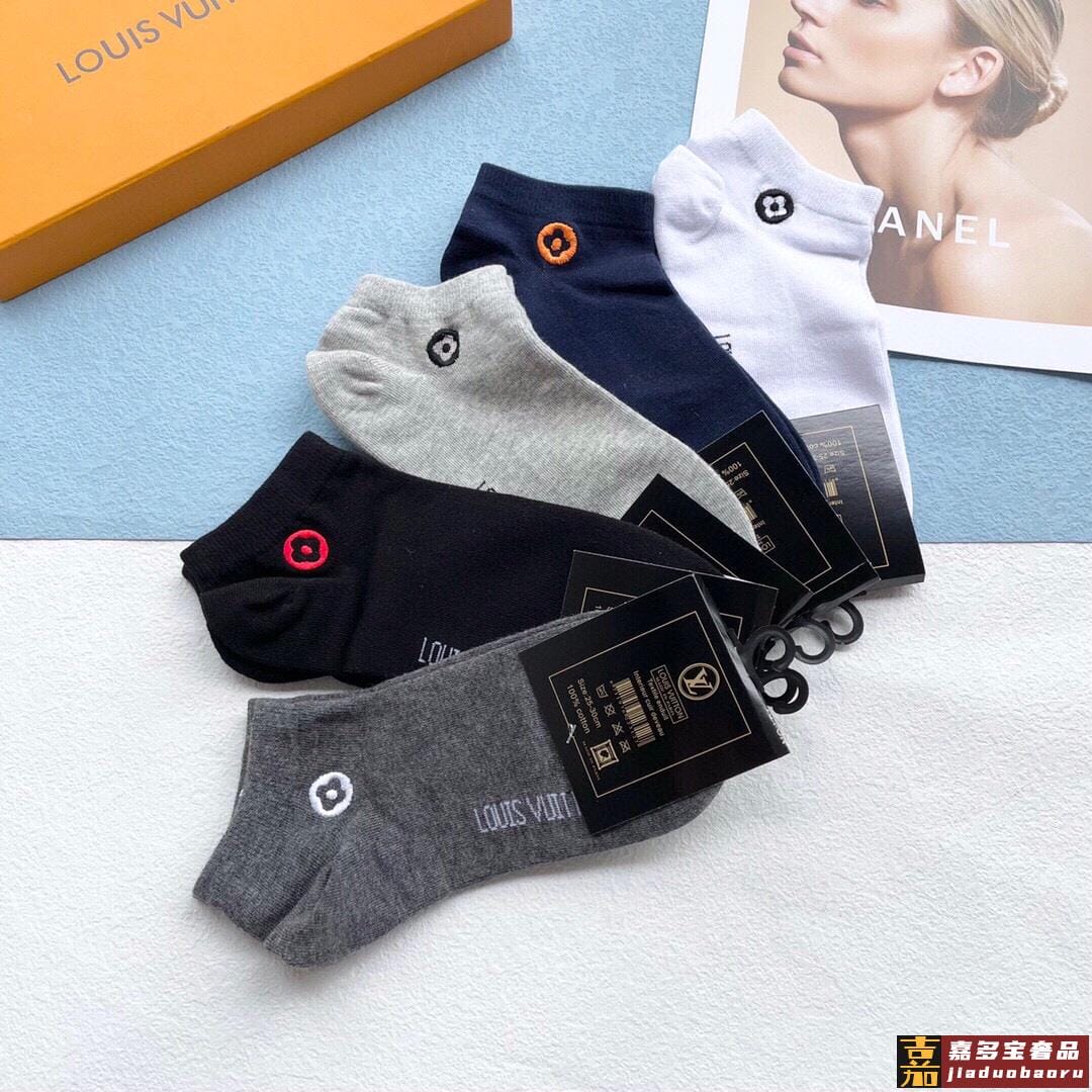配包装一盒五双路易威登爆款短筒刺绣袜高版本好看到爆炸欧美大牌