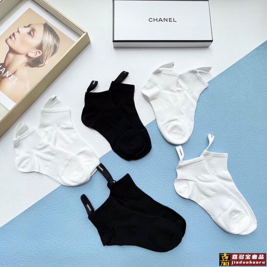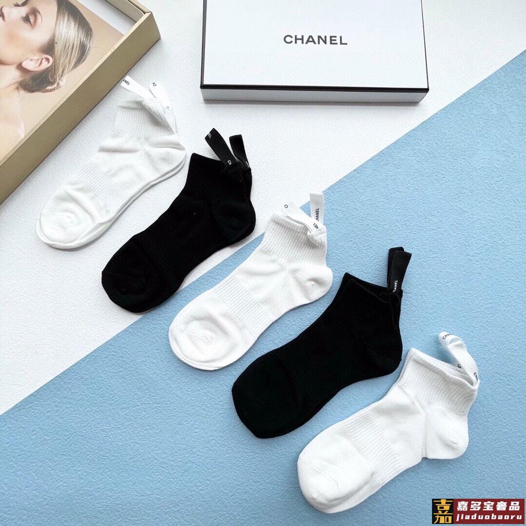 配包装一盒五双香奈儿爆款织带字母短筒袜高版本好看到爆炸欧美大