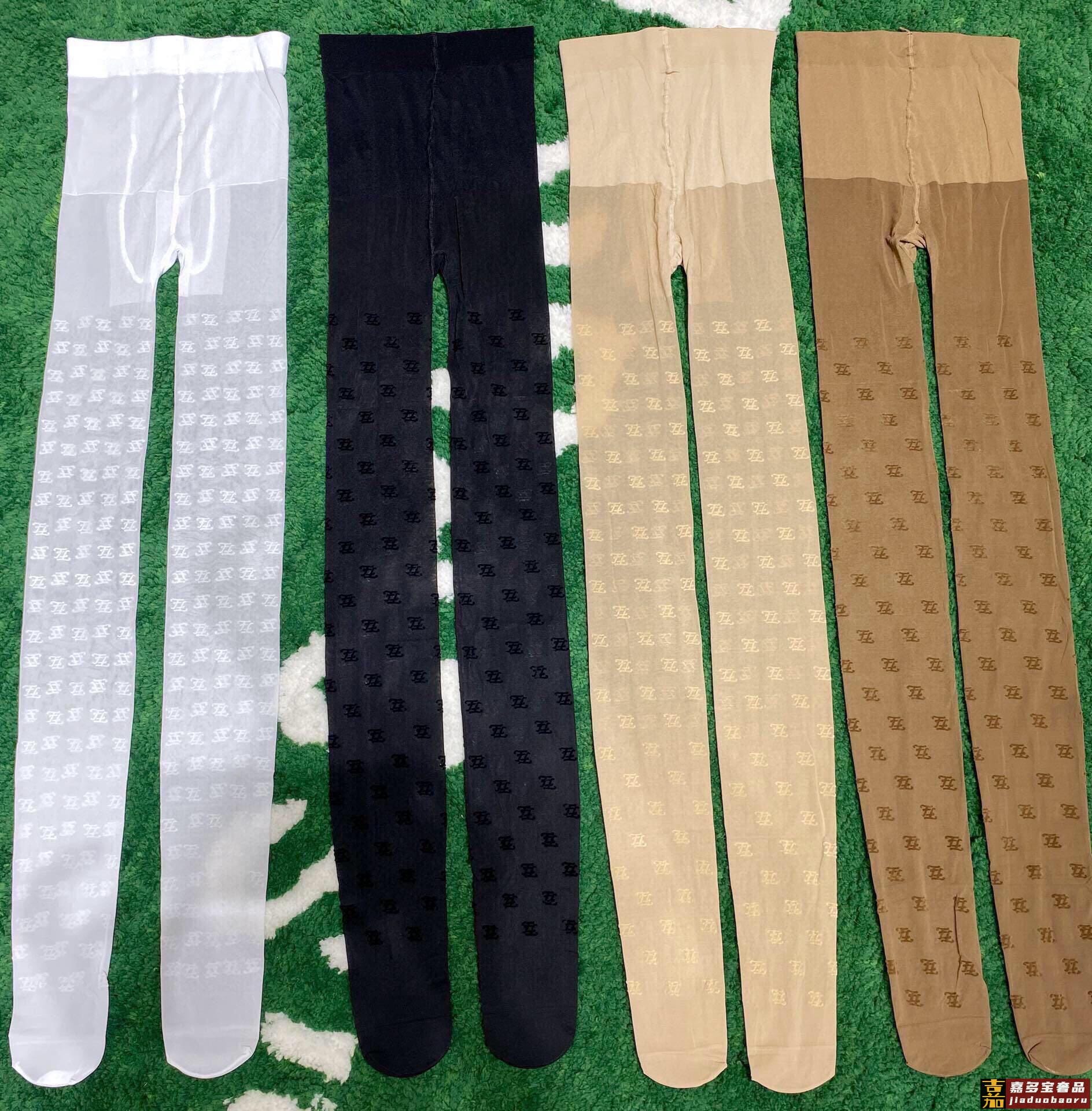 配包装一盒一双芬迪春夏走秀款丝袜波浪图文形状植绒丝袜黑色白色
