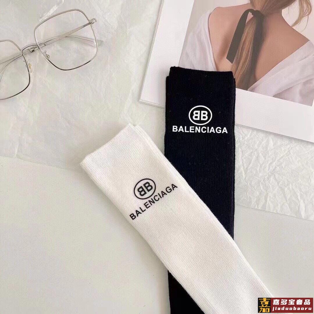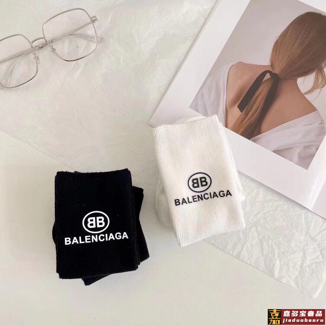 配包装一盒二双巴黎世家新品小腿袜子经典品牌标志简单大气实物超