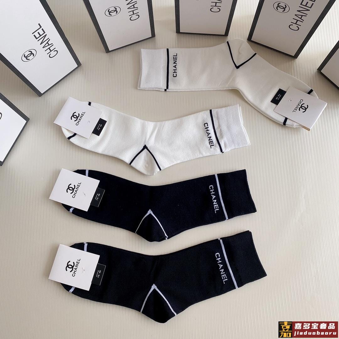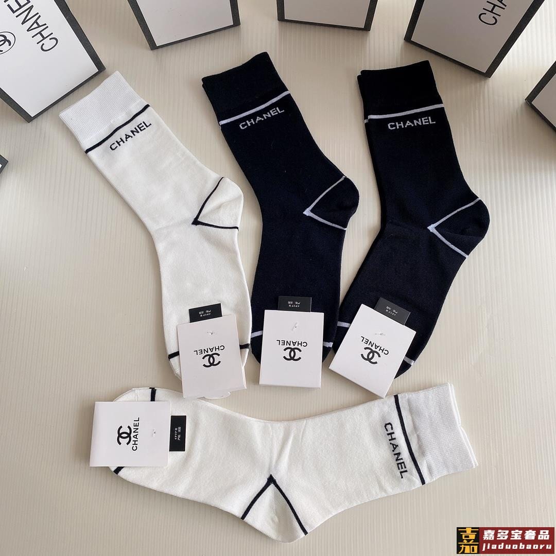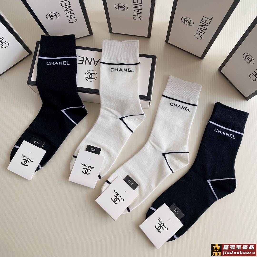 特配包装香奈儿新款中长款堆堆袜袜子一盒四双专柜同步筒袜袜子大