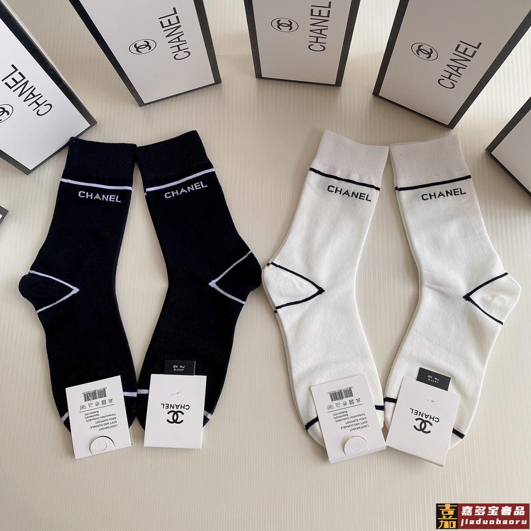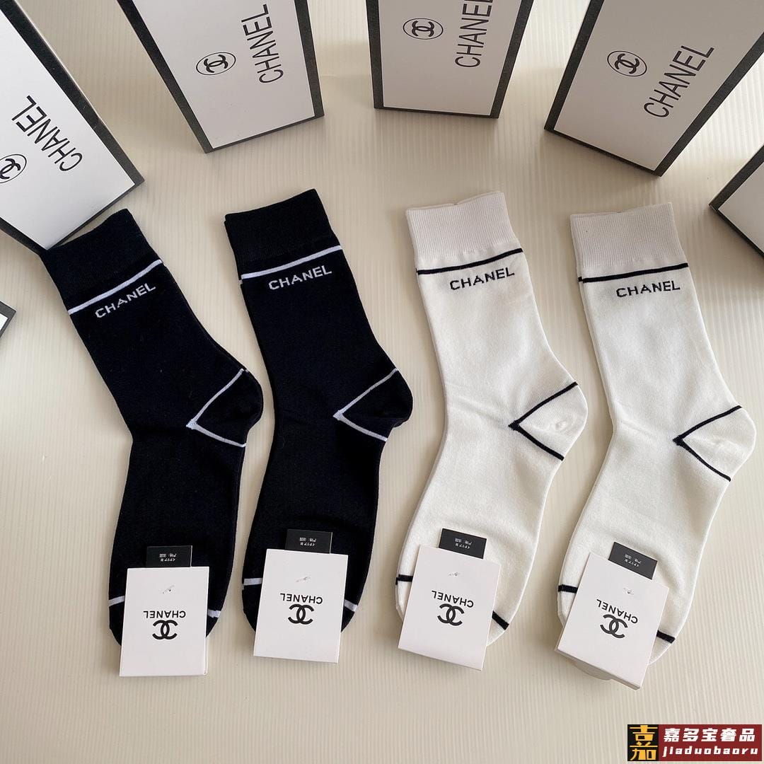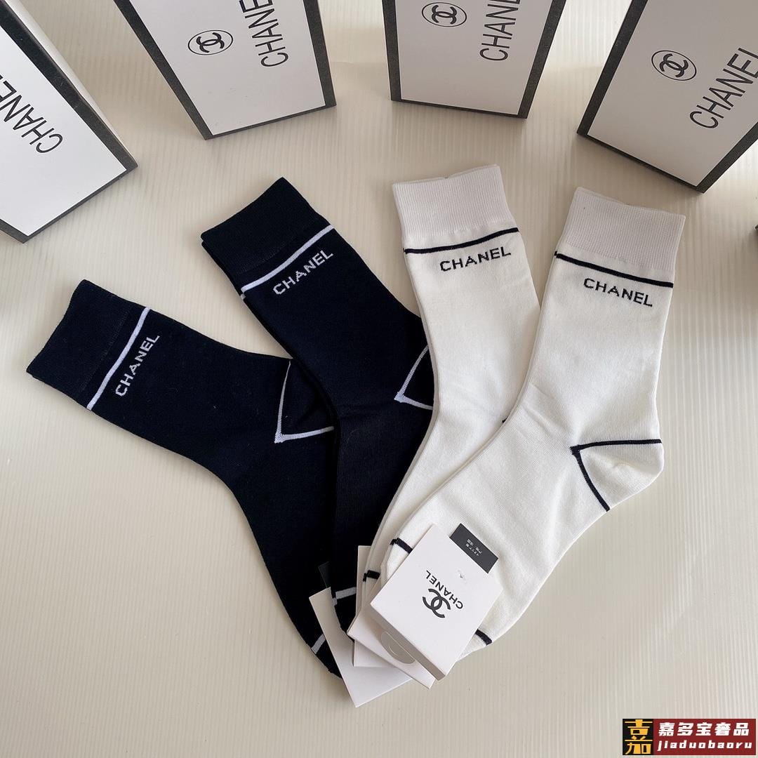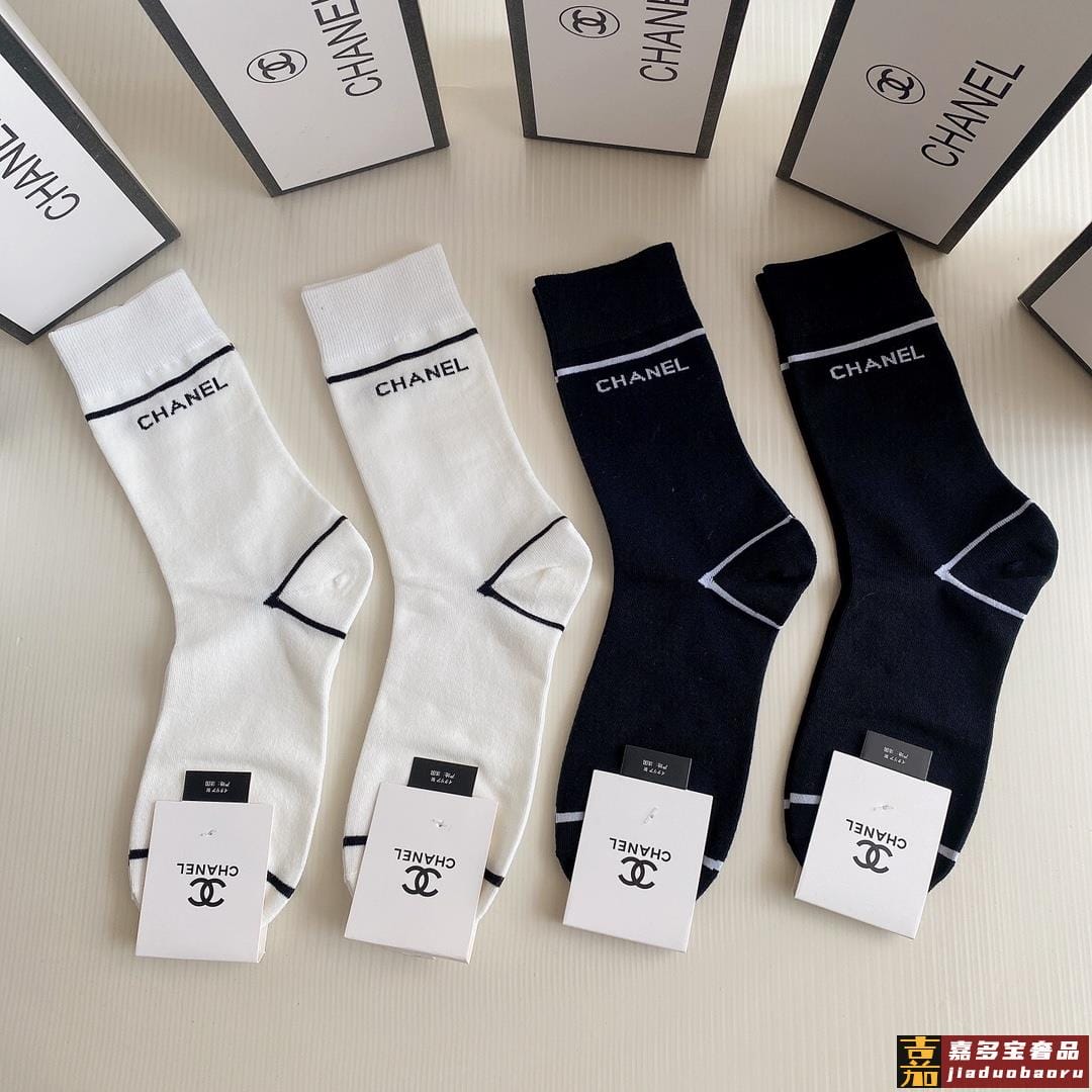 特配包装香奈儿新款中长款堆堆袜袜子一盒四双专柜同步筒袜袜子大