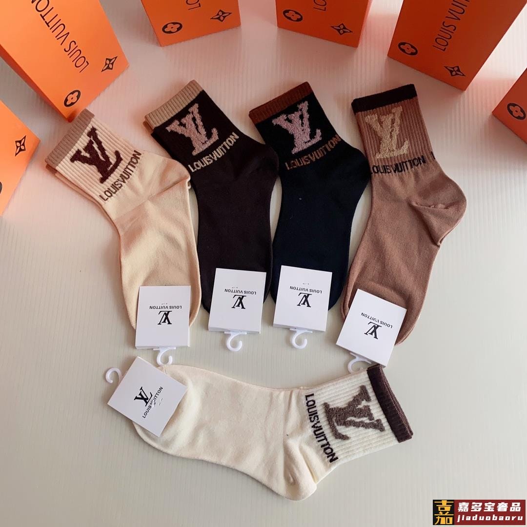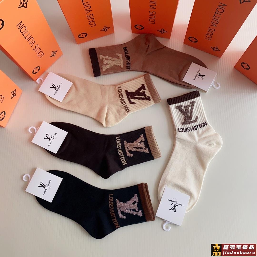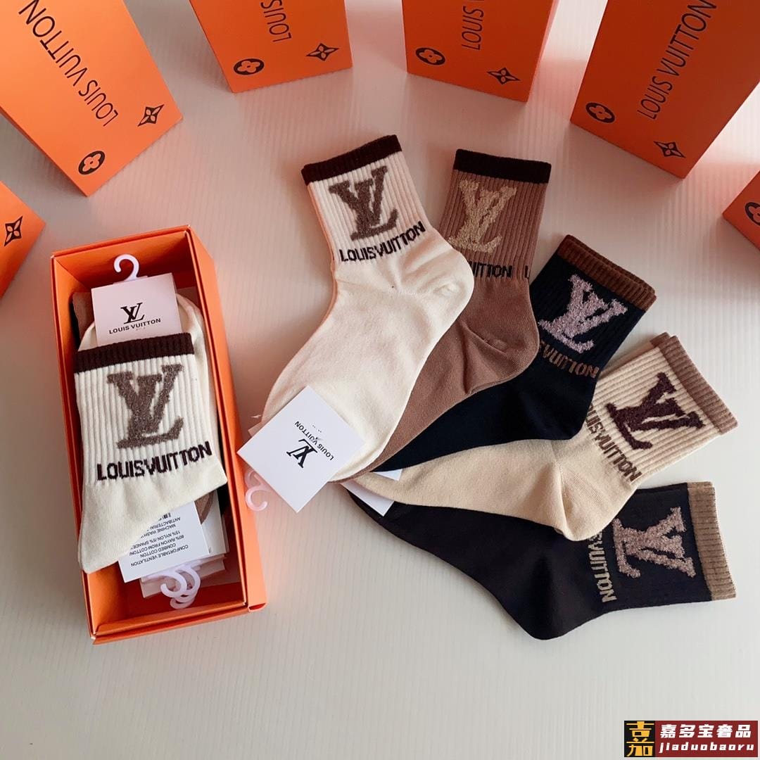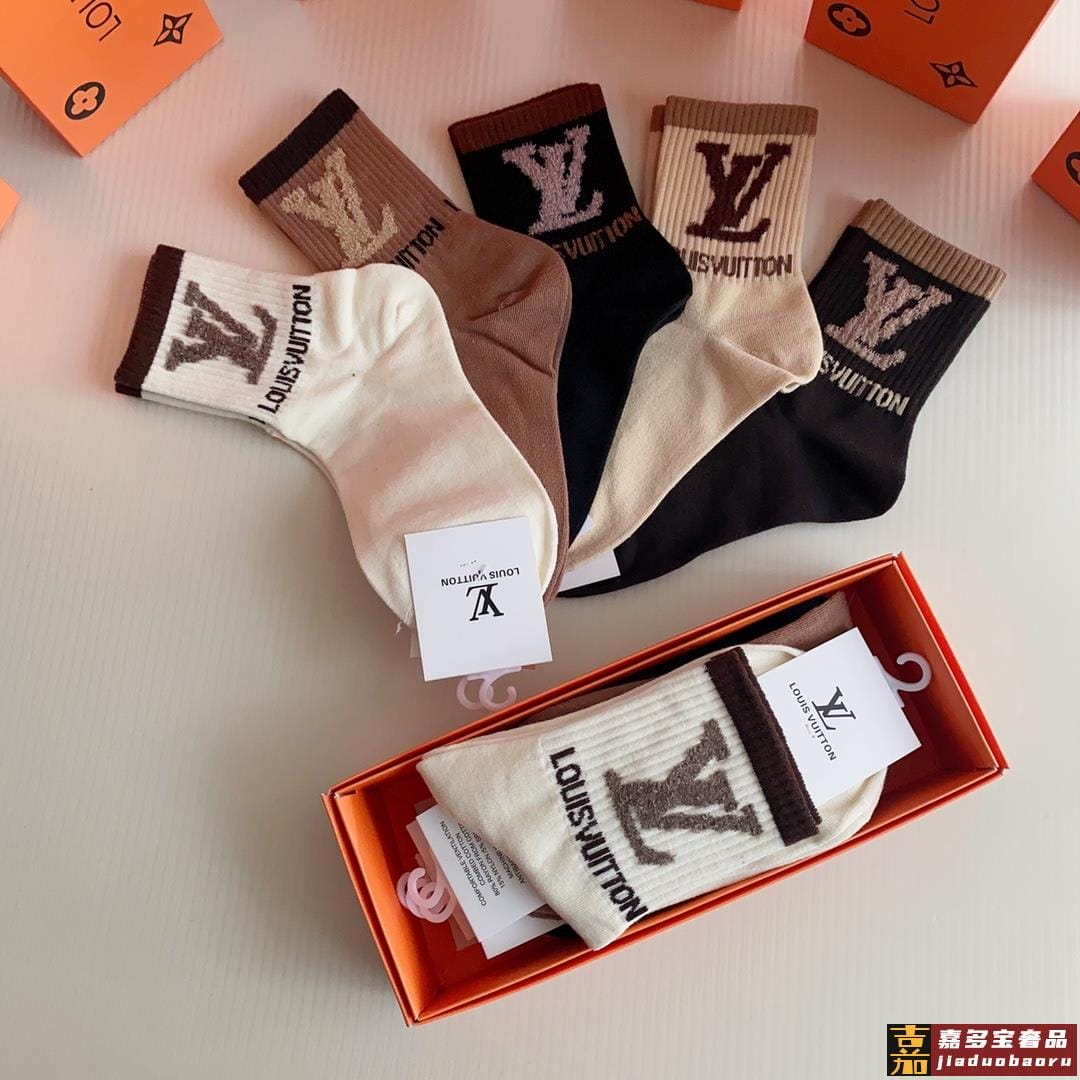 特配专柜包装路易威登新款中长筒羽毛纱袜堆堆袜袜子一盒五双专柜