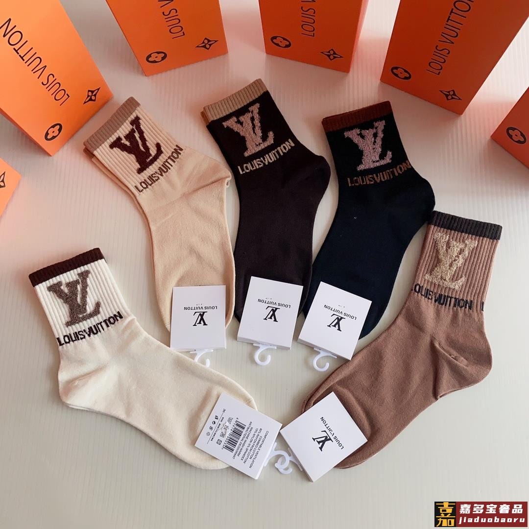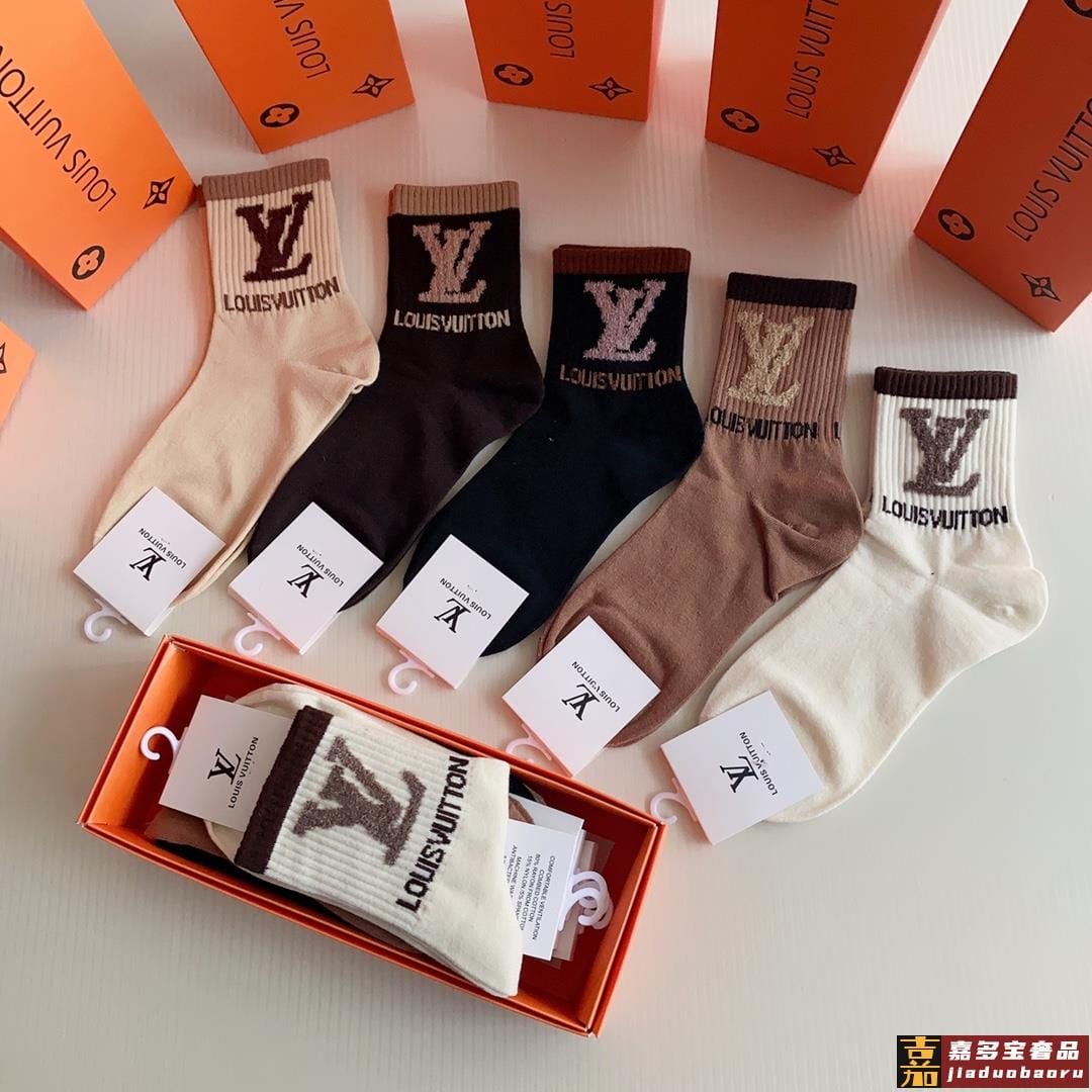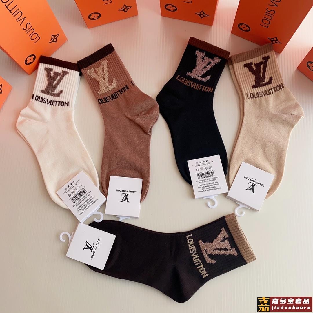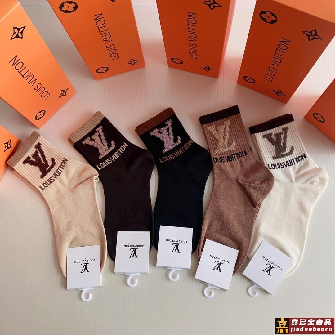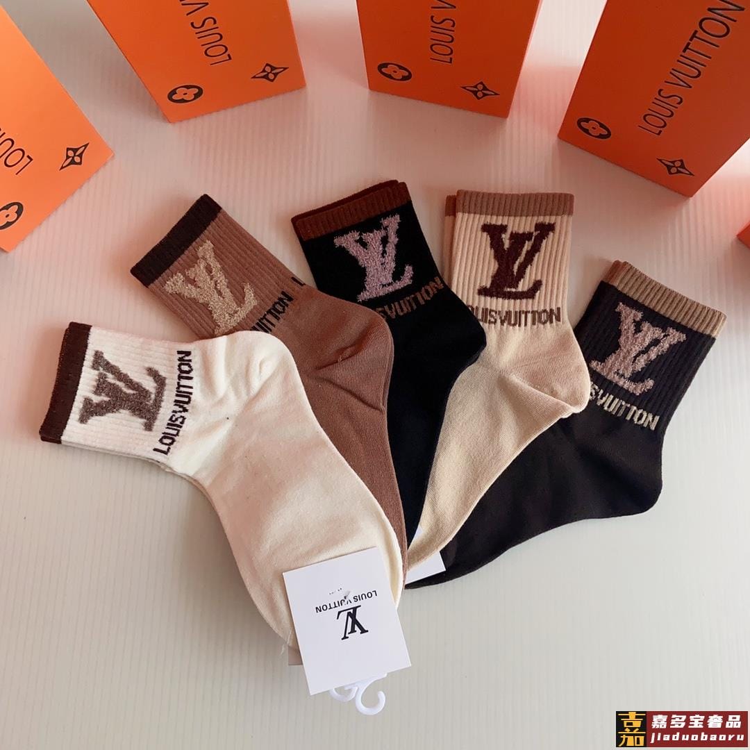 特配专柜包装路易威登新款中长筒羽毛纱袜堆堆袜袜子一盒五双专柜