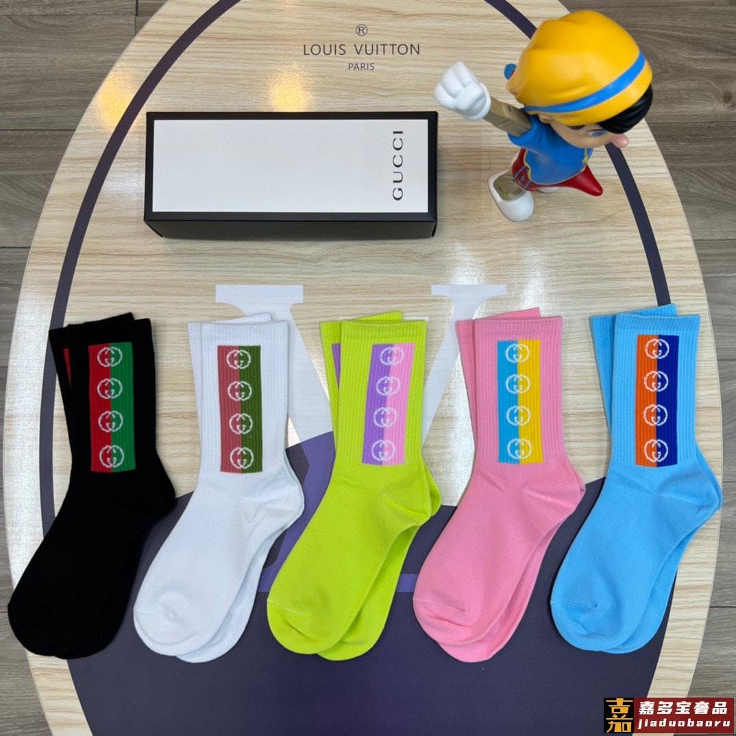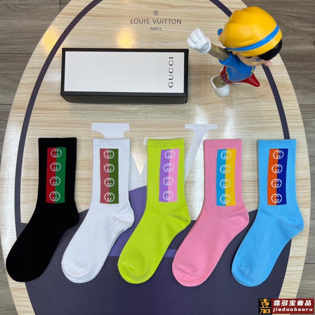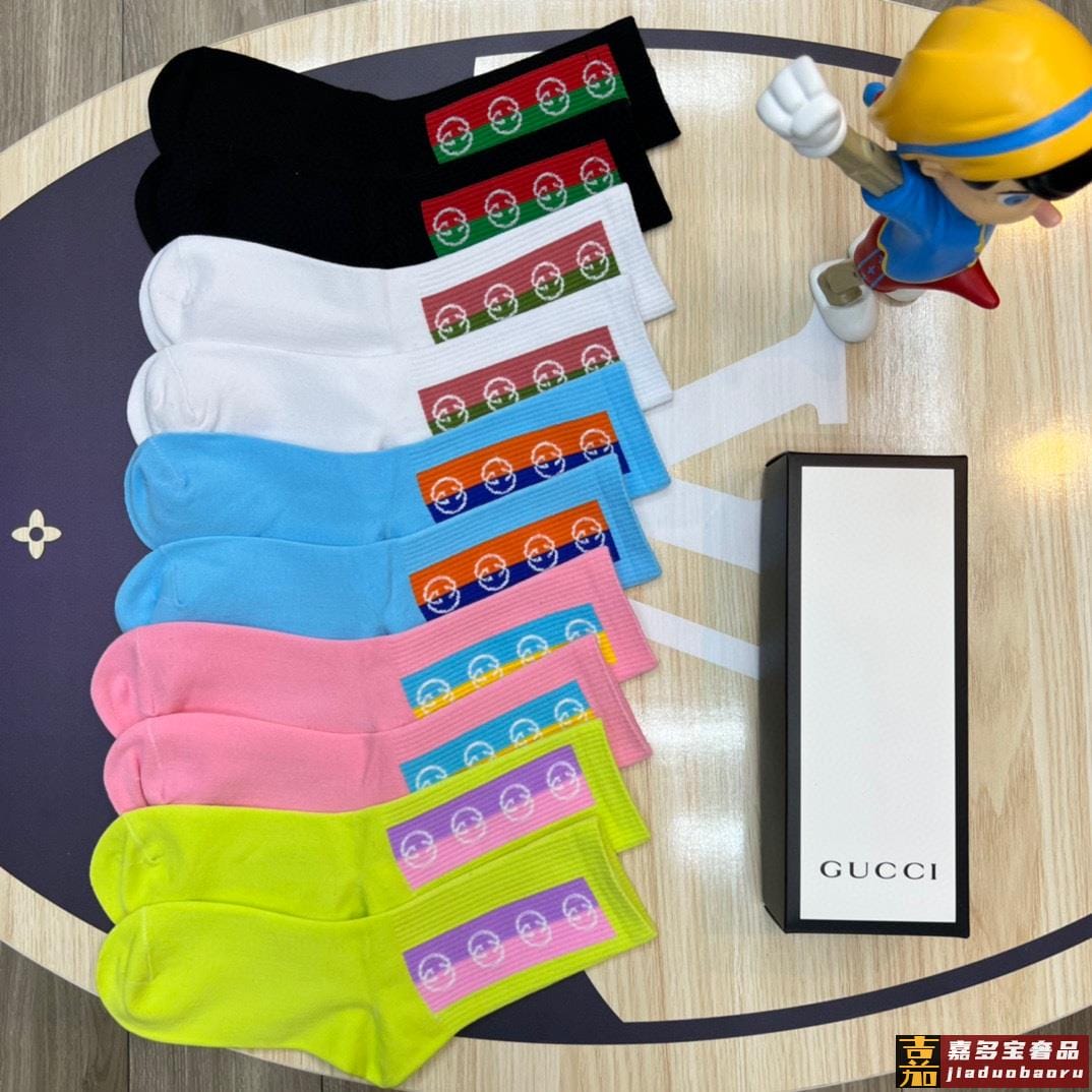 特配专柜包装古驰新款中长筒袜堆堆袜袜子一盒五双专柜同步筒袜袜