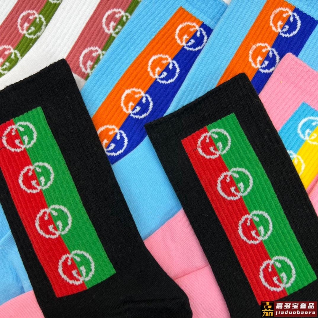 特配专柜包装古驰新款中长筒刺绣袜堆堆袜袜子一盒五双专柜同步筒