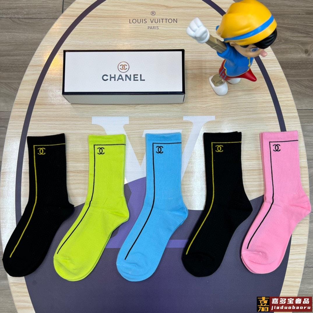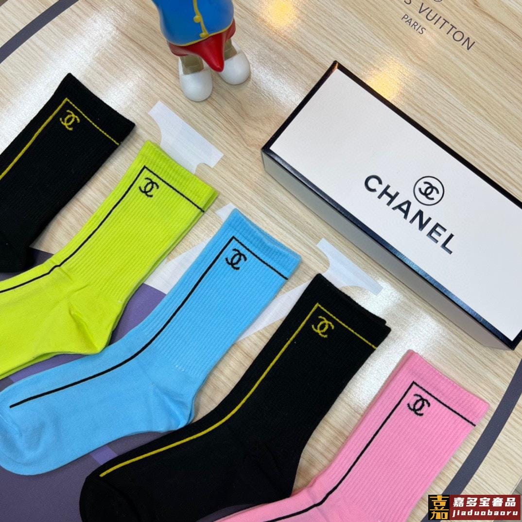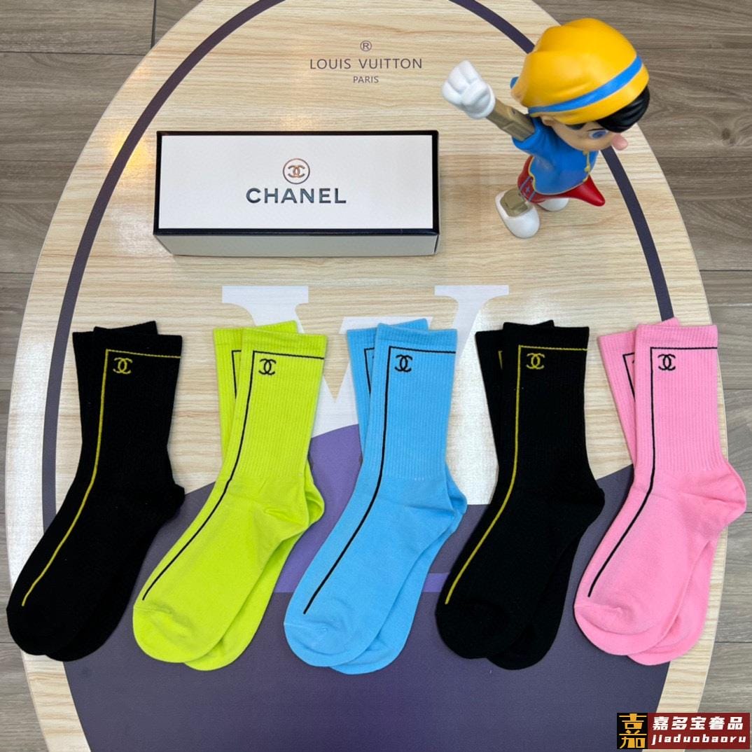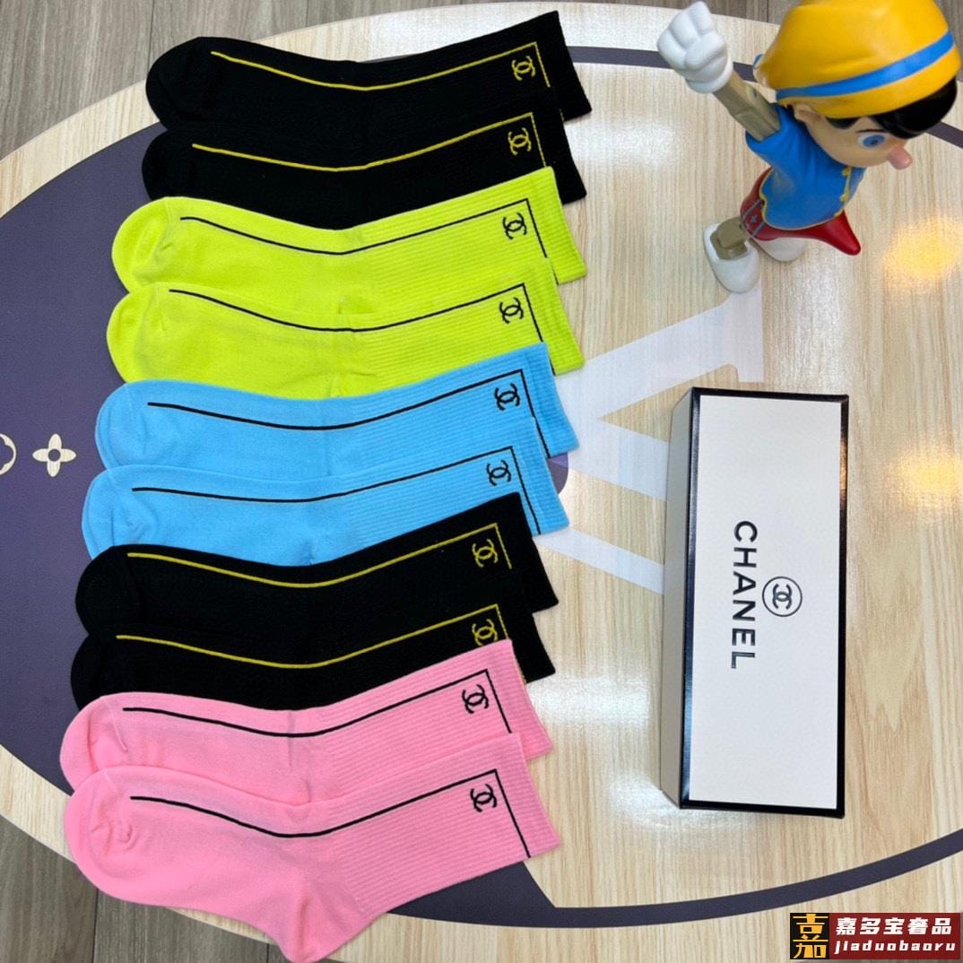 特配专柜包装香奈儿新款中长筒袜堆堆袜袜子一盒五双专柜同步筒袜