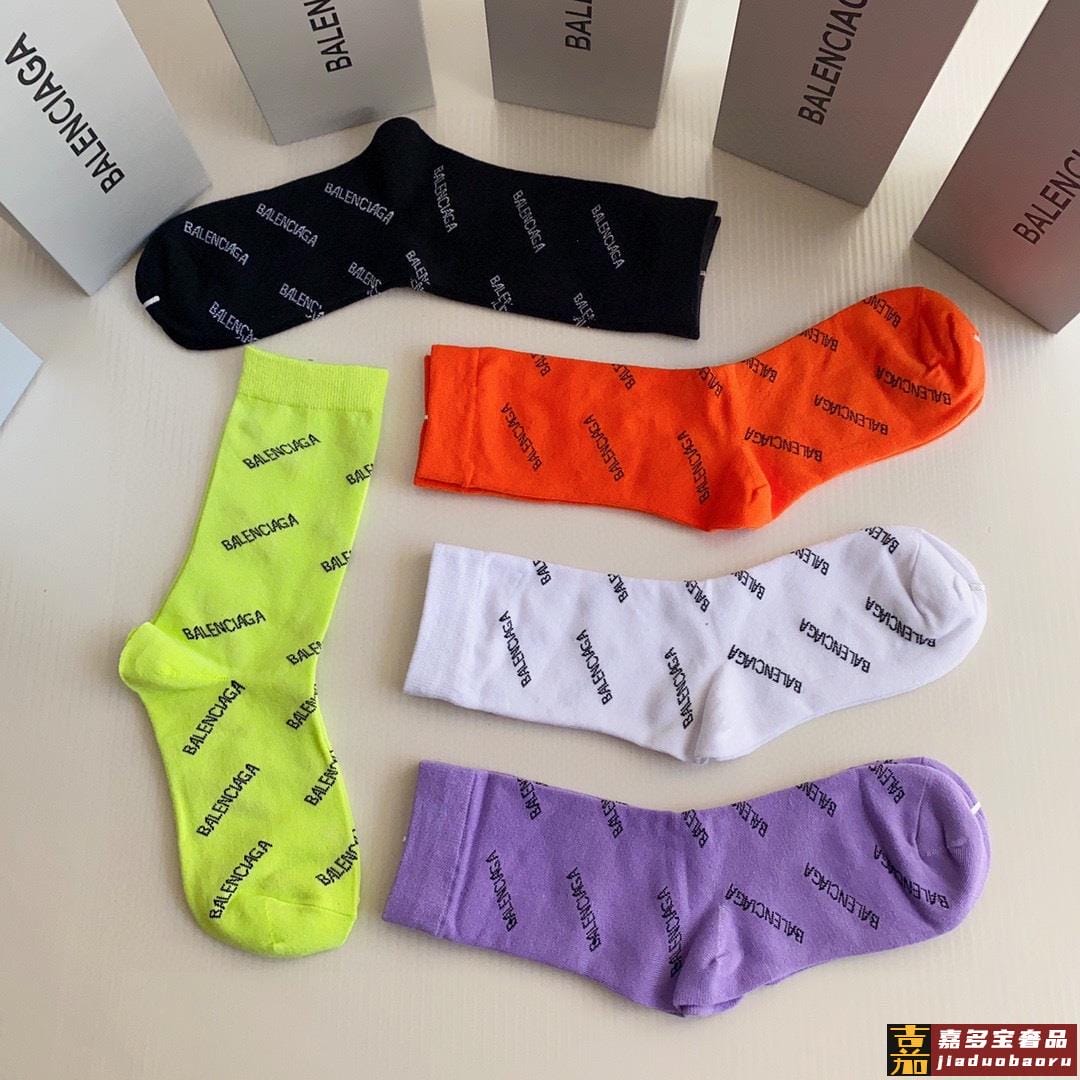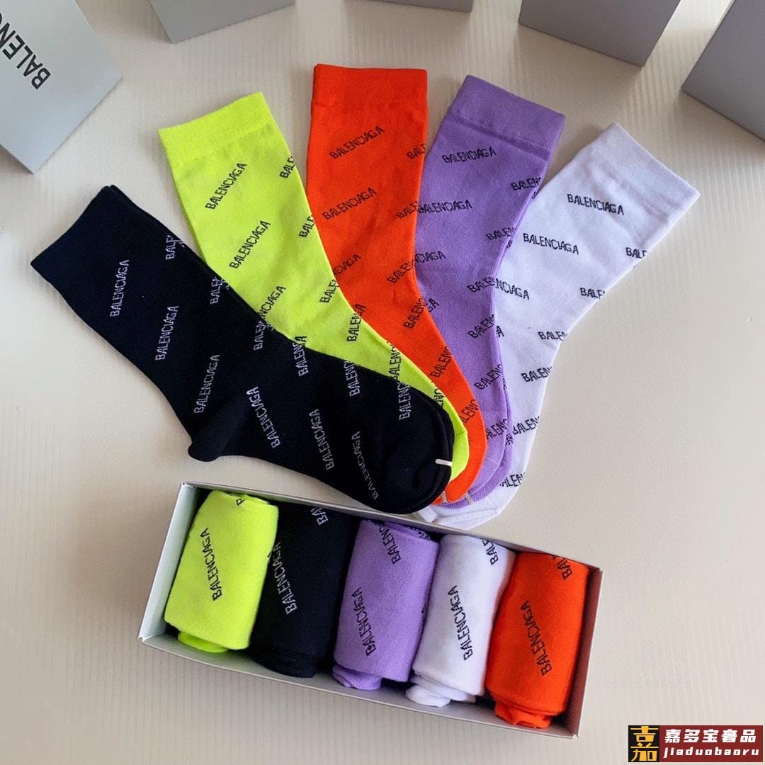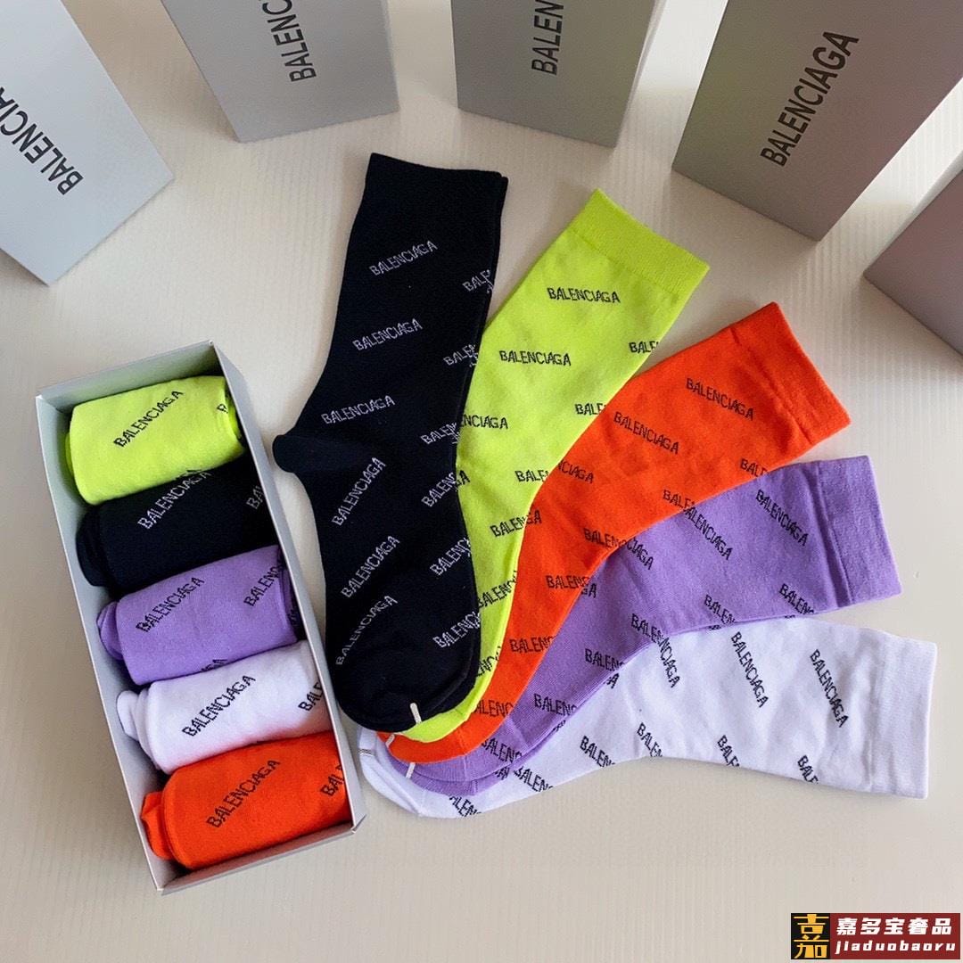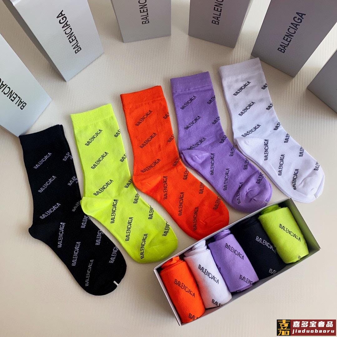 特配专柜包装巴黎世家新款中长款堆堆袜袜子一盒五双专柜同步筒袜