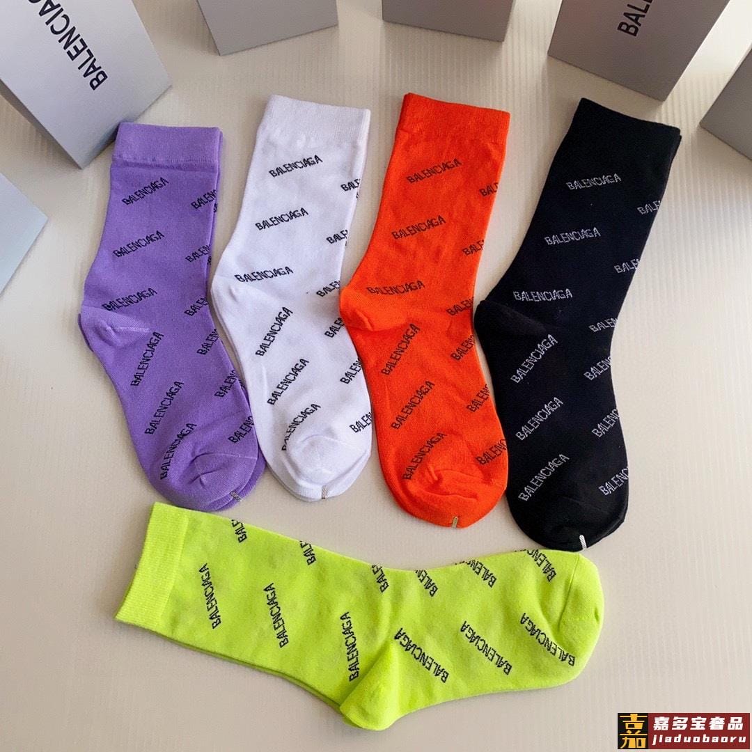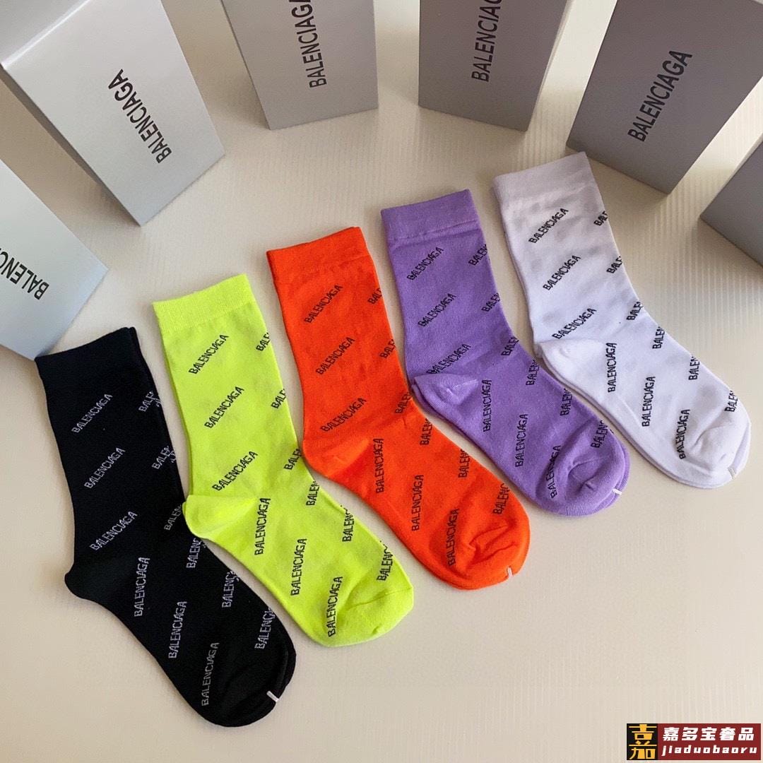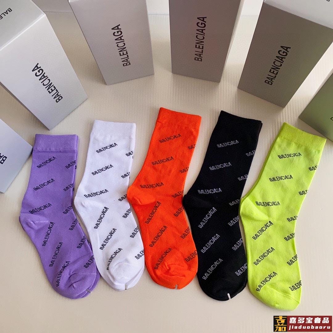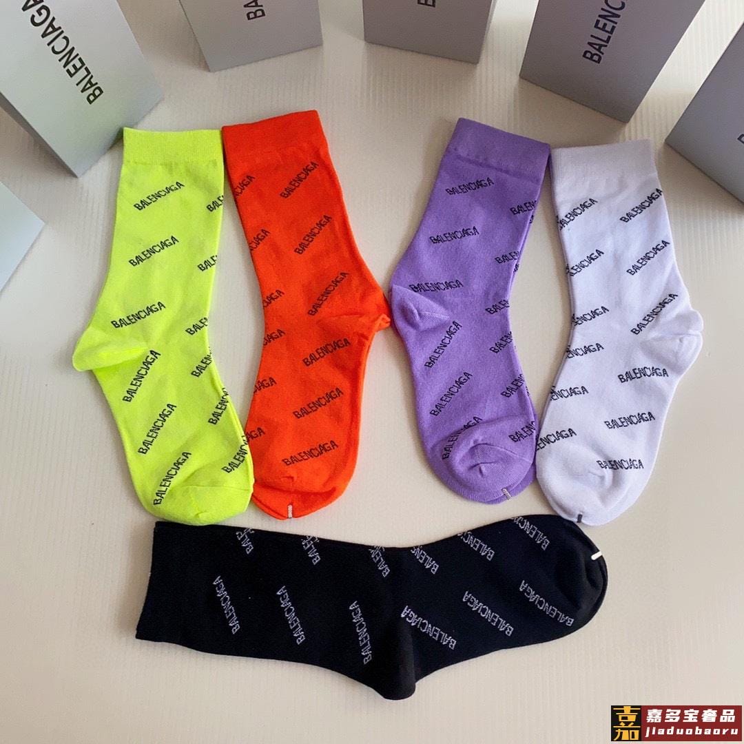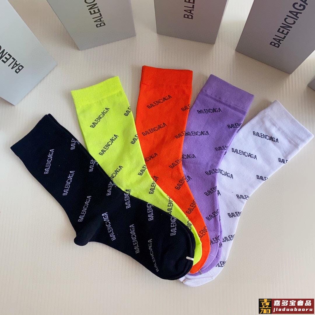 特配专柜包装巴黎世家新款中长款堆堆袜袜子一盒五双专柜同步筒袜