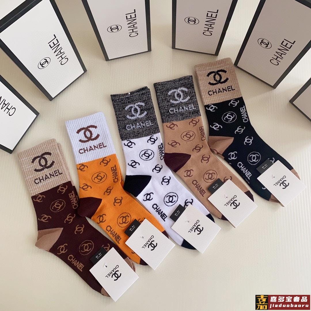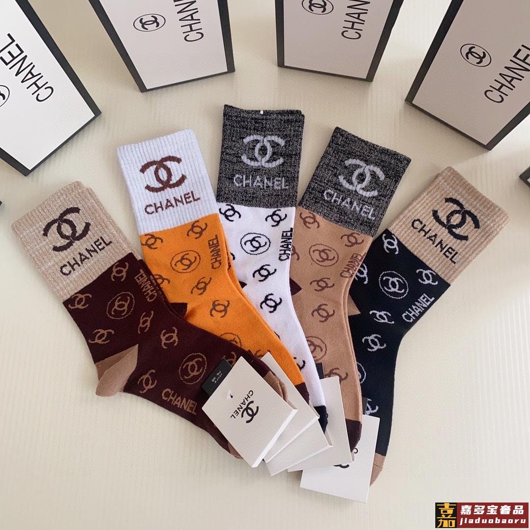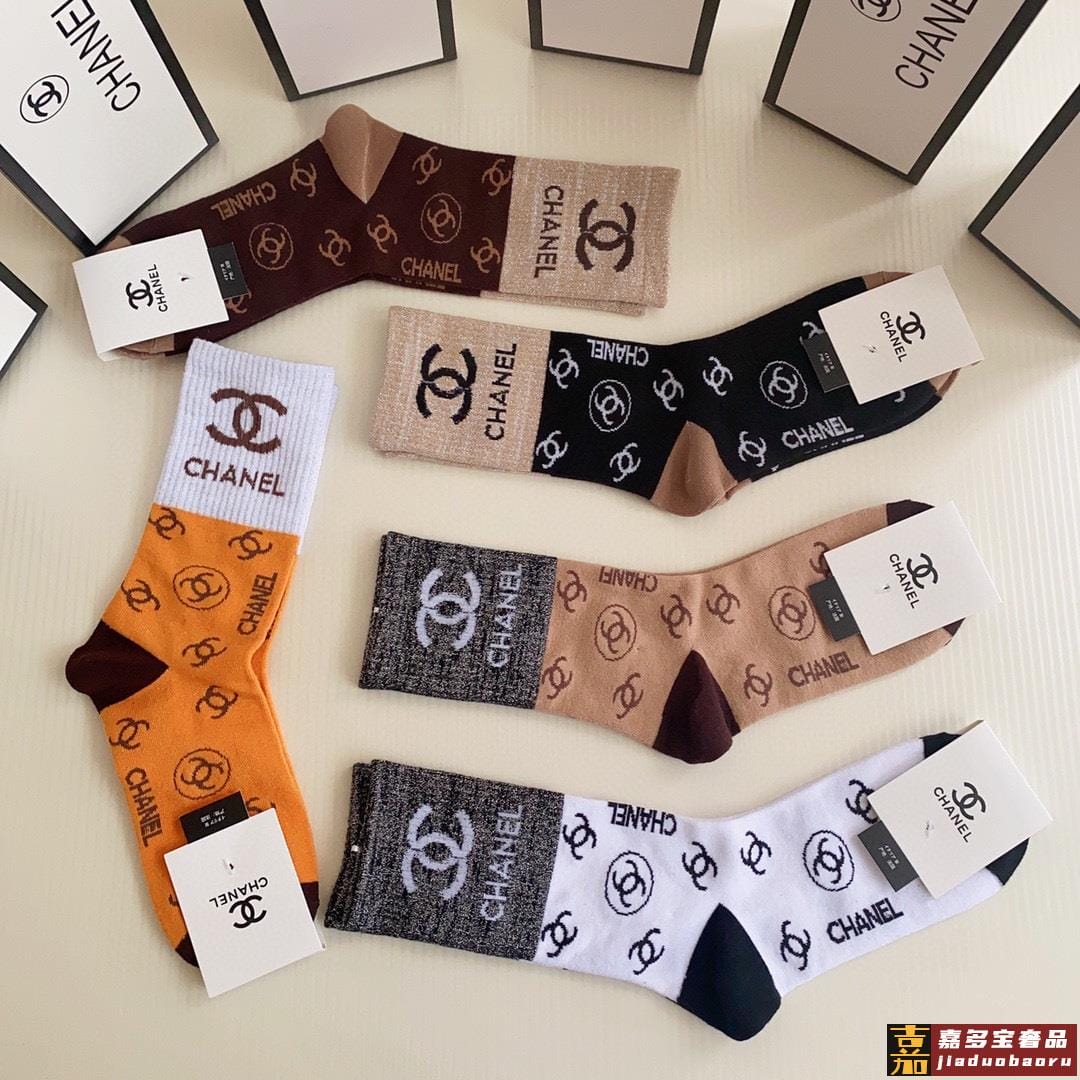 特配包装香奈儿新款经典中长款堆堆袜袜子一盒五双专柜同步筒袜袜