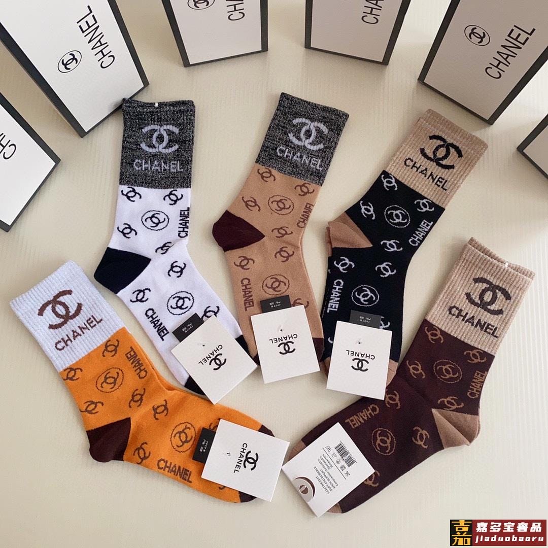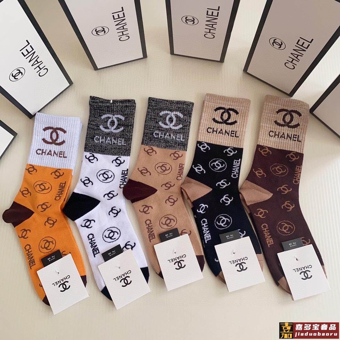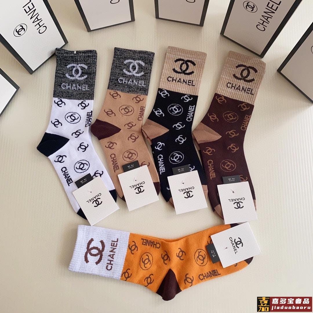 特配包装香奈儿新款经典中长款堆堆袜袜子一盒五双专柜同步筒袜袜