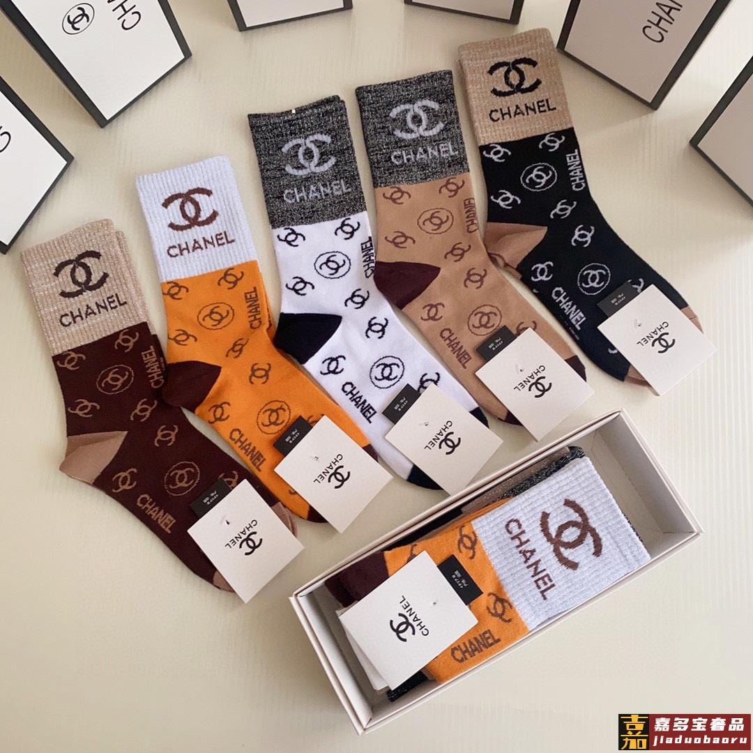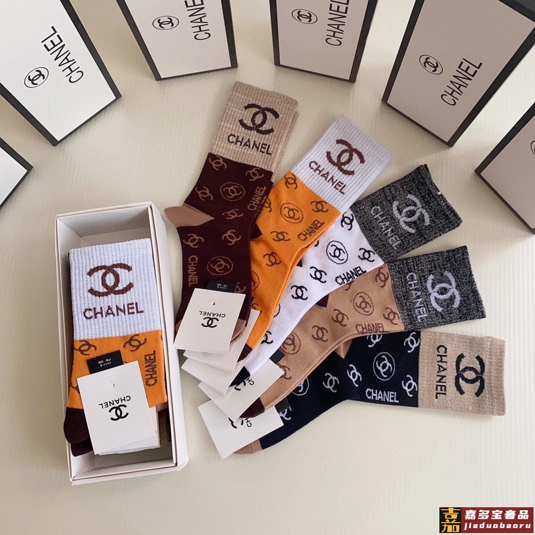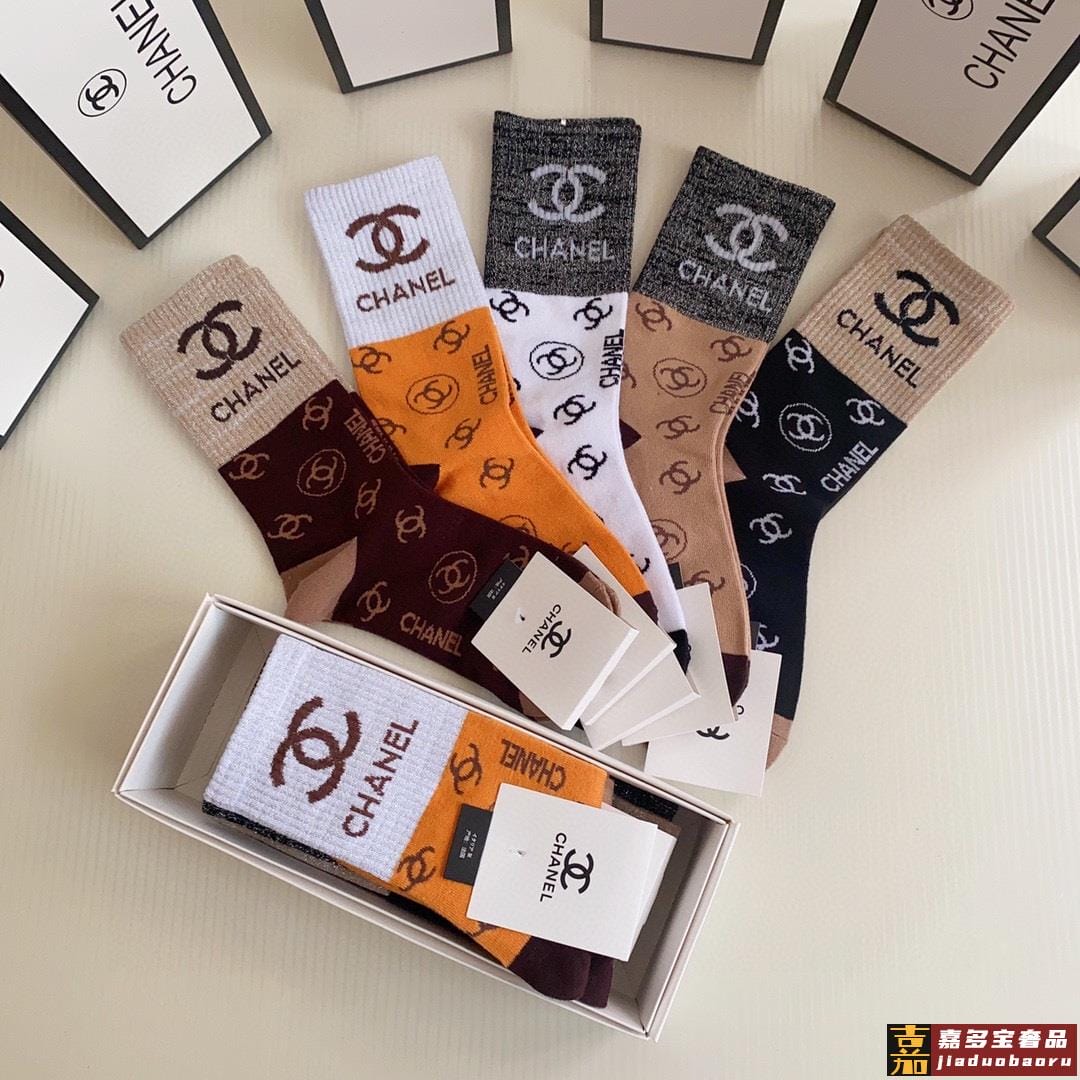 特配专柜包装香奈儿新款中长筒袜堆堆袜袜子一盒五双专柜同步筒袜