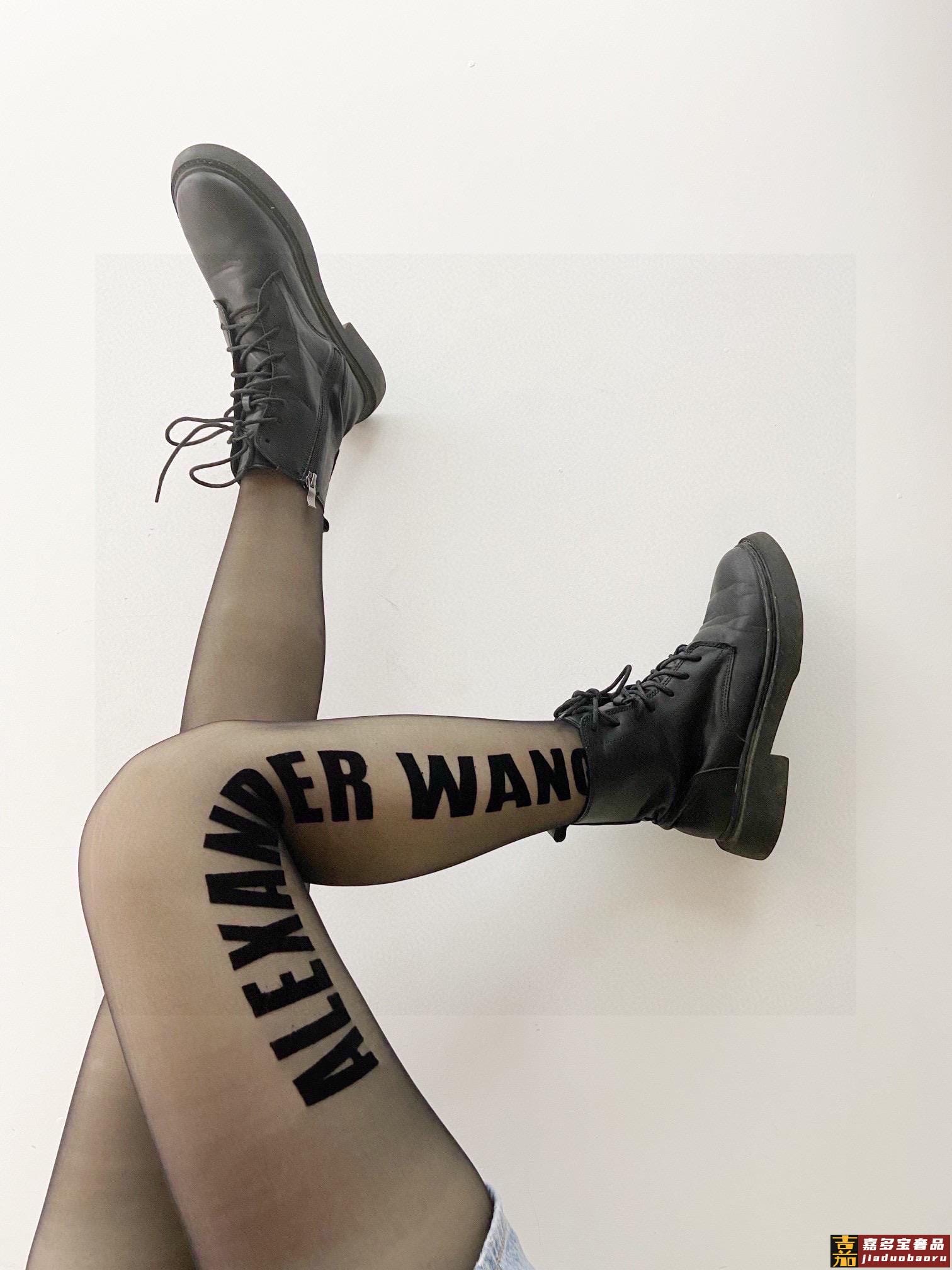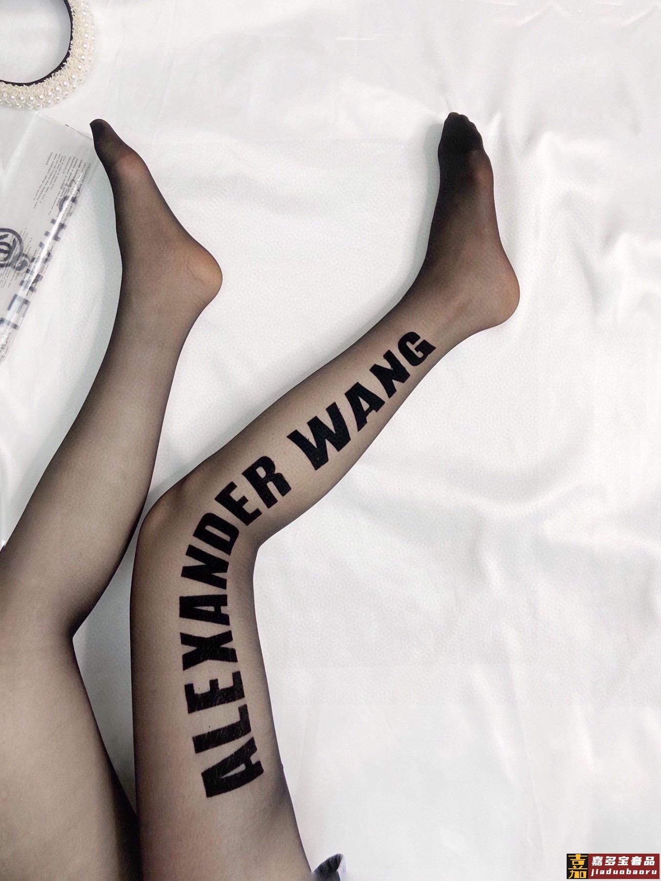 配包装一盒一双亚历山大王经典植绒字母丝袜好看到爆炸欧美大牌丝