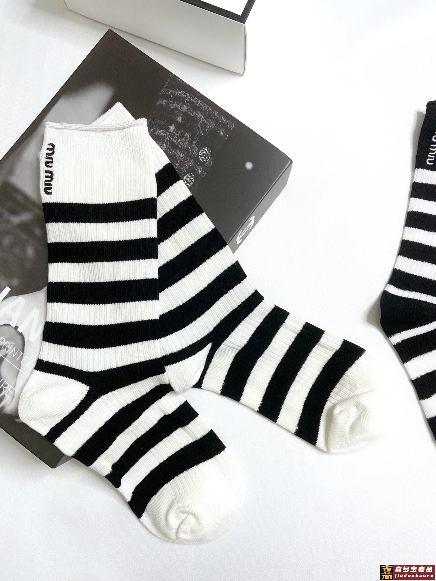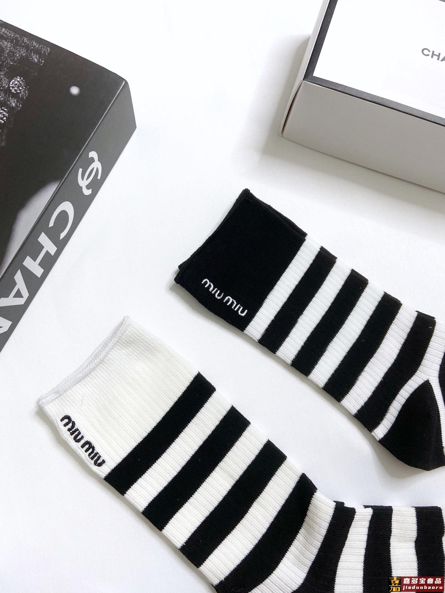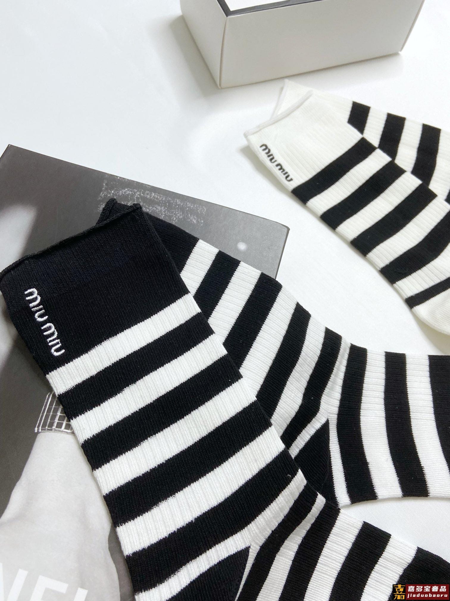 配包装一盒双缪缪刺绣字母纯棉中筒袜爆款专柜在售原单货高版本好