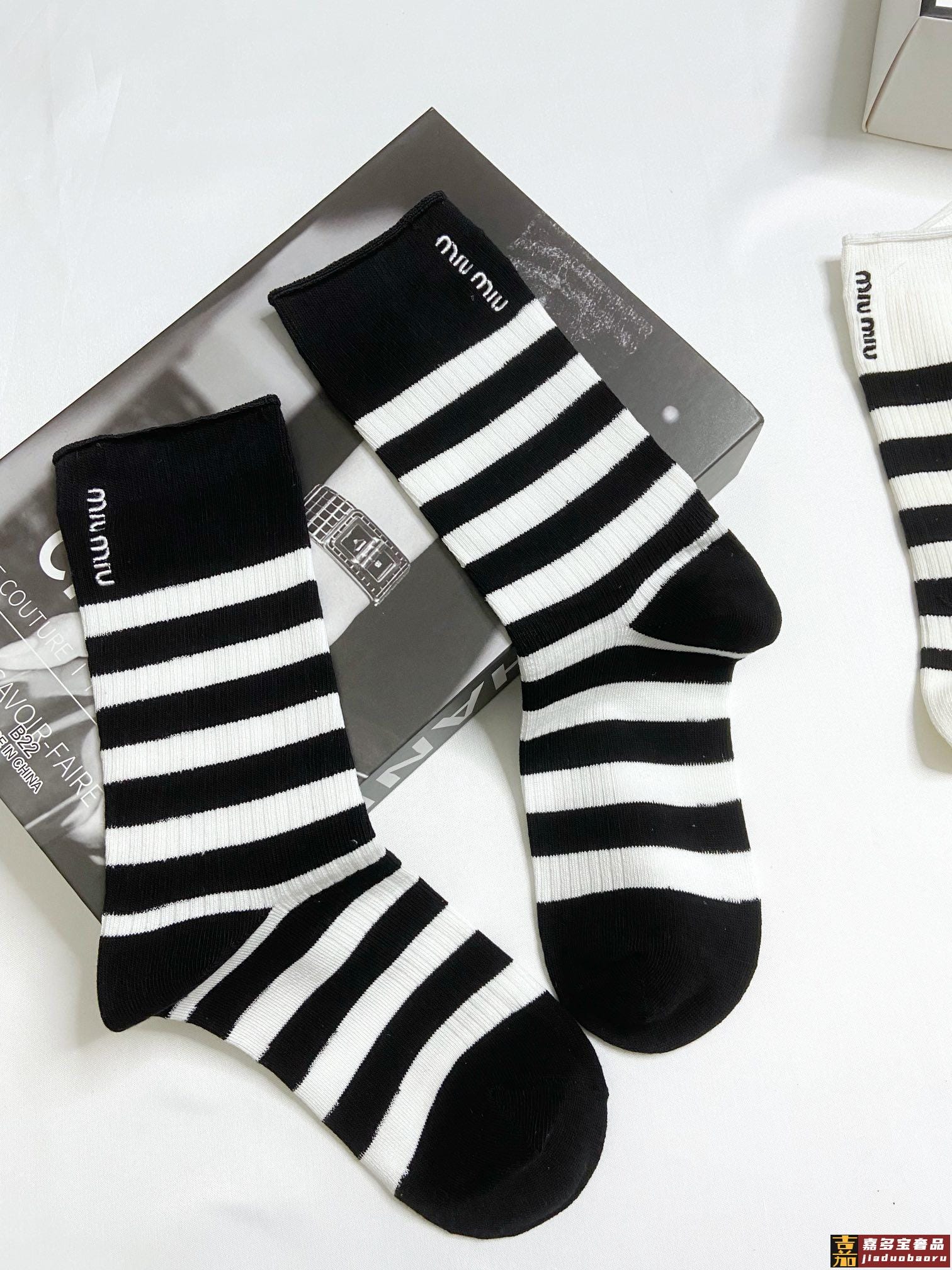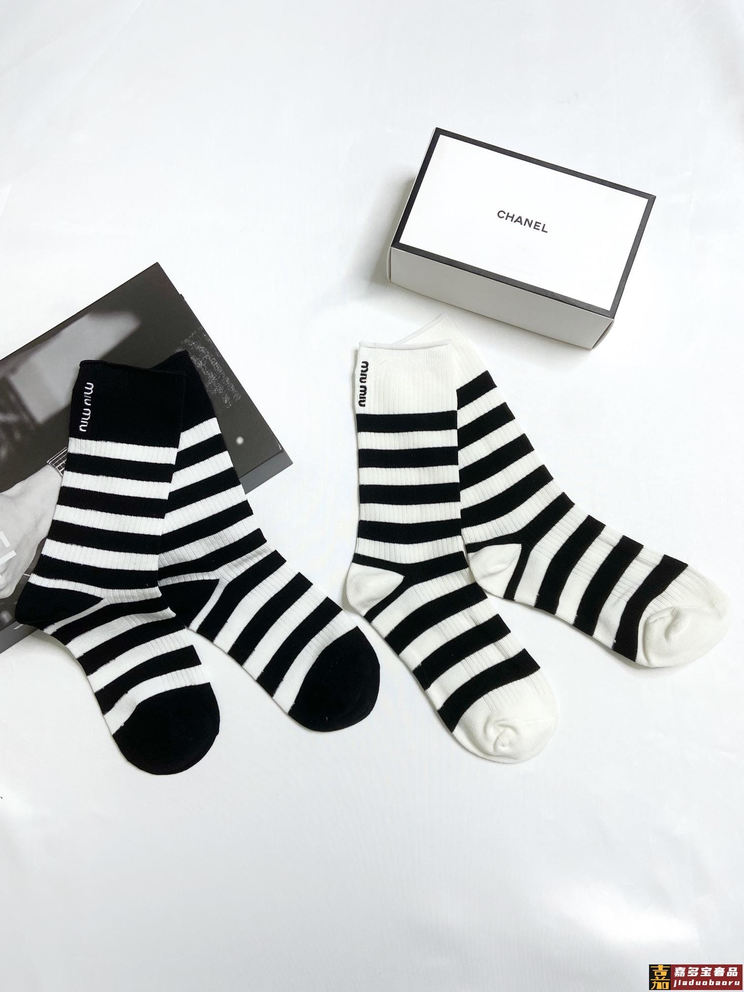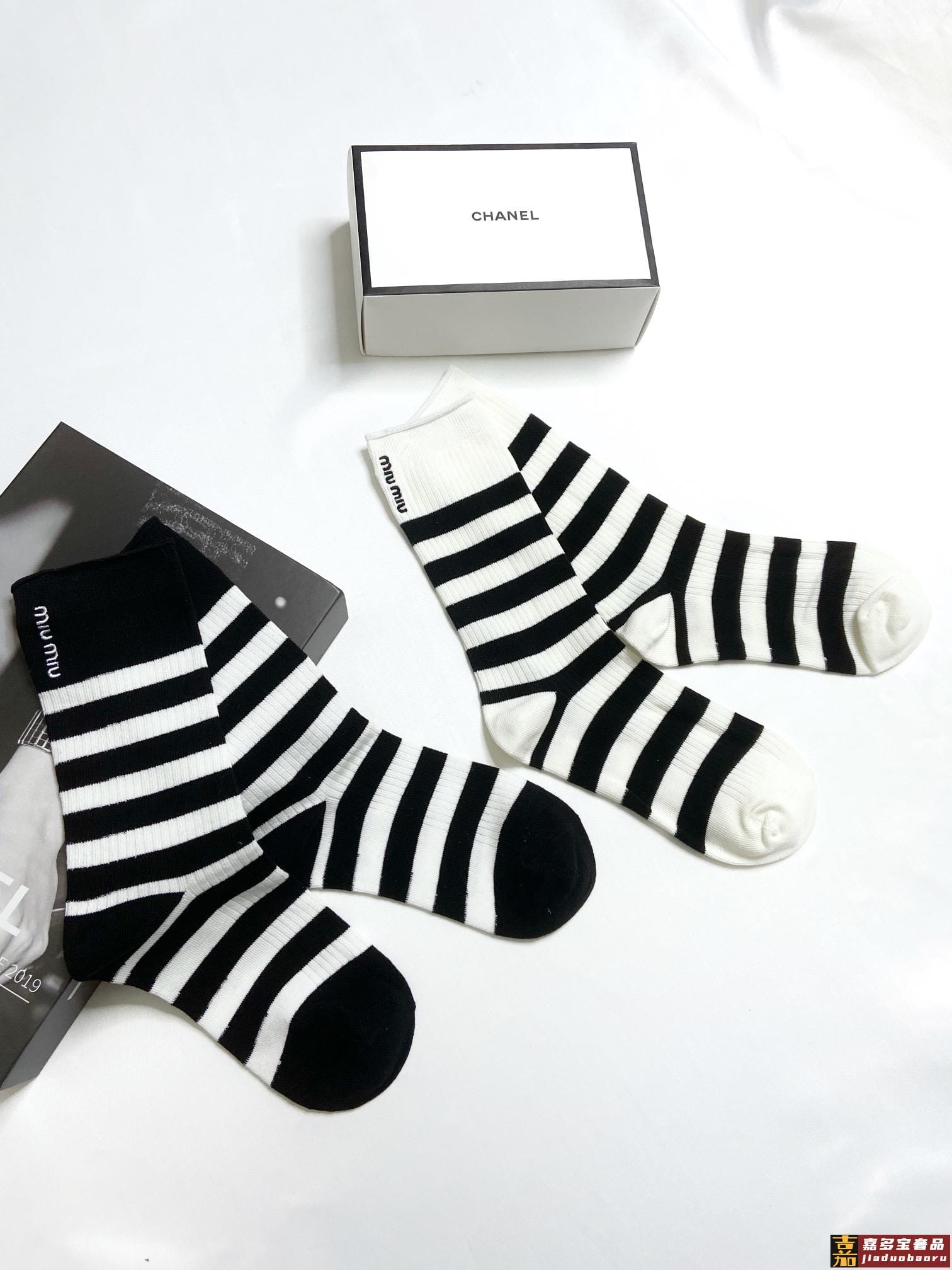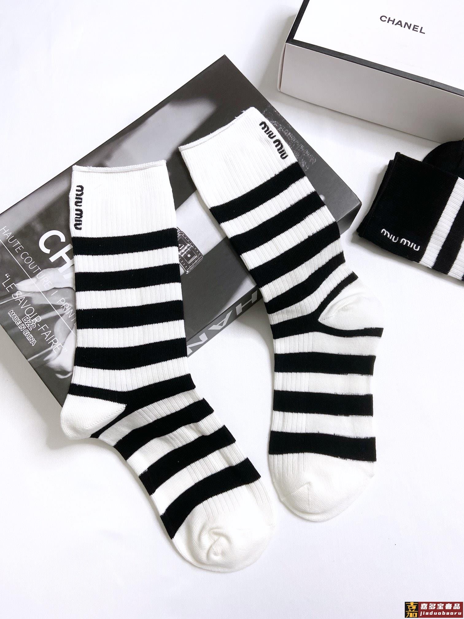 配包装一盒双缪缪刺绣字母纯棉中筒袜爆款专柜在售原单货高版本好