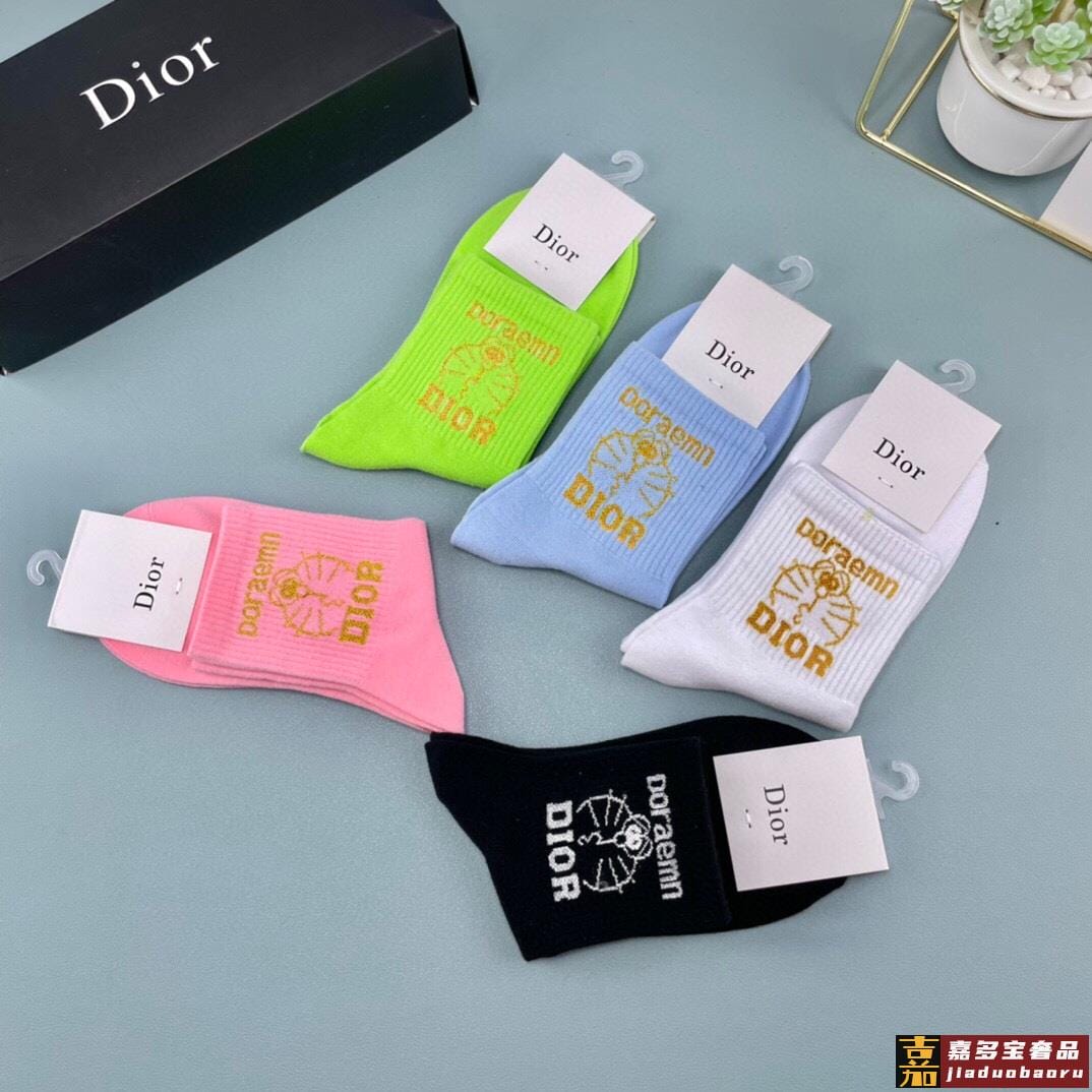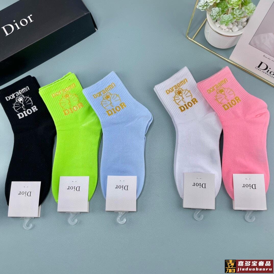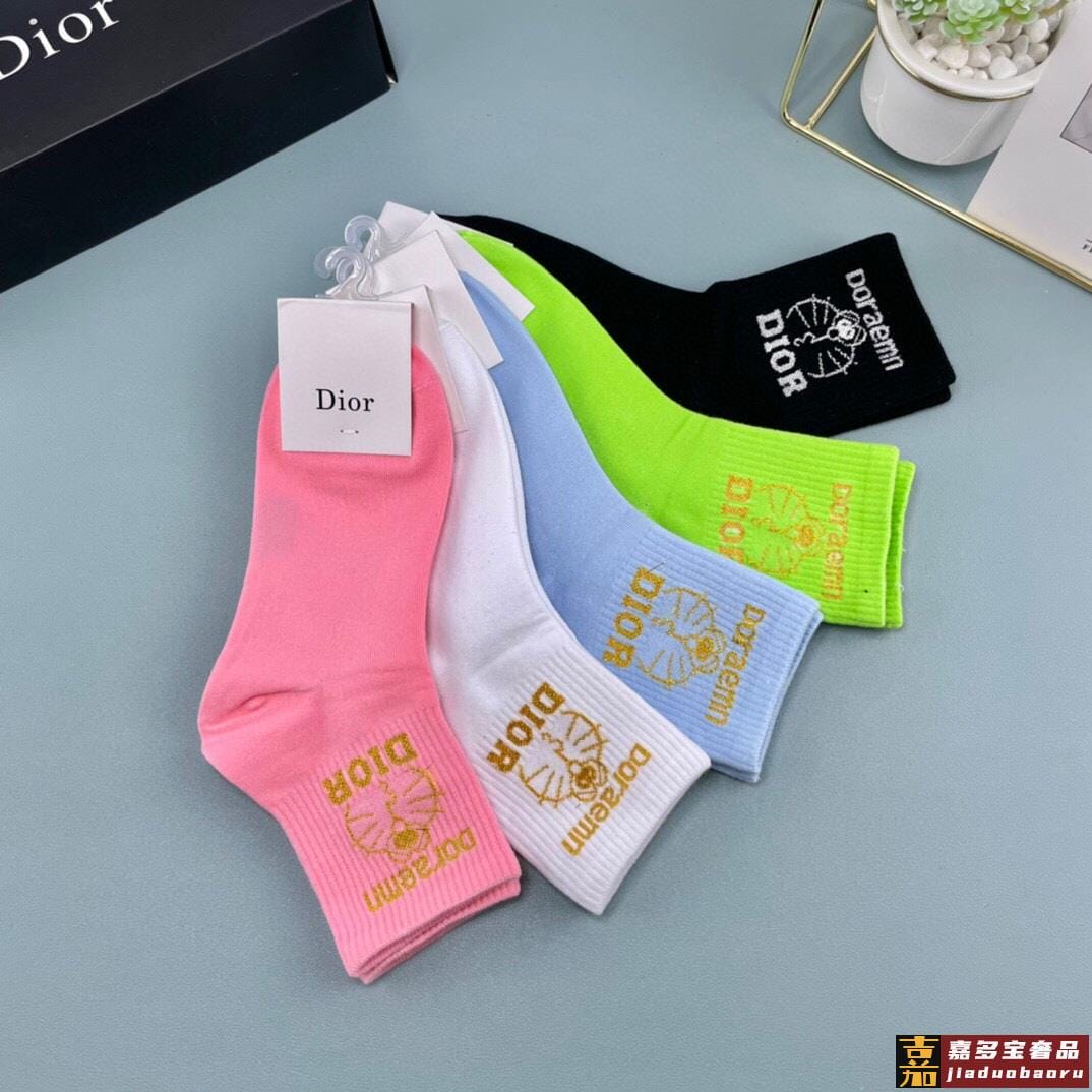 一盒五双迪奥家春夏新品女款袜子纯棉材质上脚柔软舒适满满的字母